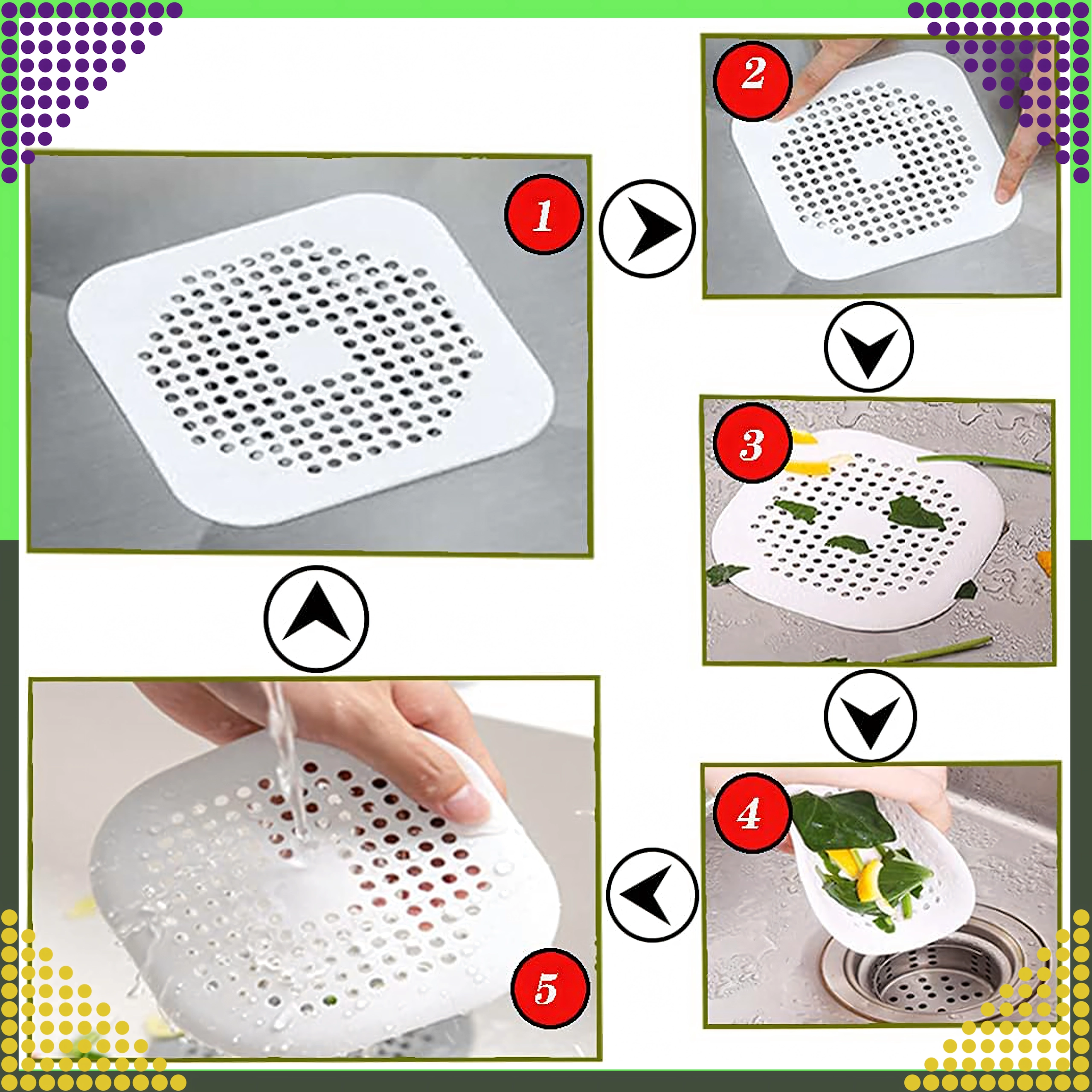 Instalace je otázkou okamžiku – sítko stačí přiložit na odtok a po naplnění jej jednoduše zvednout, opláchnout a znovu použít. Minimalistický bílý design se hodí do každé domácnosti a udržuje odtoky čisté a bez zápachu.