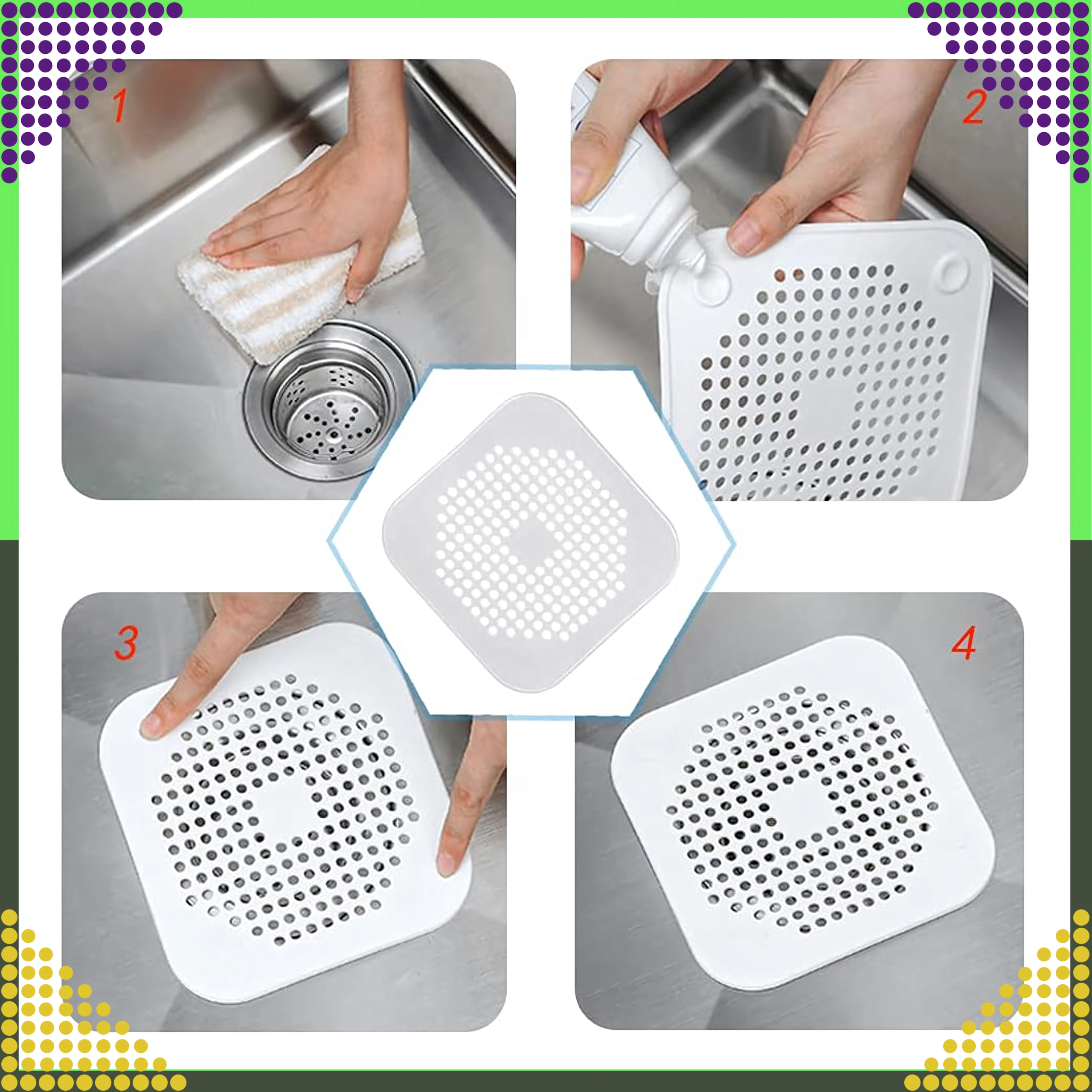 Univerzální silikonové sítko na odtok spolehlivě zachytí vlasy a zbytky potravin, aby předešlo ucpání dřezu, vany i umyvadla. Díky flexibilnímu silikonu skvěle přilne k povrchu, snadno se čistí a během pár vteřin ho umístíte na odtok. Ideální pro každodenní použití v kuchyni i koupelně.