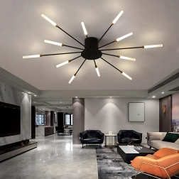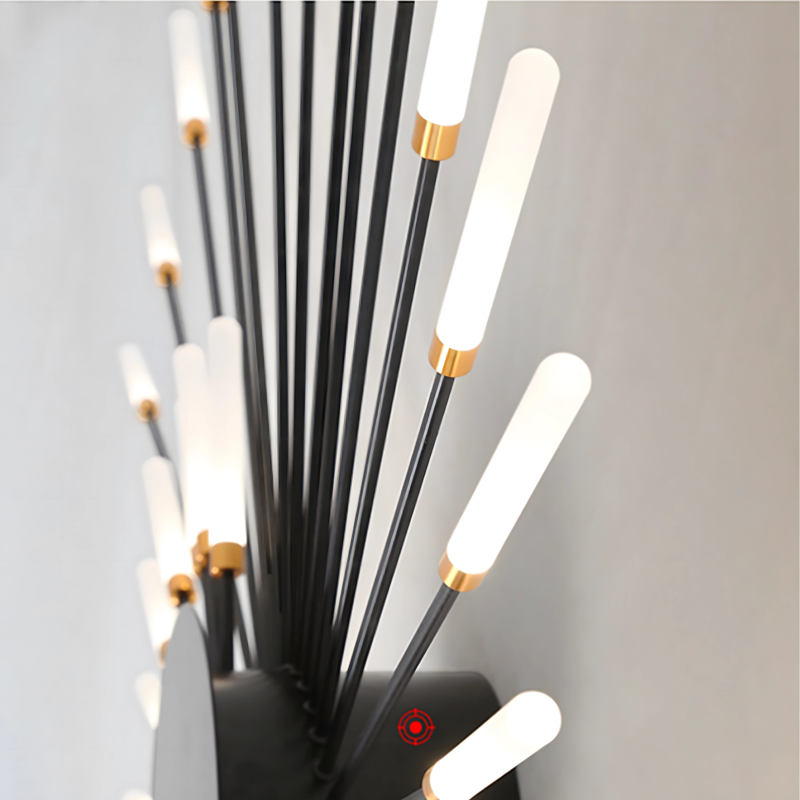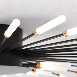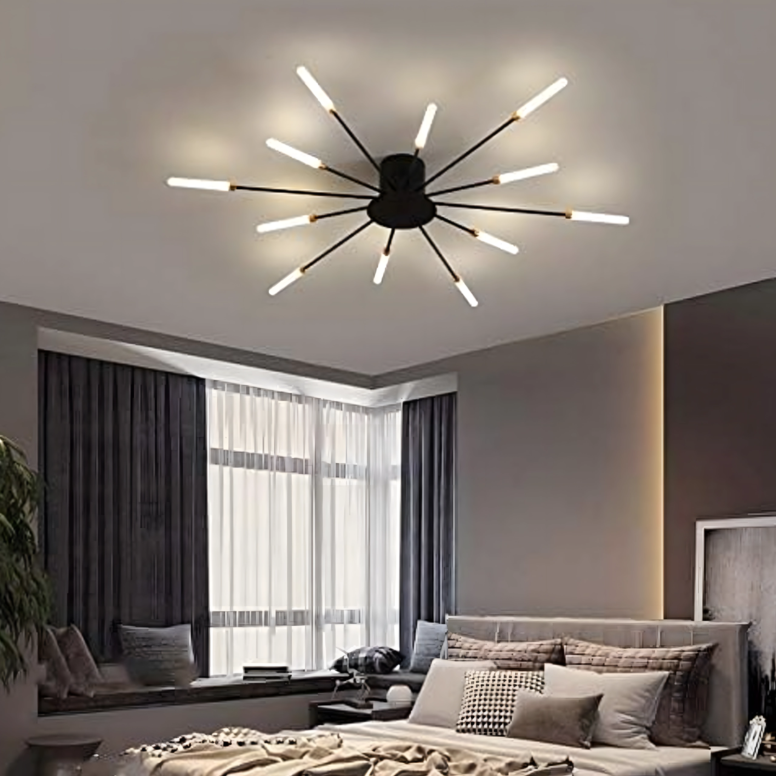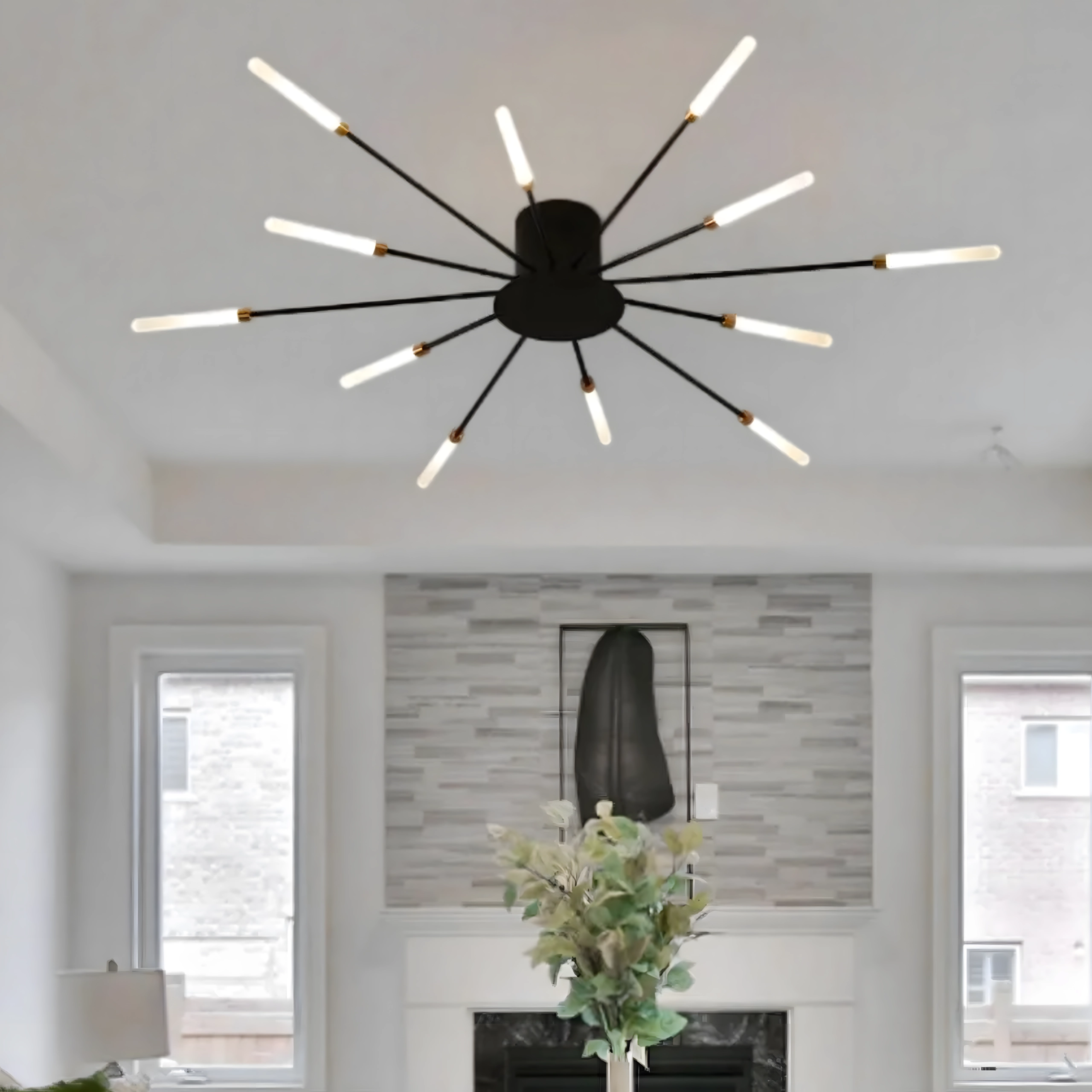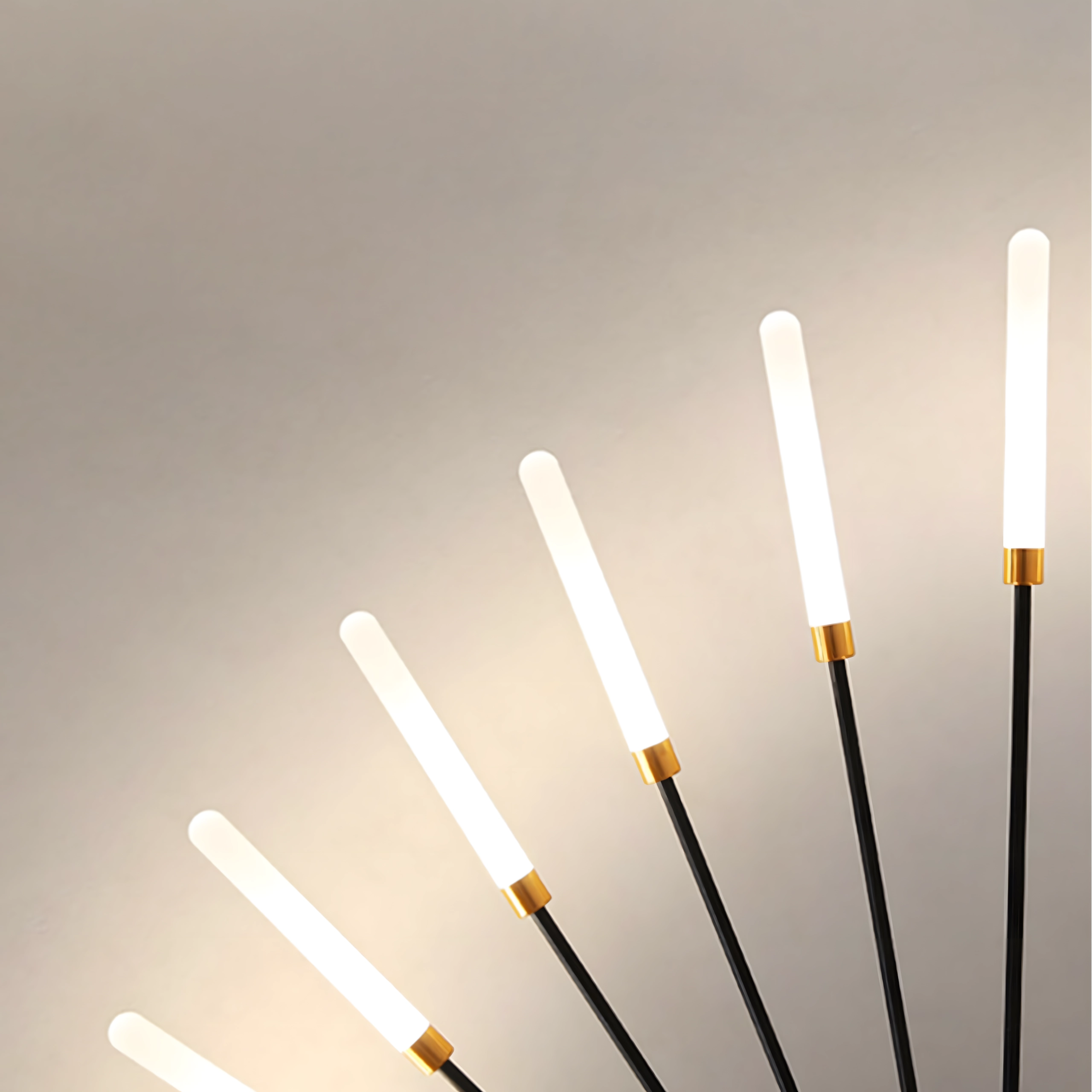 Stylové stropní světlo s víceramennou konstrukcí vytváří efekt ohňostroje a dodá vašemu interiéru výrazný charakter. Úsporné LED zajišťují rovnoměrné okolní světlo bez oslnění, zatímco matná černá a zlaté detaily podtrhují moderní estetiku.