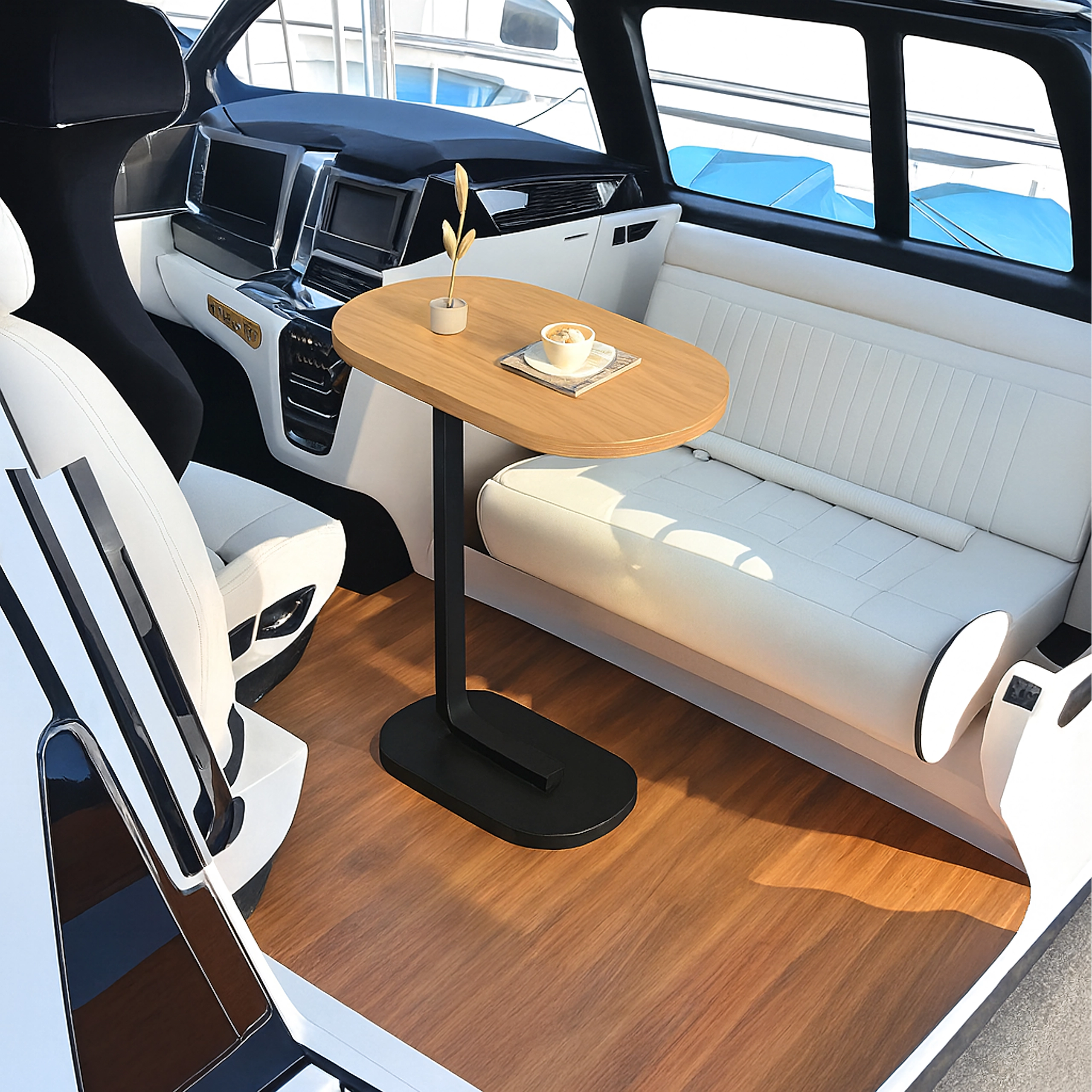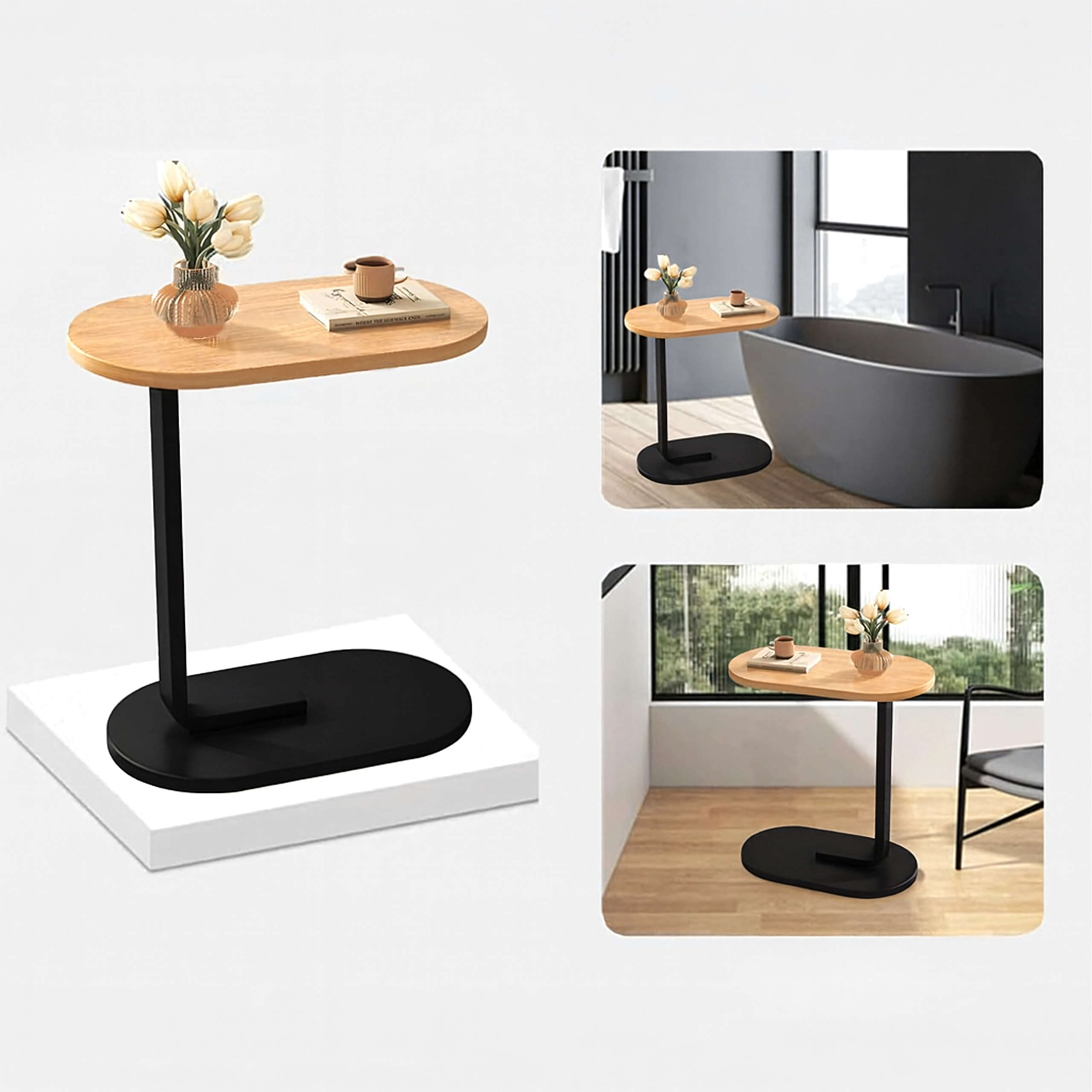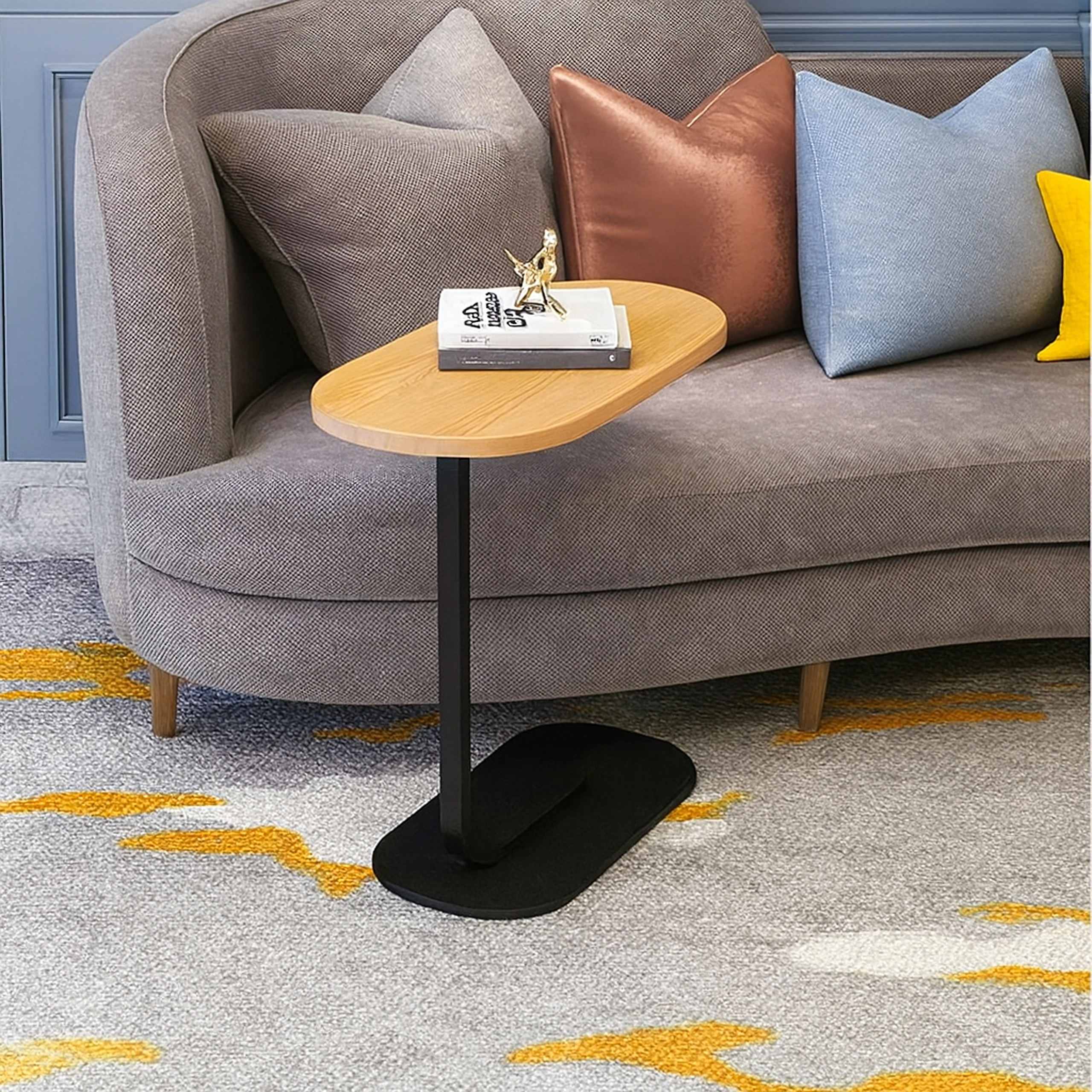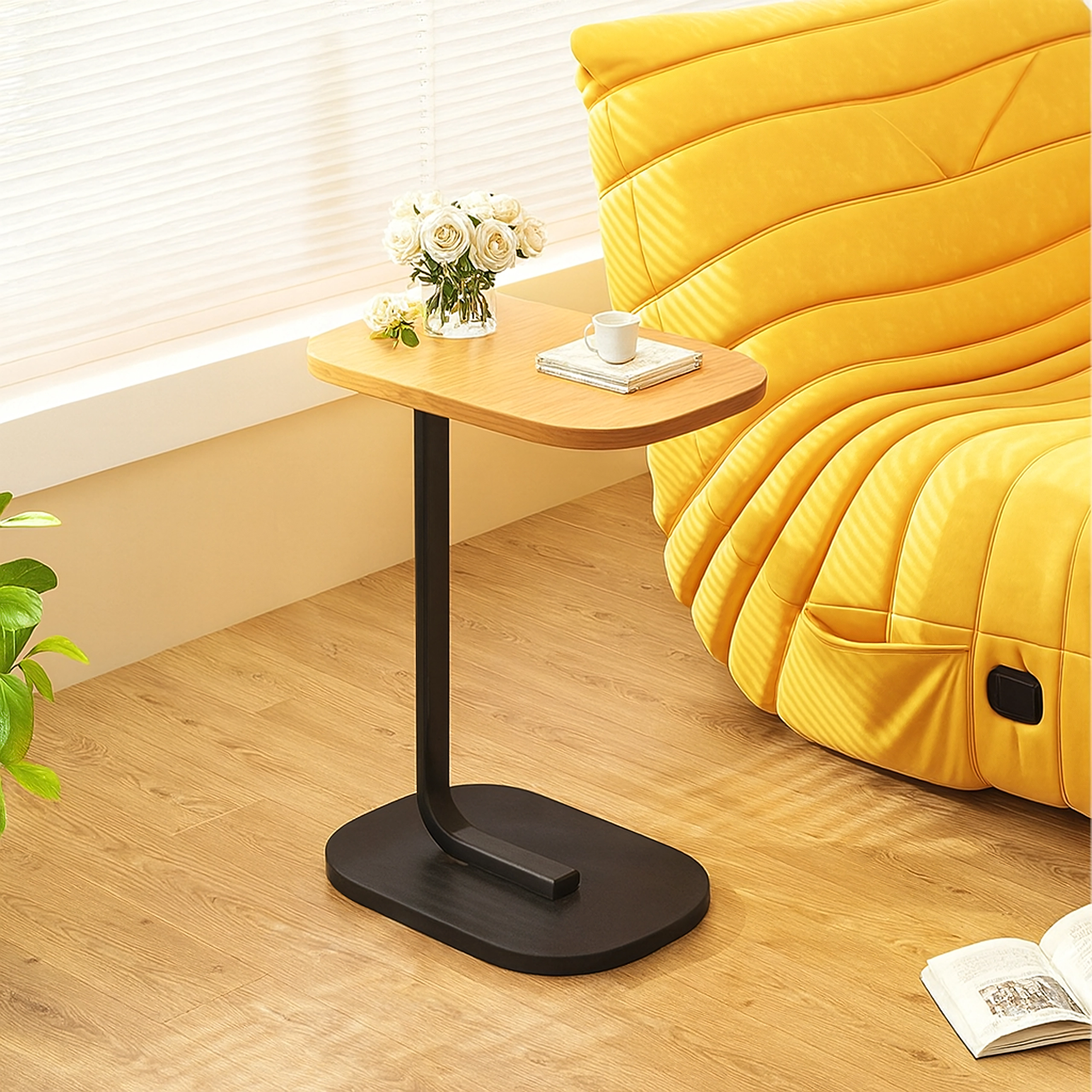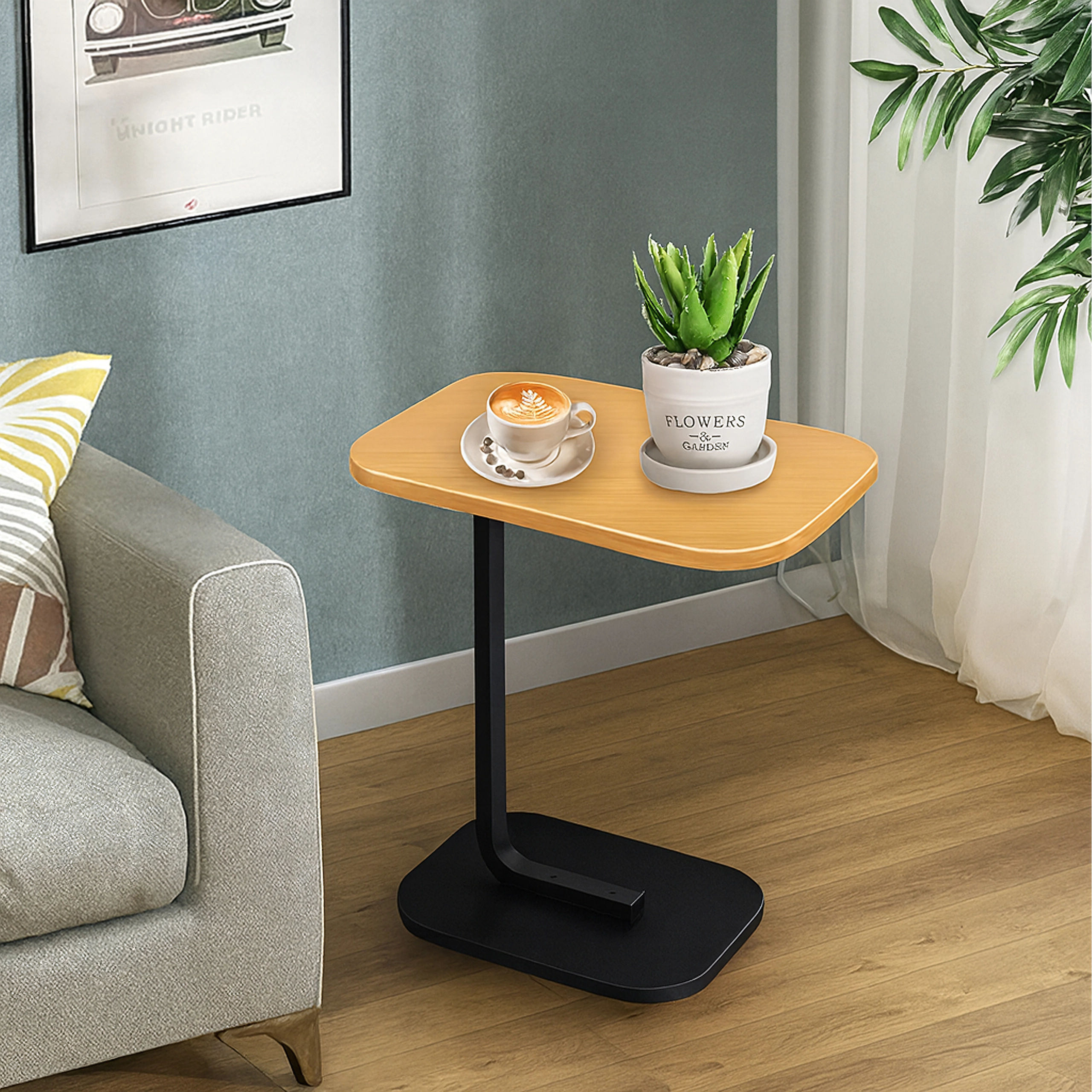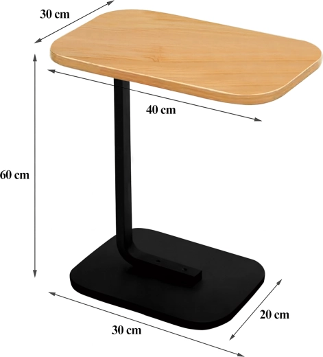 Elegantní C‑kový stolek kombinuje světlou dřevodekor desku s odolnou černou kovovou konstrukcí. Je ideální jako postranní stolek k sedačce, noční stolek k posteli nebo mobilní podstava pro práci s notebookem. Díky štíhlé základně jej snadno zasunete pod nábytek a ušetříte místo.