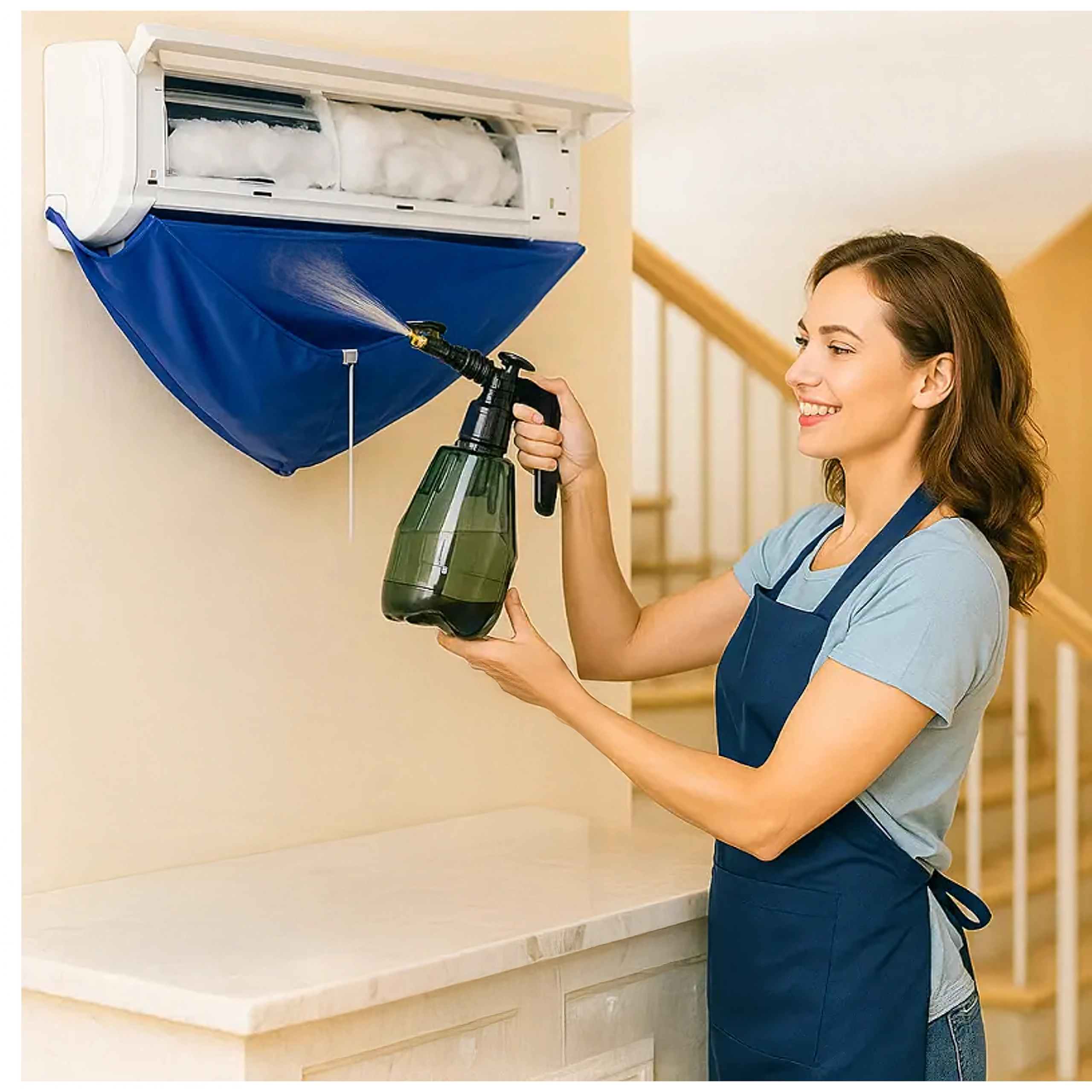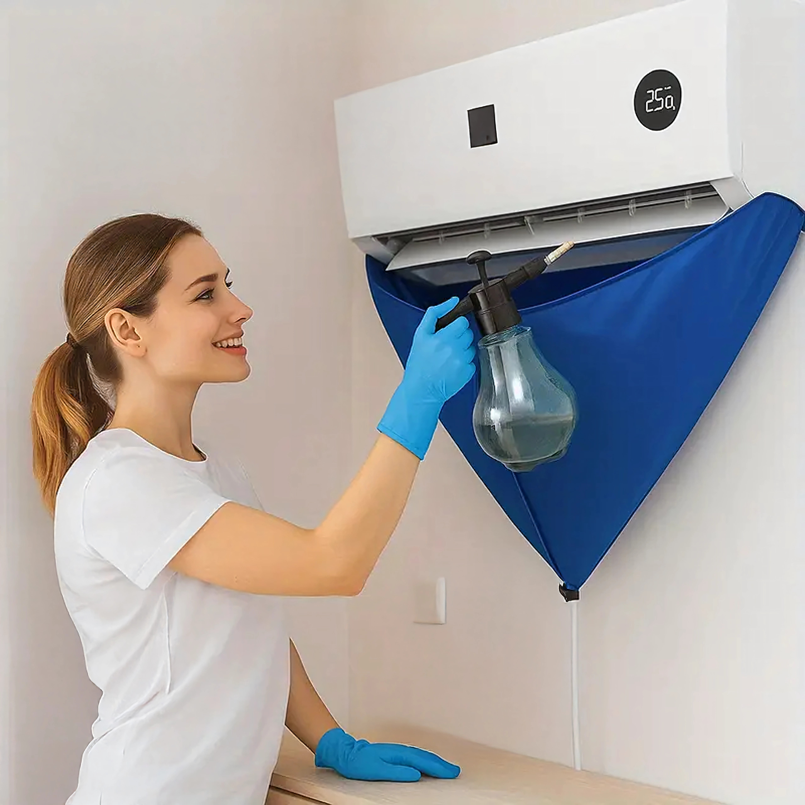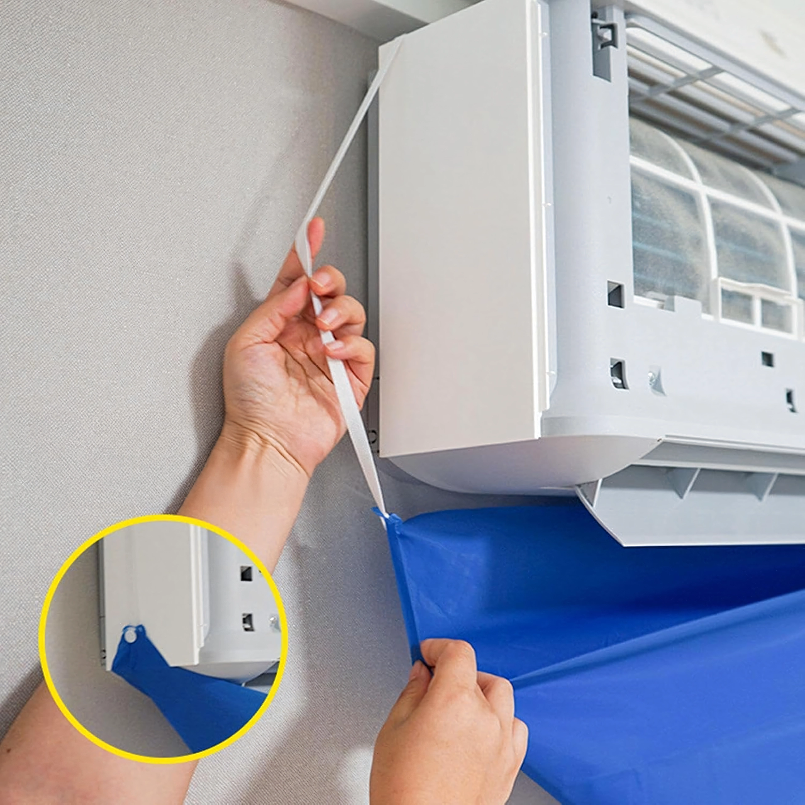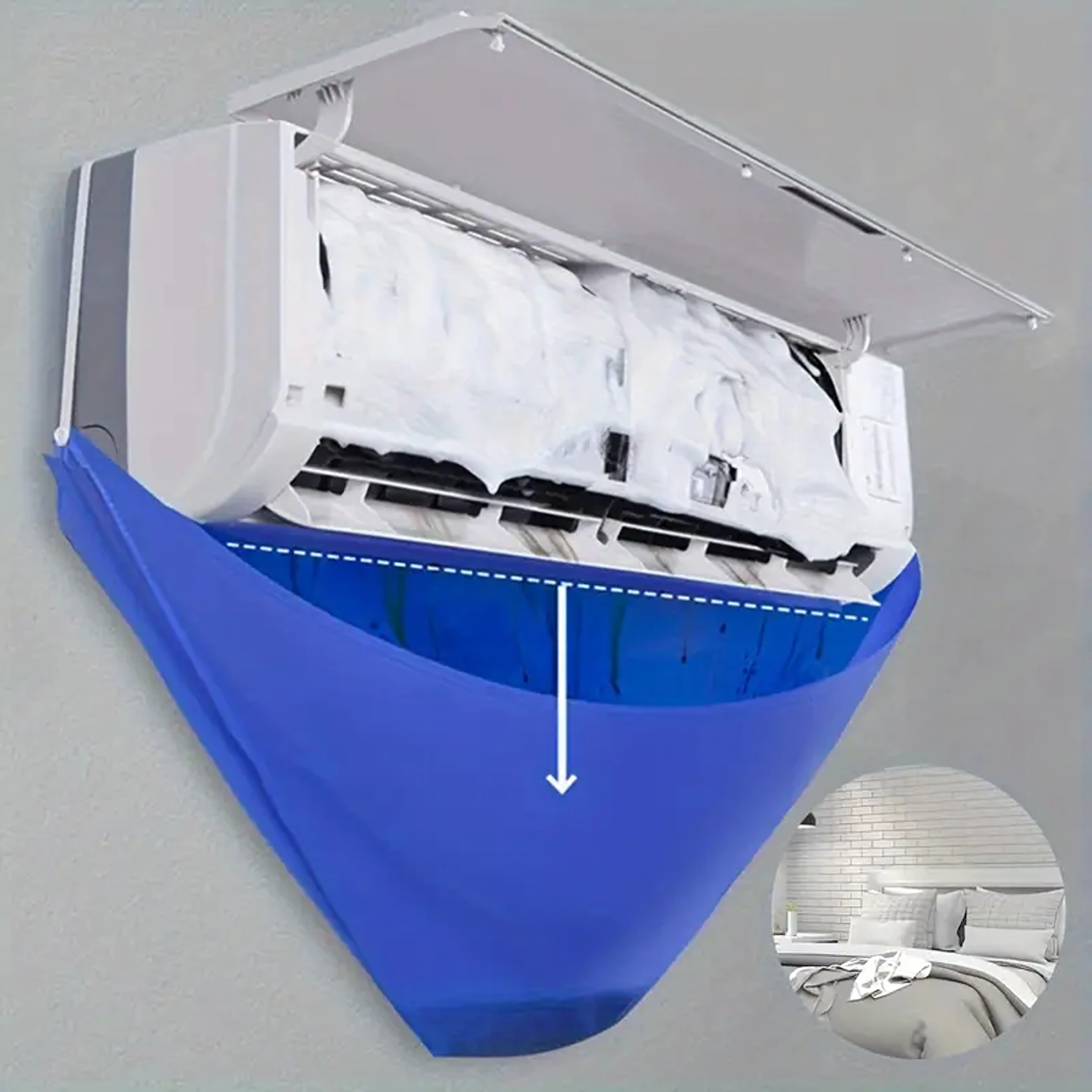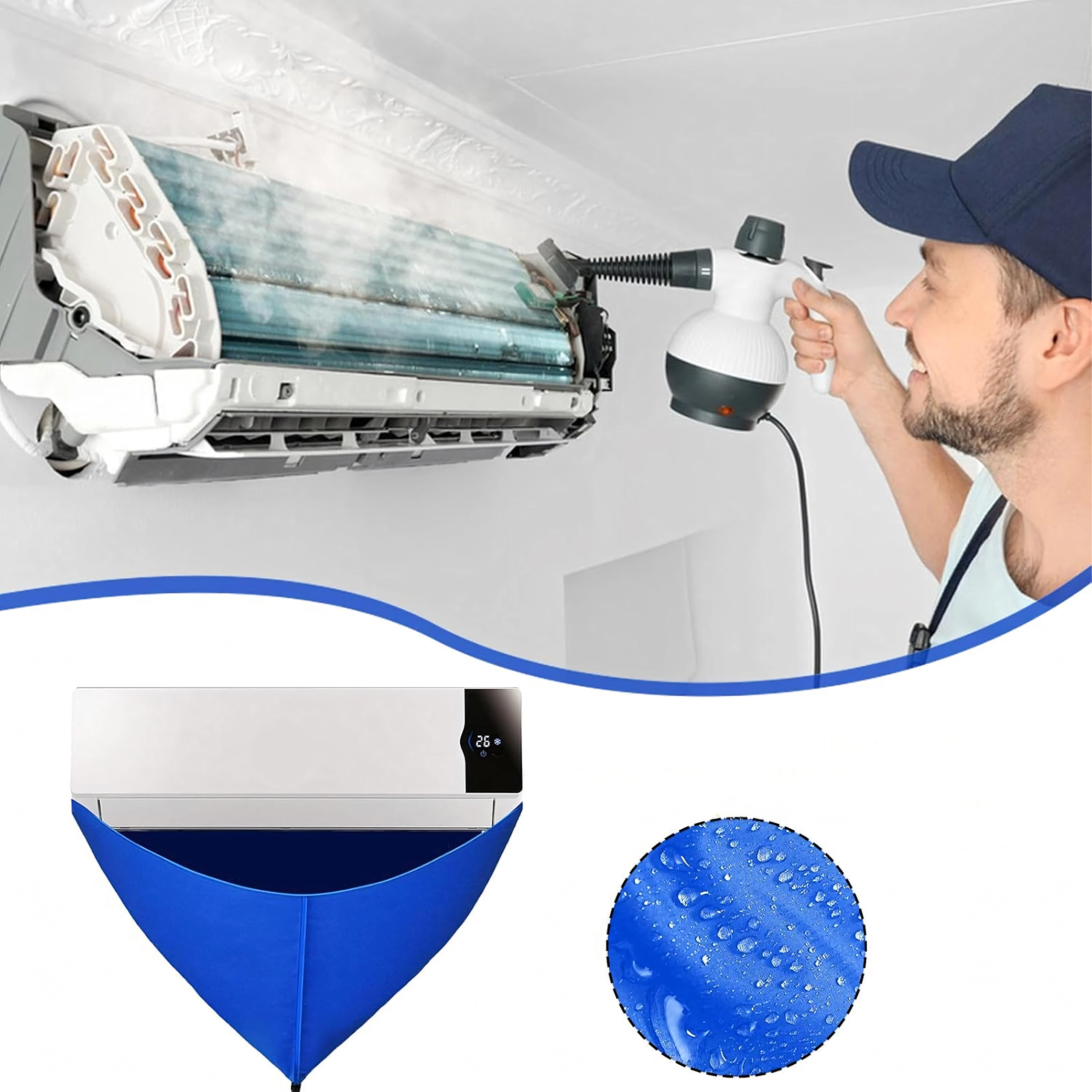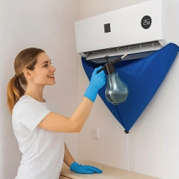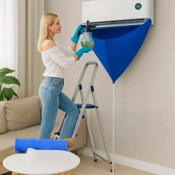 Usnadněte si údržbu nástěnných klimatizací s voděodolným krycím vakem, který spolehlivě zachytí špinavou vodu, čisticí roztok i nečistoty. Integrovaná 2m odtoková hadice bezpečně odvádí kapalinu do kbelíku či odpadu a elastický stahovač pomáhá utěsnit prostor kolem jednotky pro čistou a rychlou práci.