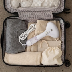 Lehký, skladný a snadno přenosný. Vejde se do kufru a je připravený pro rychlé úpravy oblečení kdekoli na cestách.