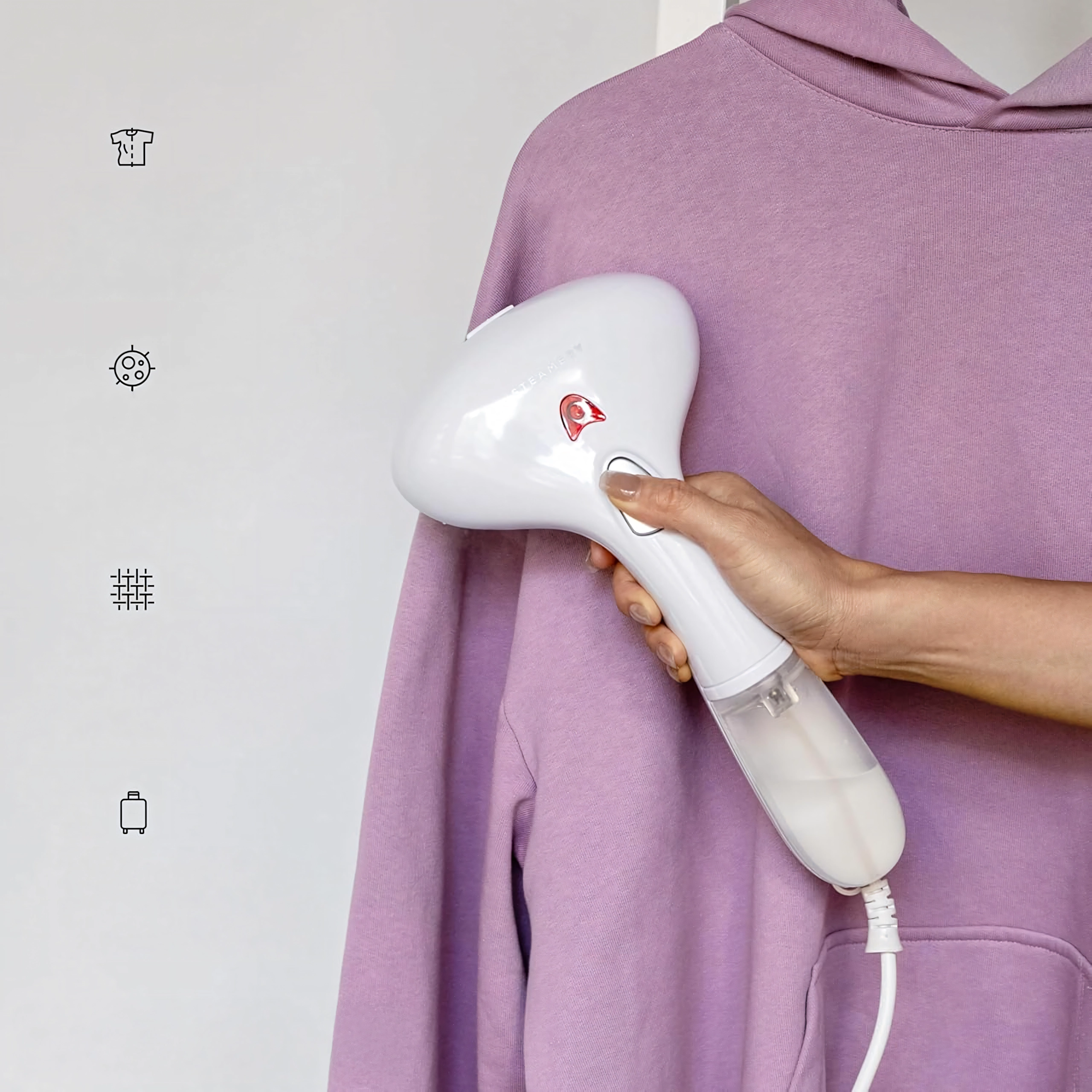 Bezpečně osvěží jemné materiály a zároveň si poradí s bavlnou či denimem. Napařování snižuje pomačkání a pomáhá eliminovat pachy.