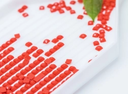 - Podle symbolů nasypte správnou barvu kamínků do drážkovaného tácku.