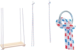 Klasická dřevěná houpačka v přírodní barvě pro domov i zahradu. Nabízí stabilní a bezpečné houpání, pevný dřevěný sedák 46 × 19 cm, nosnost 80 kg a odolná lana o délce 1,7 m. Vhodná pro děti od 3 let.