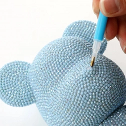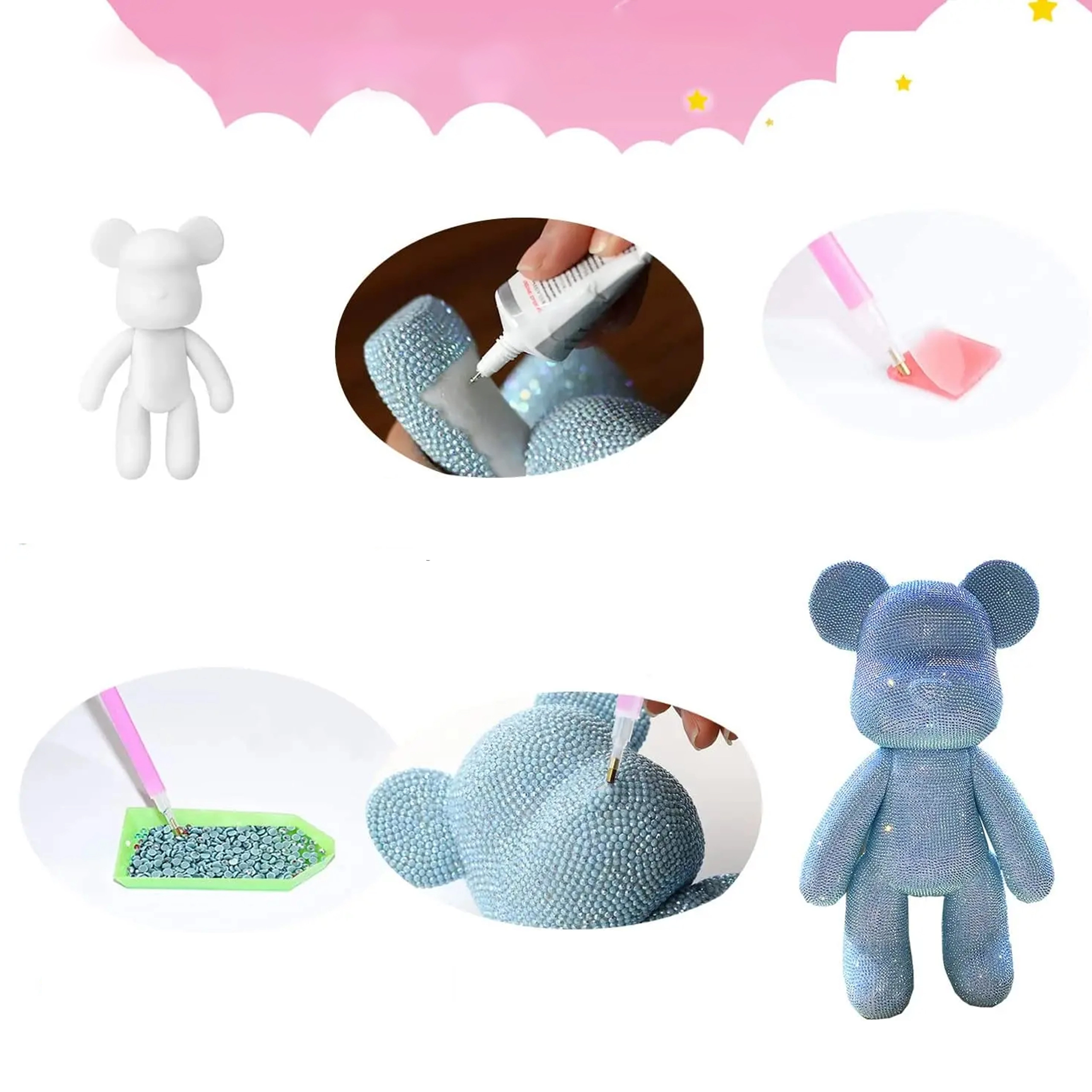 Kreativní sada 5D diamond painting s velkou figurkou medvídka o výšce 38 cm pro tvoření zářivé dekorace. Obsahuje barevné kamínky, aplikátor, lepidlo a tácek pro snadné vykládání. Ideální dárek pro děti i dospělé, barva kamínků je zasílána náhodně.
