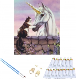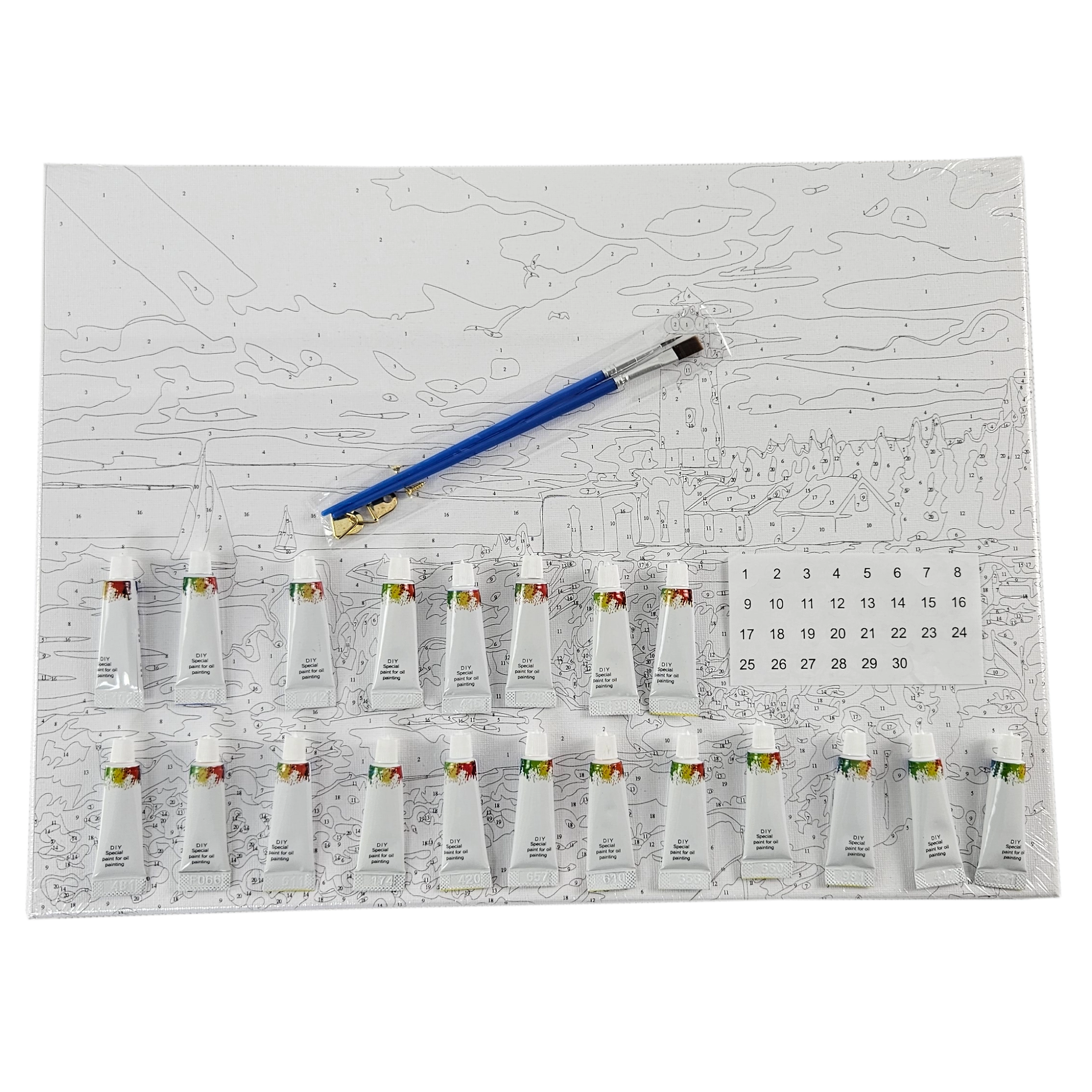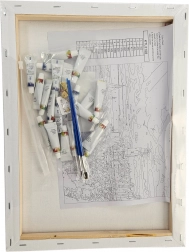 - Předtištěné plátno s čísly, sada barev odpovídajících číslům, štětce