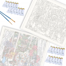 - Kompletní sada – plátno 30 × 40 cm s předtiskem, akrylové barvy, štětce