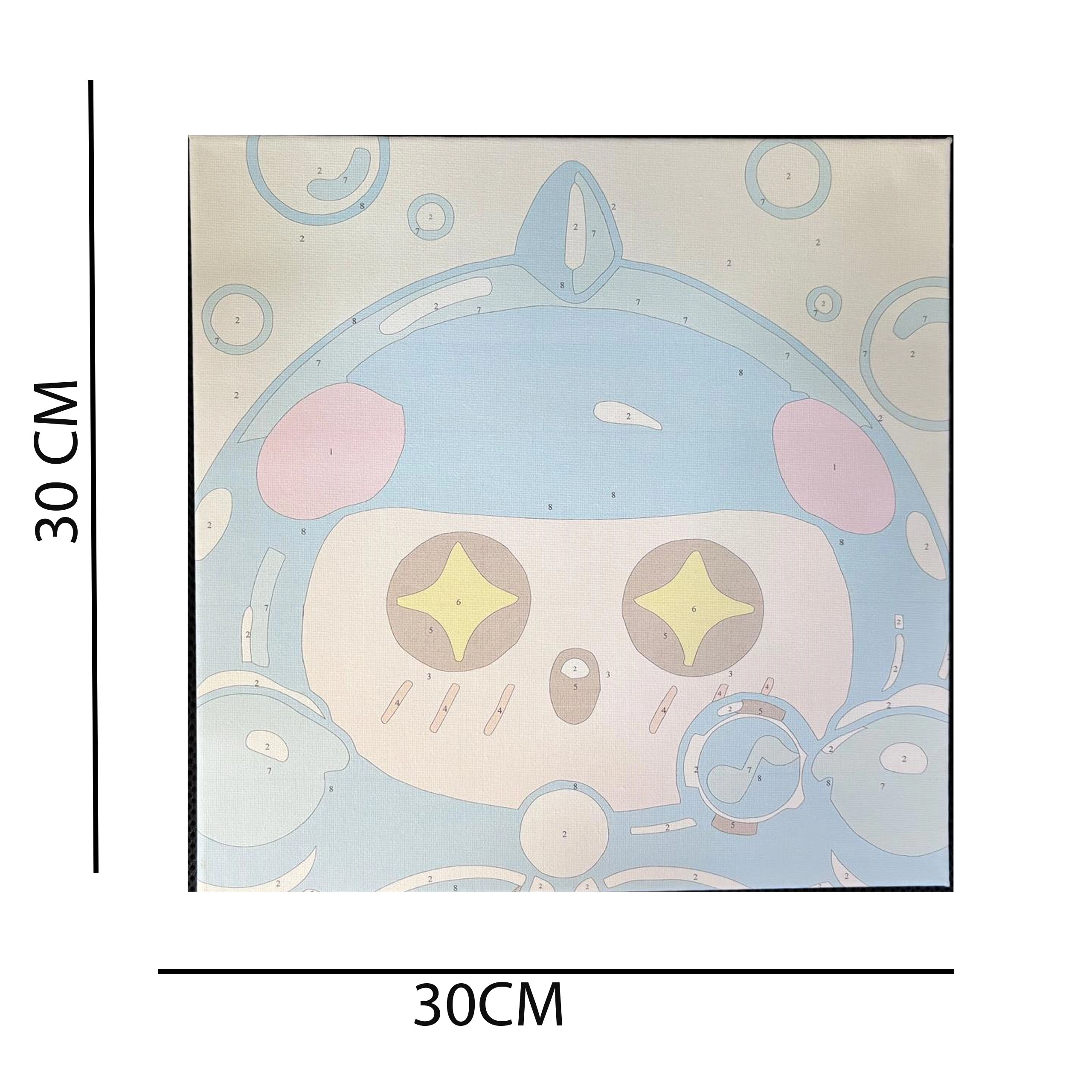 - Kompletní sada: plátno 30 × 30 cm na rámu, očíslované akrylové barvy, 2 štětce, závěsné příslušenství.