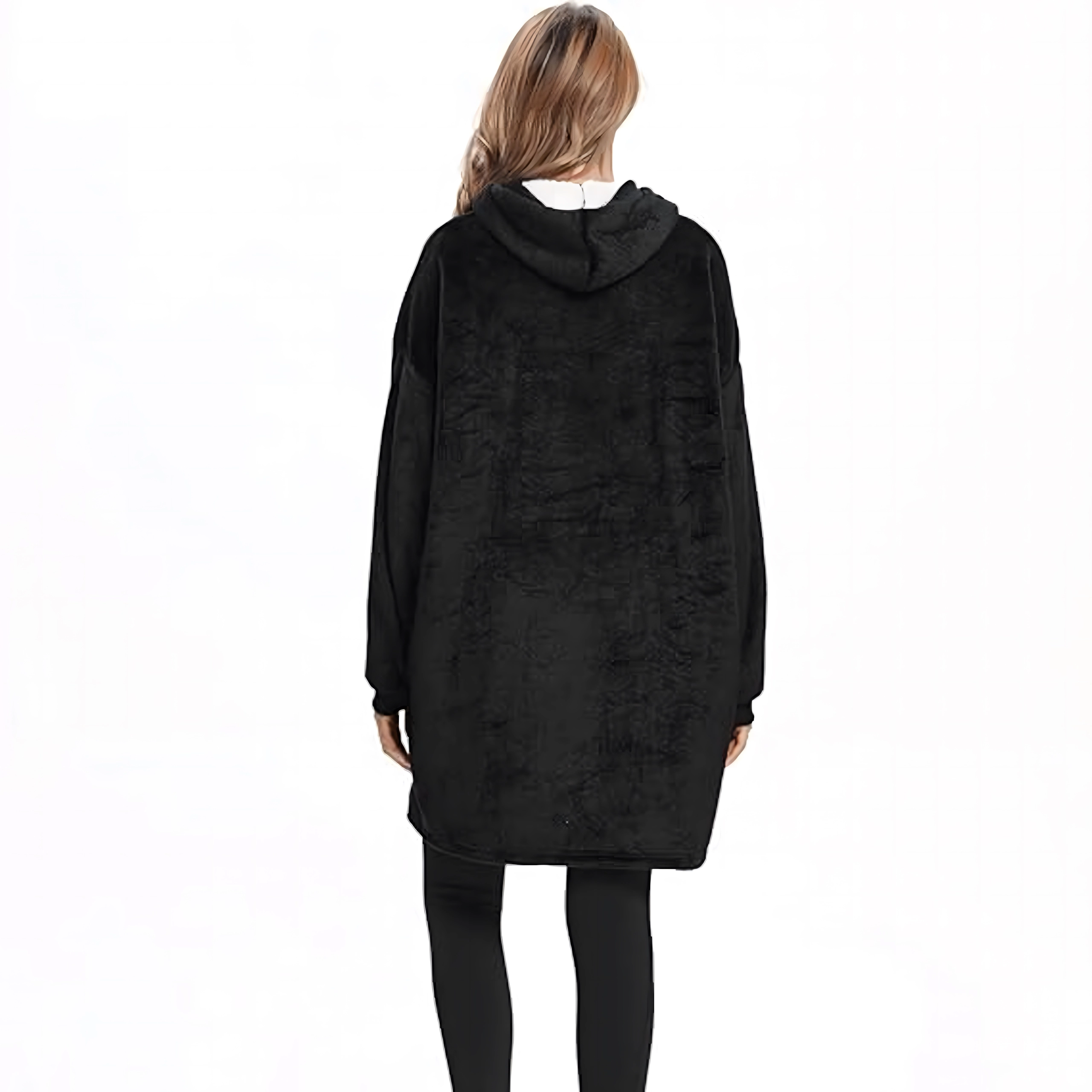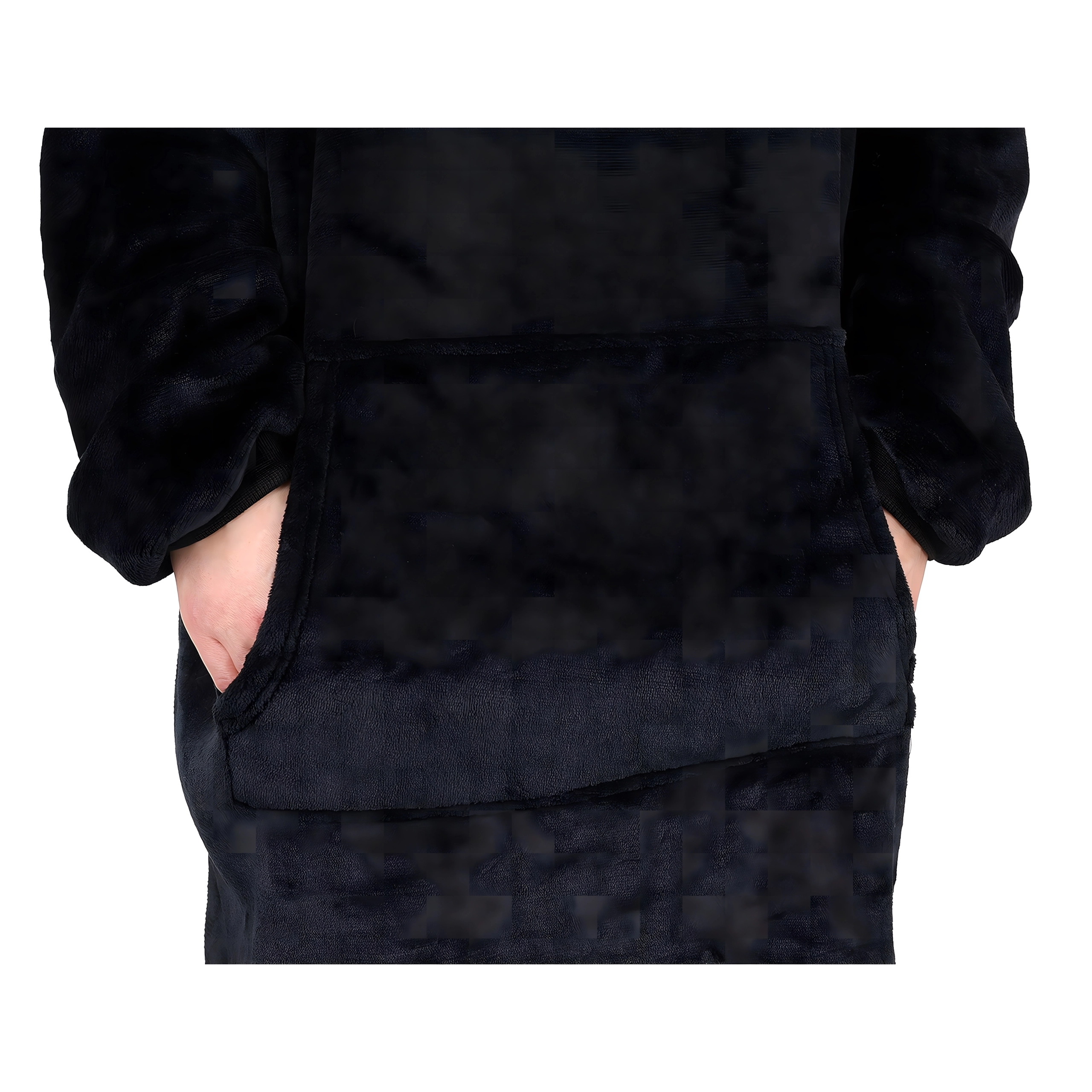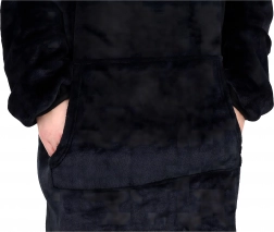 Díky prostorné kapuci a velké přední kapse máte vše potřebné vždy po ruce a hlavu v teple. Černá barva je nadčasová a snadno ladí s jakýmkoli interiérem. Ideální pro lenošení na gauči, čtení knih i dlouhé filmové maratony.