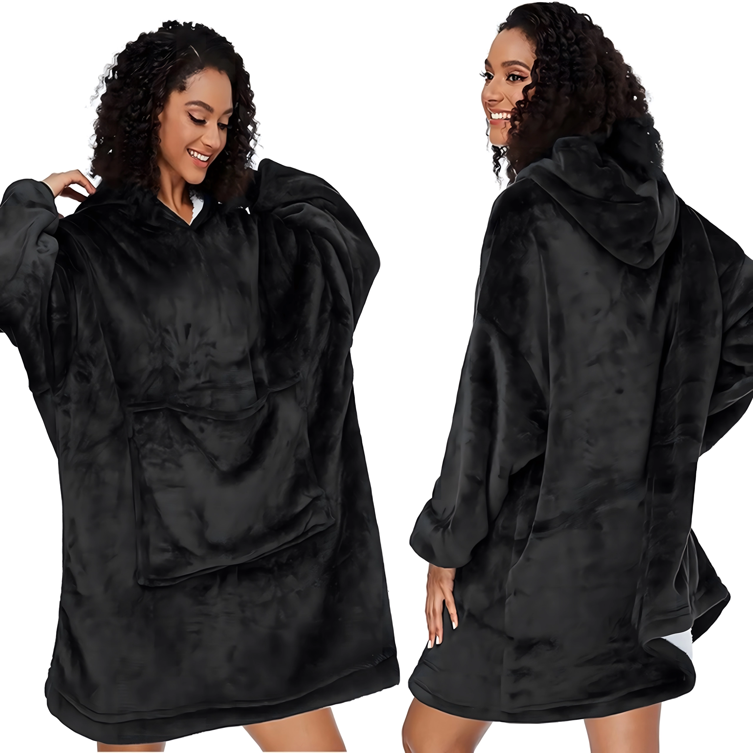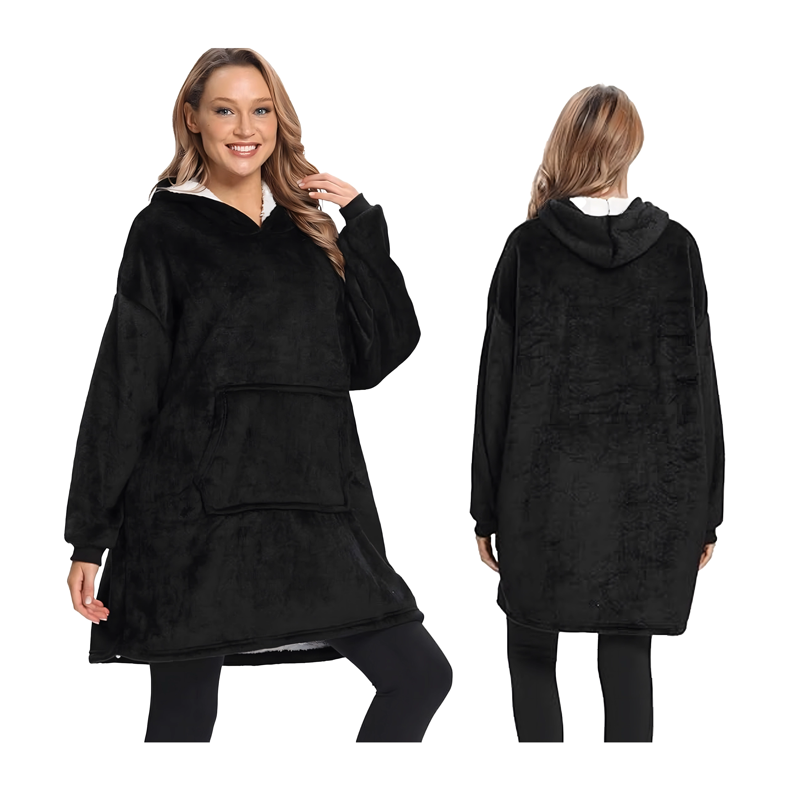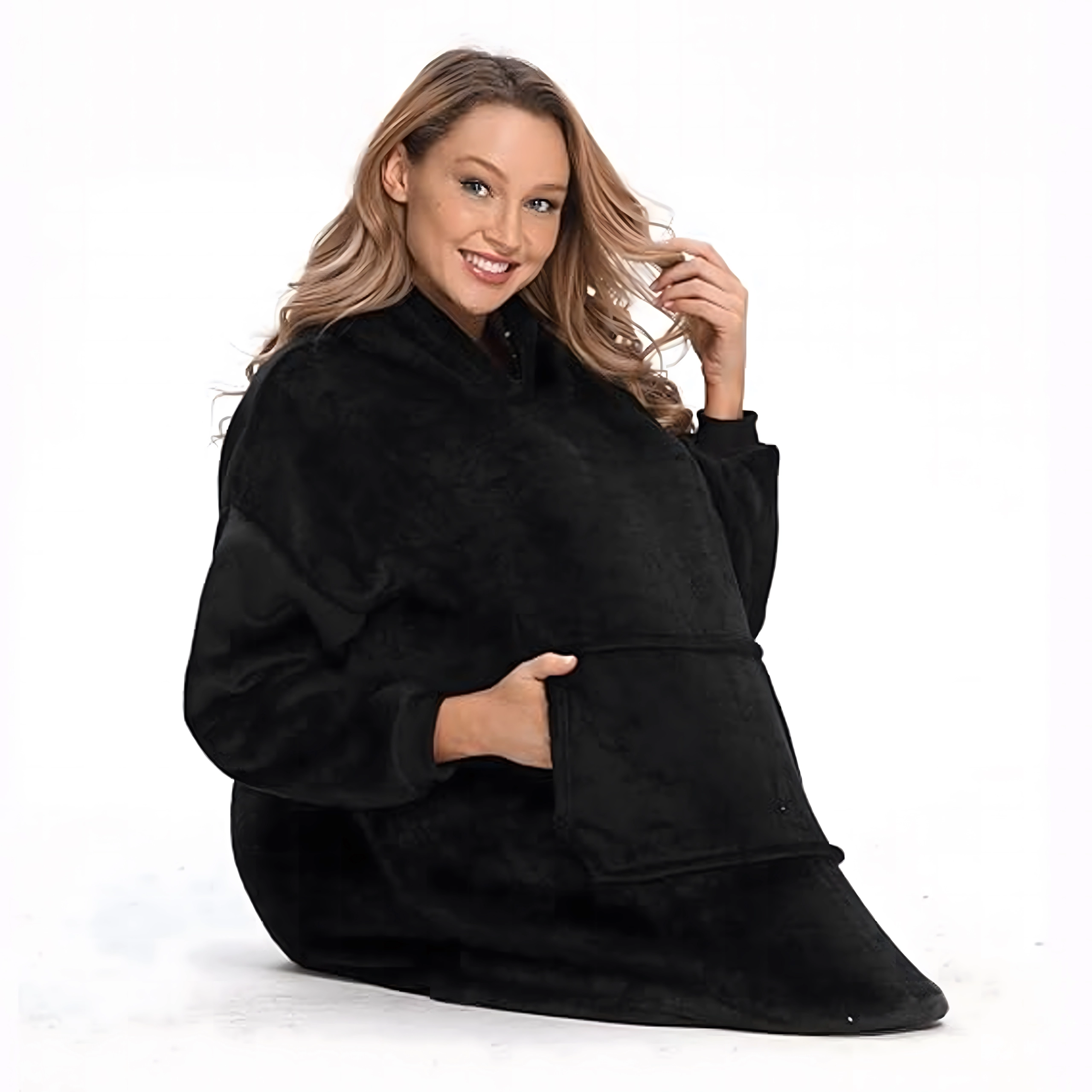 Objevte maximální pohodlí a teplo s touto oversize nositelnou dekou s kapucí. Je měkká, hustá a hřejivá, ideální na chladné dny a večery pro ženy i muže. Velká klokaní kapsa pojme telefon či ovladač a univerzální střih zajistí volnost pohybu při odpočinku doma, sledování filmů nebo práci z domova.