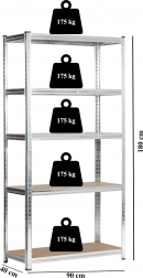 Každá police unese až 175 kg, což zajišťuje vysokou pevnost i při skladování těžkých předmětů a balíků. Ideální pro garáže, dílny a sklady.