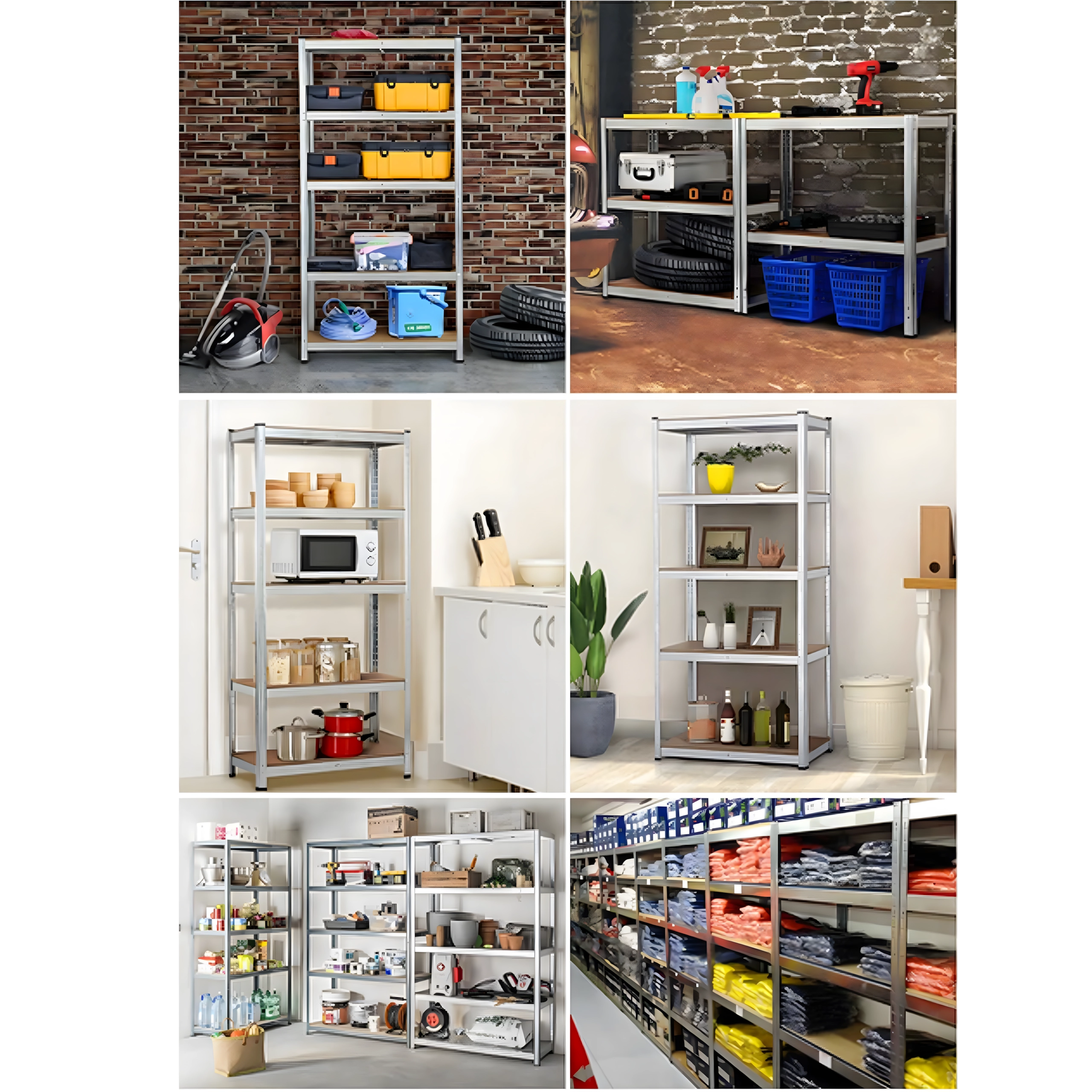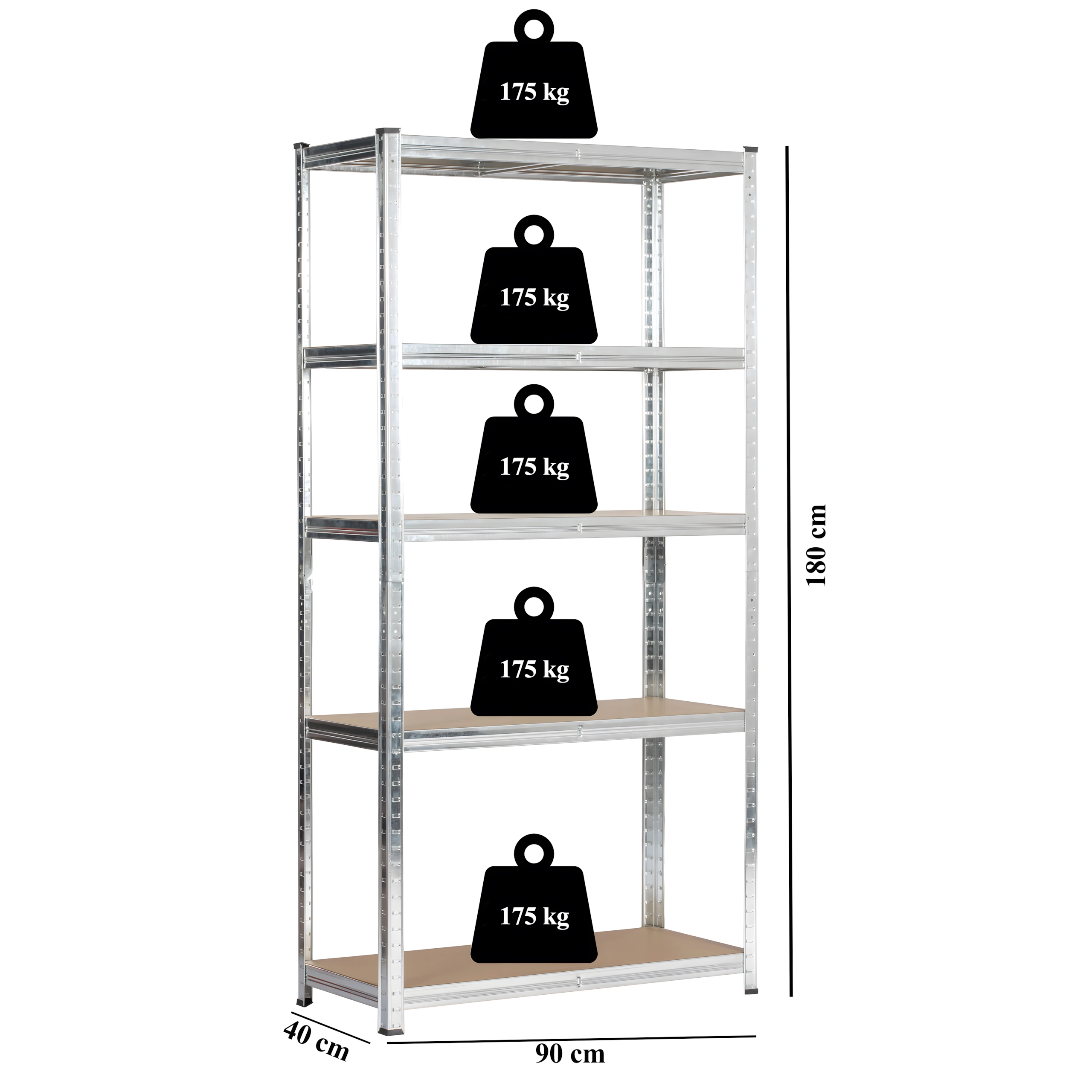 Robustní regál z pozinkované oceli nabízí spolehlivé a bezpečné uložení nářadí, krabic i materiálu. Díky pěti výškově nastavitelným policím z MDF snadno přizpůsobíte prostor aktuálním potřebám a efektivně využijete každý centimetr.