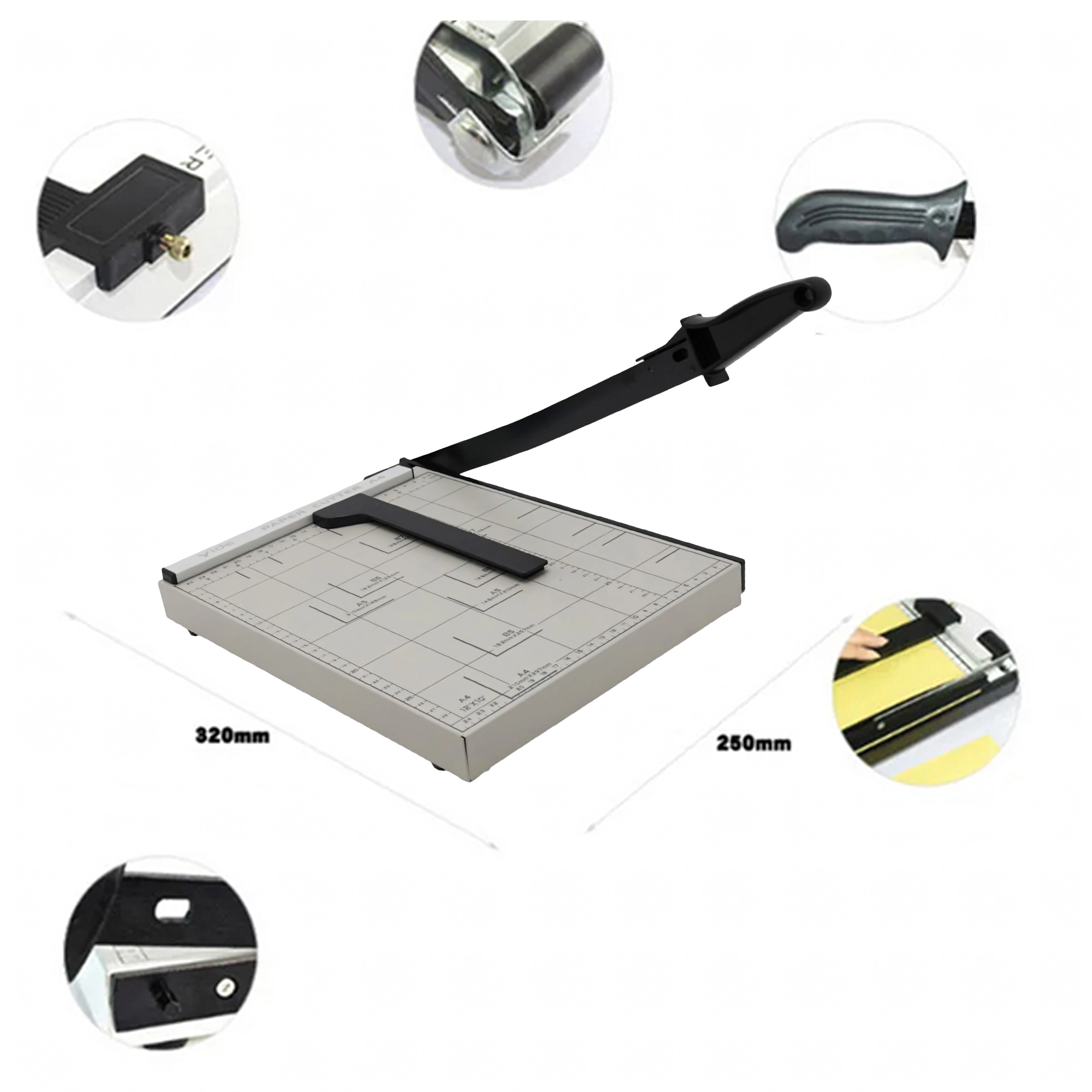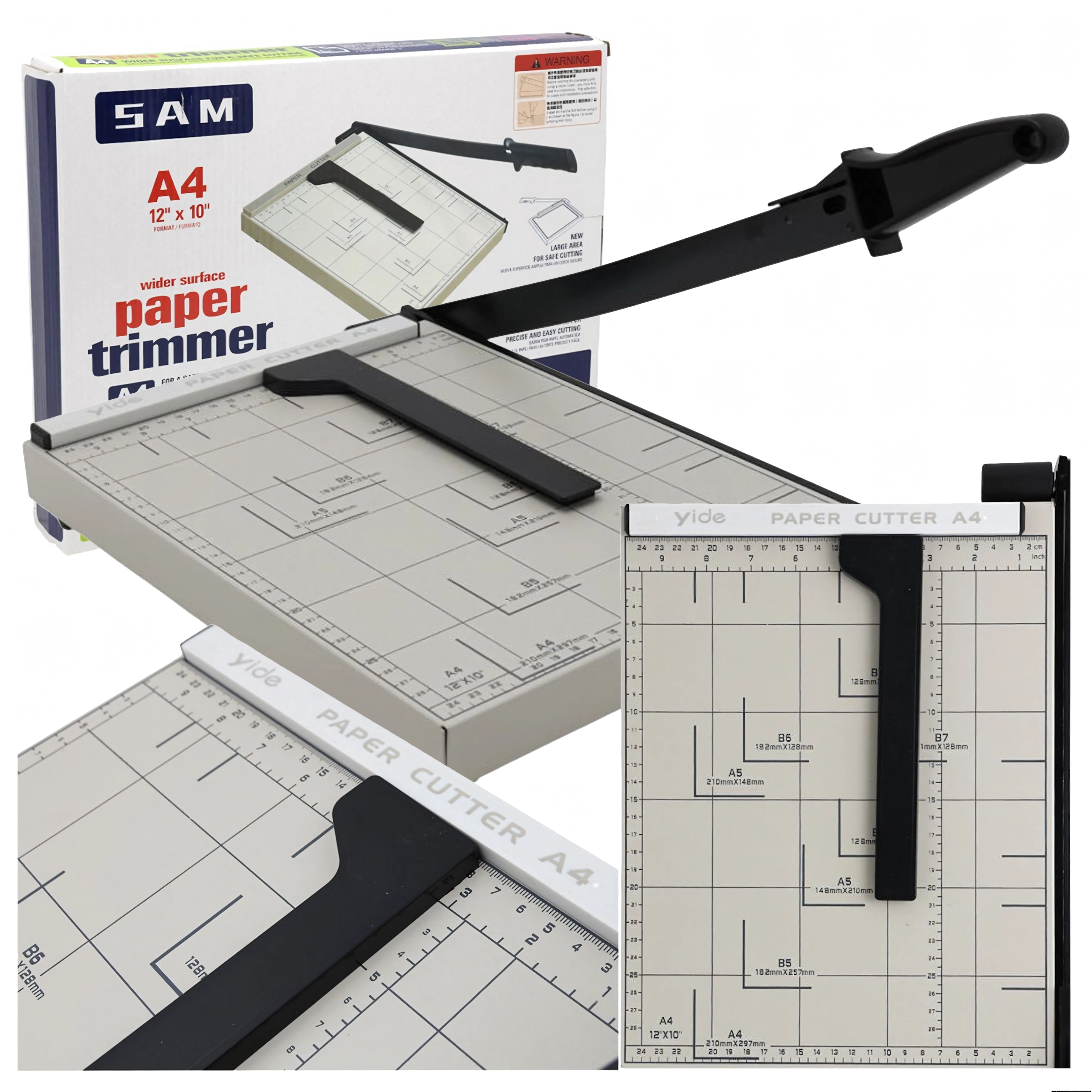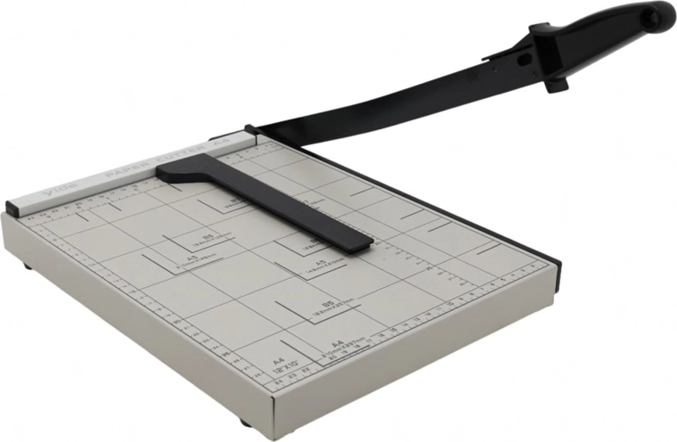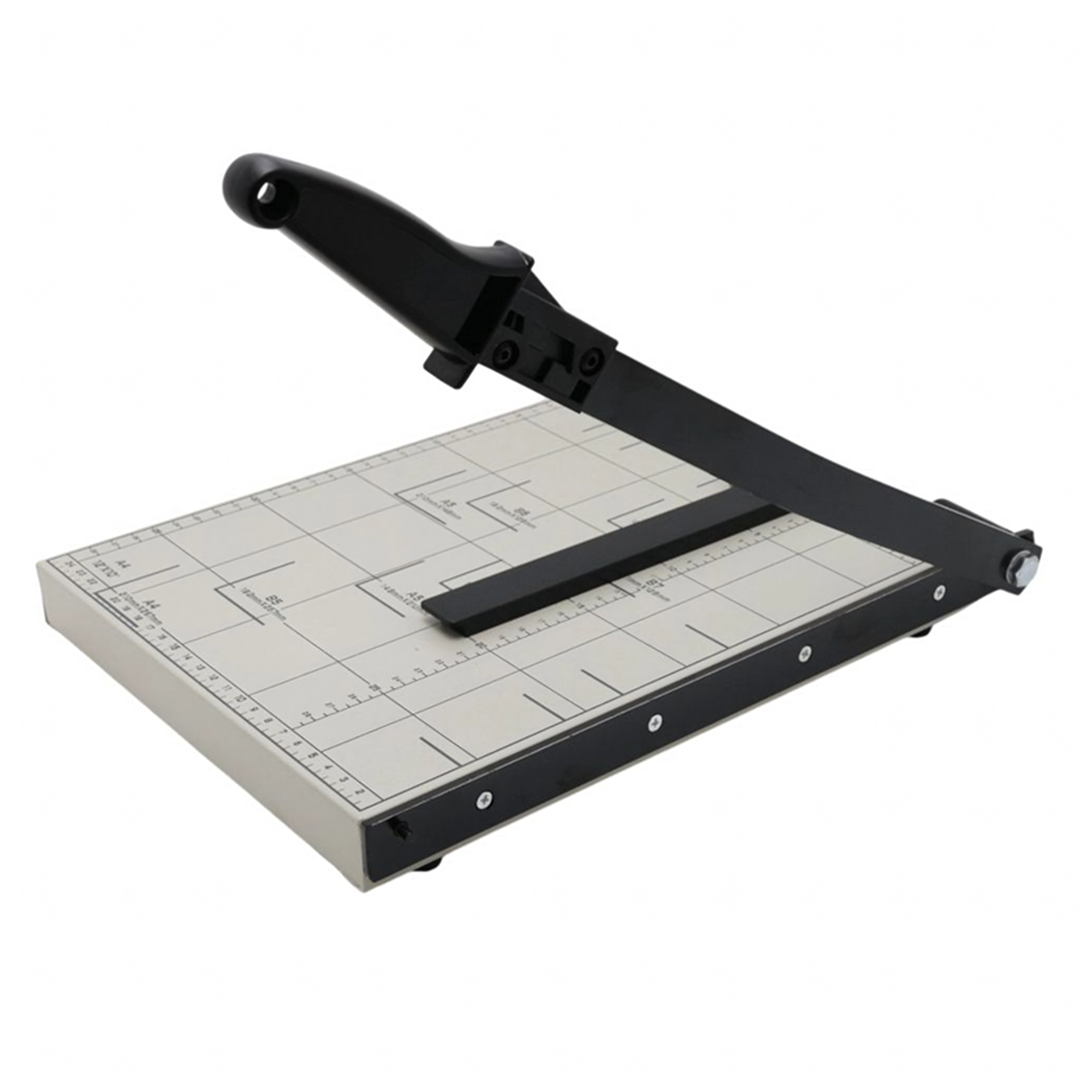 Tato odolná gilotina umožňuje bezpečné a rovné řezy díky přesné měřicí mřížce a vodicím značkám formátů (A4, A5, B5, apod.). Robustní kovová konstrukce a páka s pohodlnou rukojetí zajistí hladký chod a konzistentní výsledky při ořezávání dokumentů, fotografií či materiálů pro prezentace.