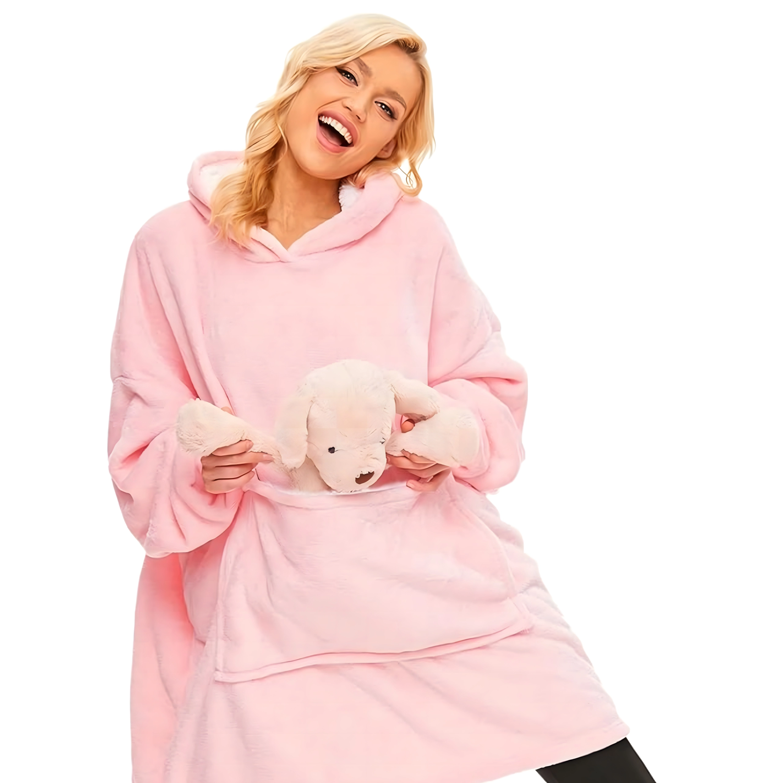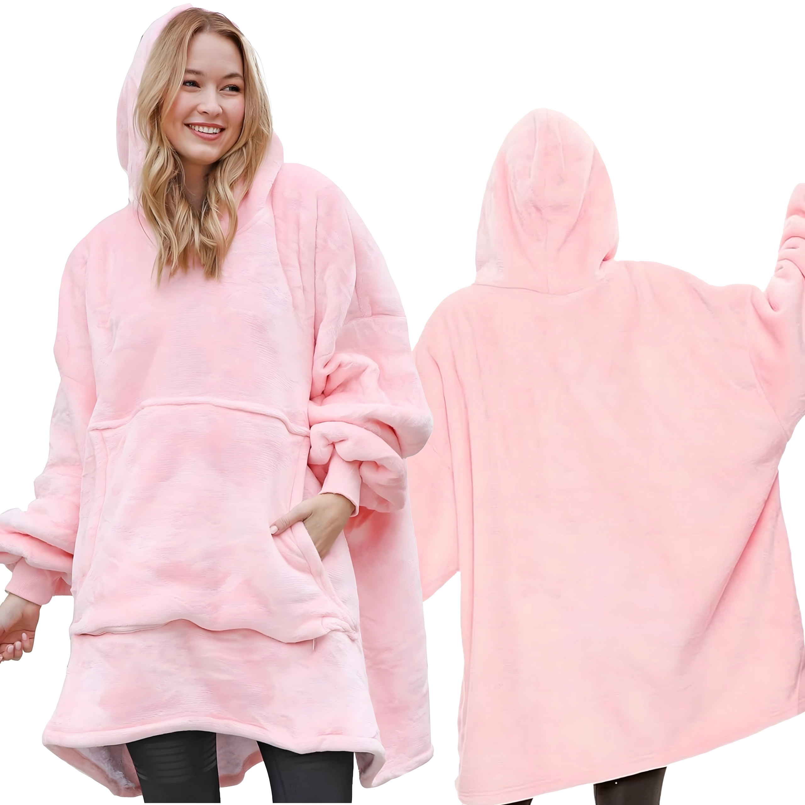 Hřejivá oversize mikina–deka kombinuje to nejlepší z deky a mikiny: plyšový, měkoučký materiál, prostorný střih a kapuci pro extra teplo. Ideální na chladné dny, lenošení na pohovce, čtení i práci z domova.