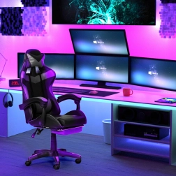 Ergonomické herní křeslo s výsuvnou podnožkou kombinuje styl, pohodlí a funkčnost pro dlouhé hraní i kancelářskou práci. Díky polstrovanému sedáku a vysokému opěradlu s oporou hlavy a beder si užijete maximální relax – jednoduše sklopíte opěradlo a vysunete podnožku. Stabilní základna s kolečky a nosnost 150 kg zajistí jistotu a plynulý pohyb.