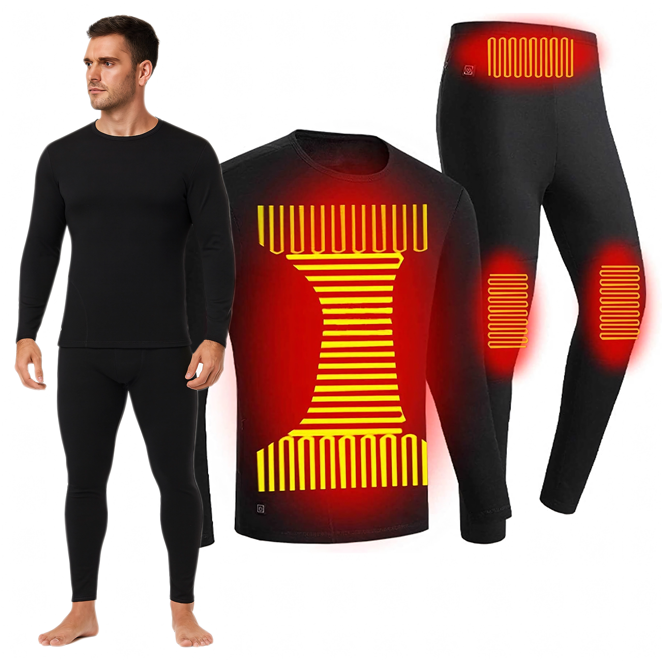 Užijte si zimu v teple díky tomuto vyhřívanému termoprádlu ve velikosti 2XL. Set obsahuje přiléhavé triko s dlouhým rukávem a legíny se 4 vyhřívacími zónami (záda, bedra, kolena), 3 úrovněmi teploty (45 °C, 55 °C, 65 °C) a napájením přes USB. Poskytuje až 7 hodin aktivního tepla (s powerbankou 10 000 mAh), je elastické, pohodlné a pratelné – ideální na lyže, turistiku i práci v chladu.