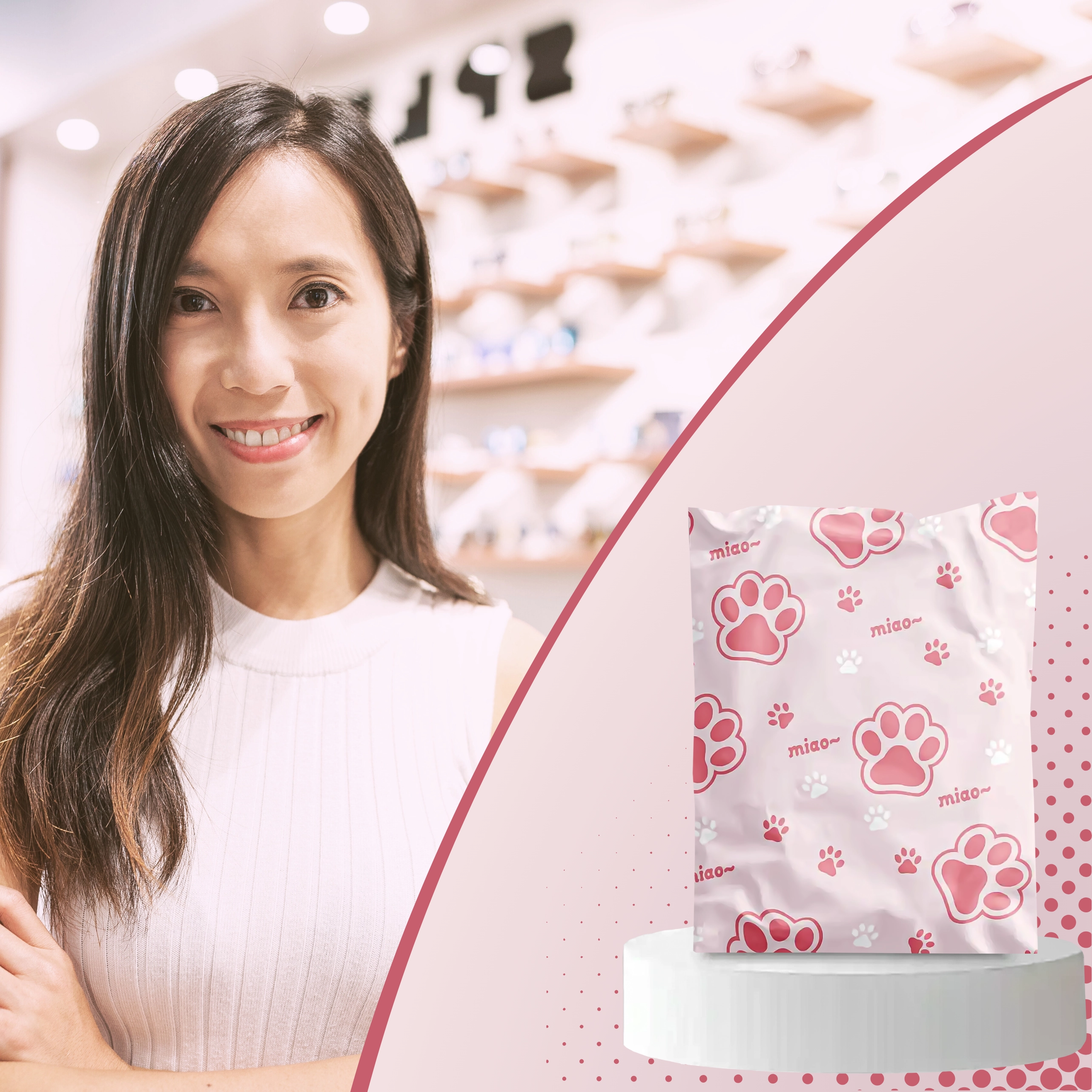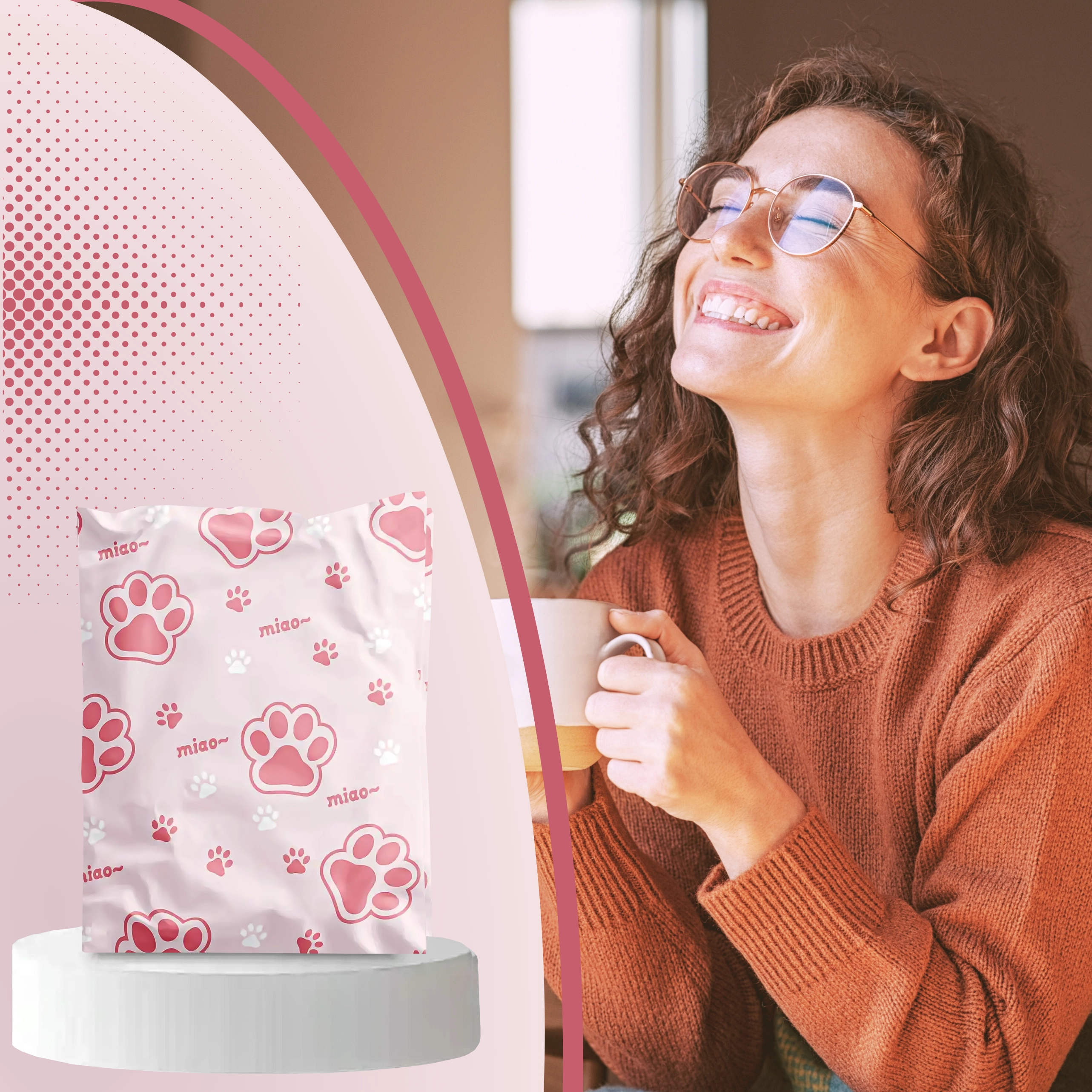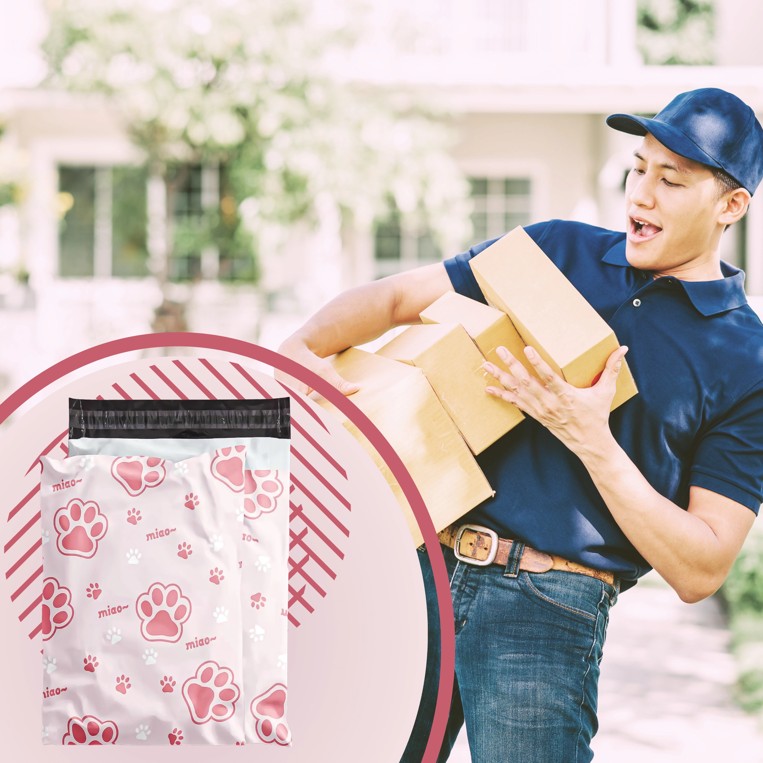 Dekor s nápisy a růžovými tlapkami dodá zásilkám osobitost a zlepší zákaznický dojem, aniž by utrpěla praktičnost či odolnost obálky.