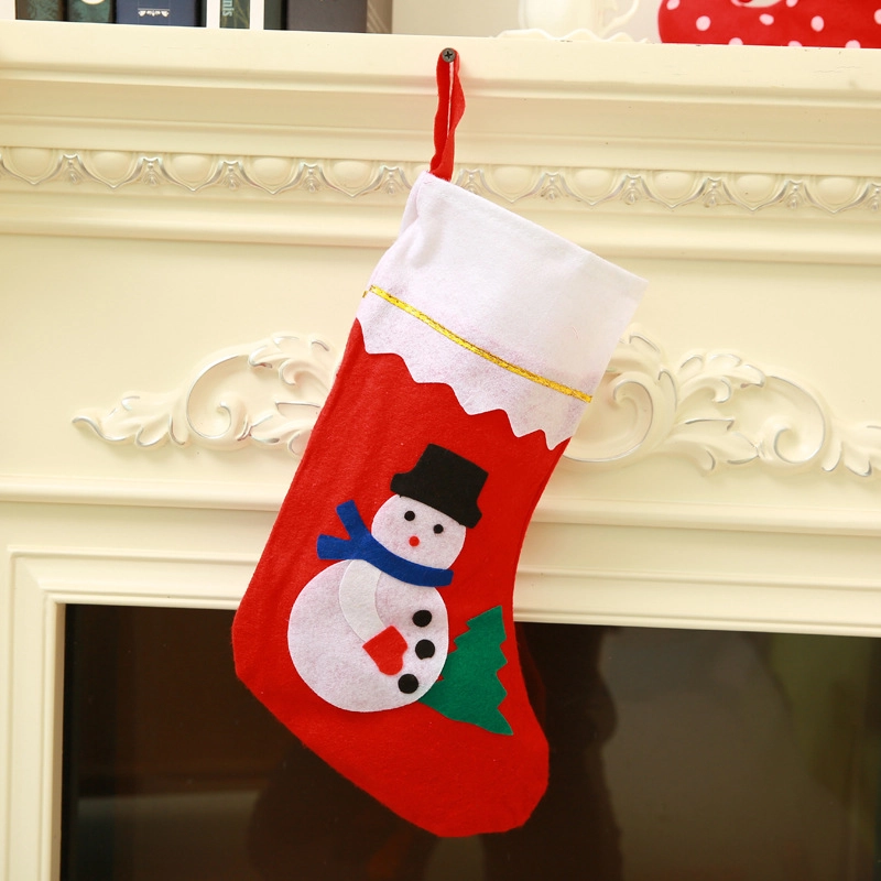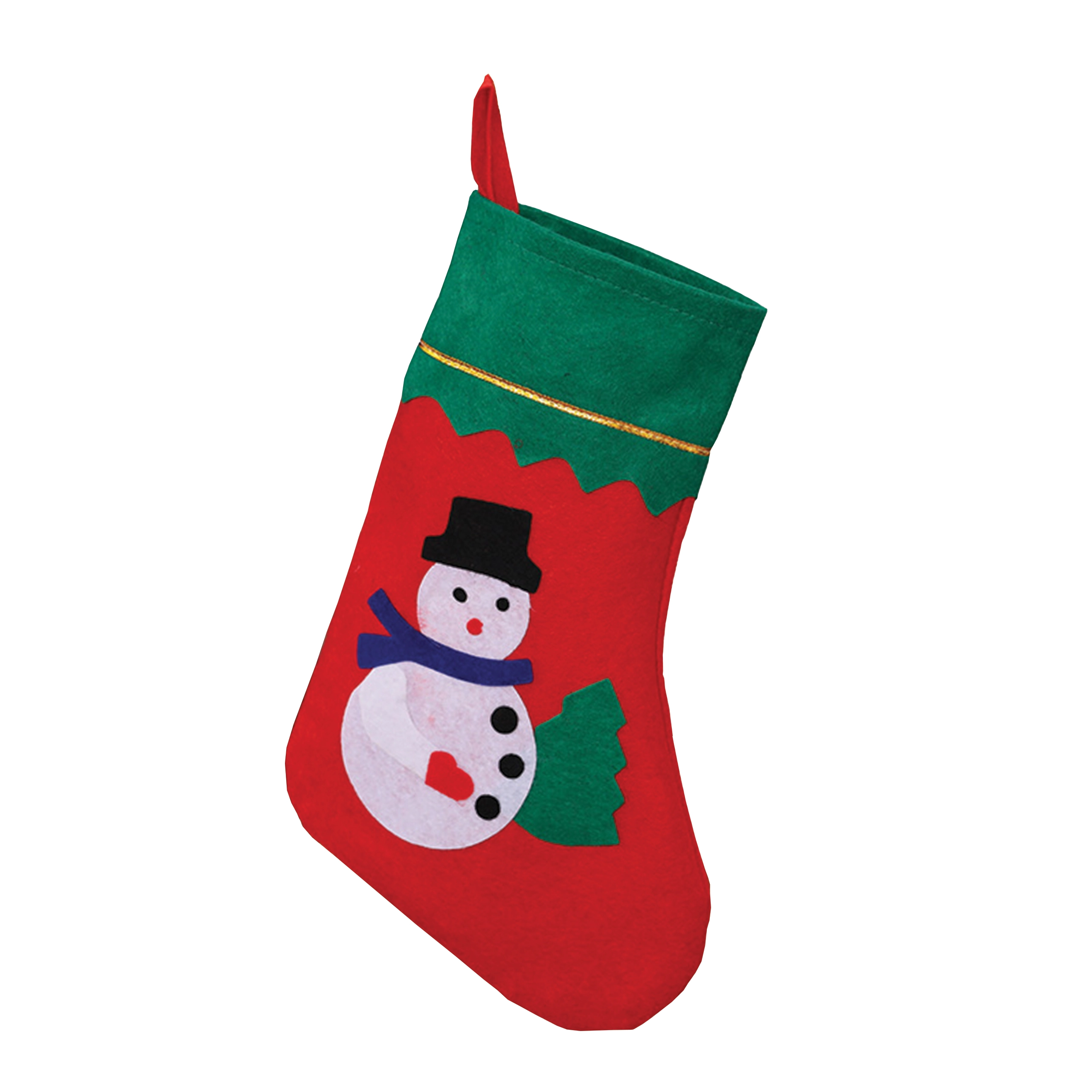 Veselý aplikovaný sněhulák s detaily přidá punčoše osobitost a zvýrazní vánoční náladu u krbu či stromečku.