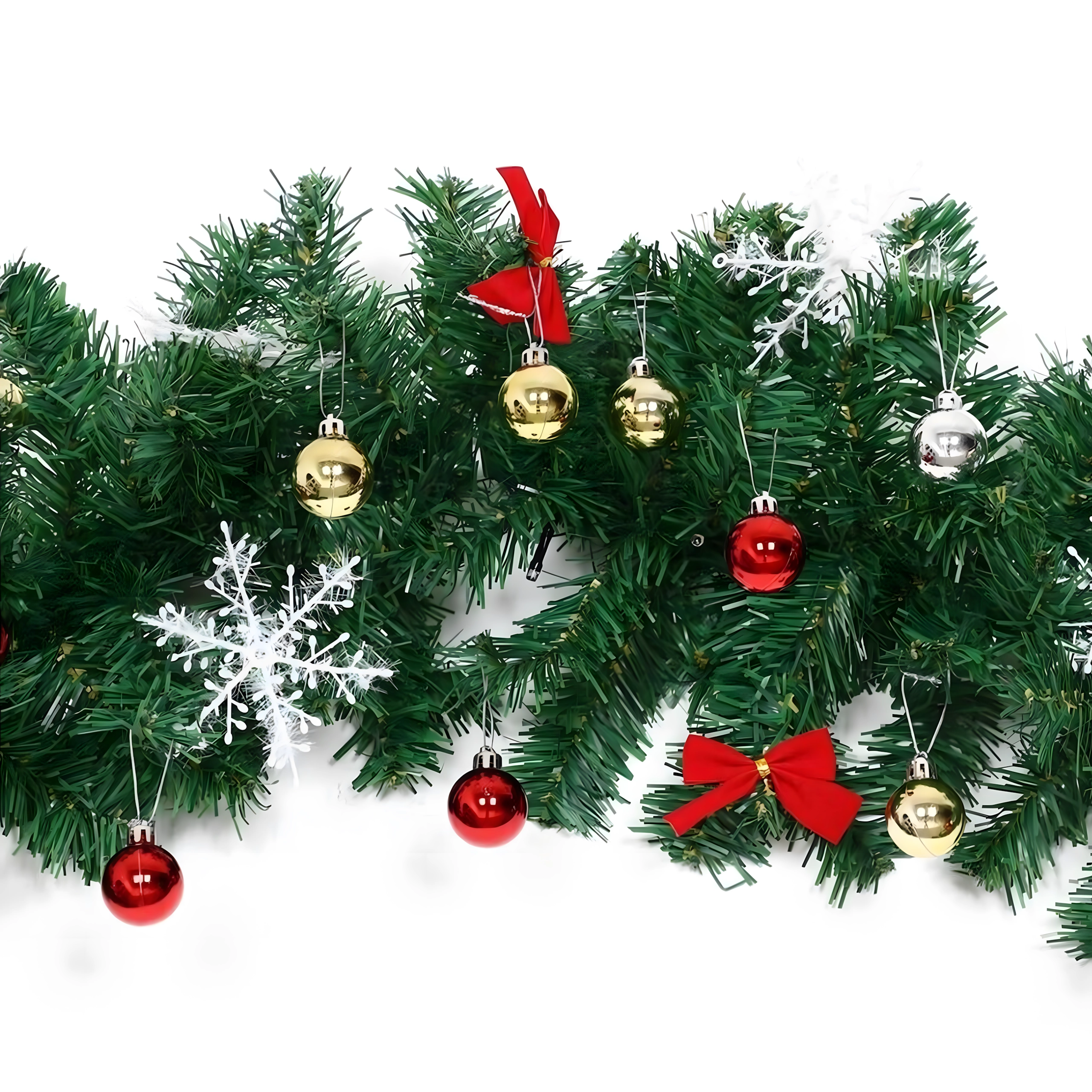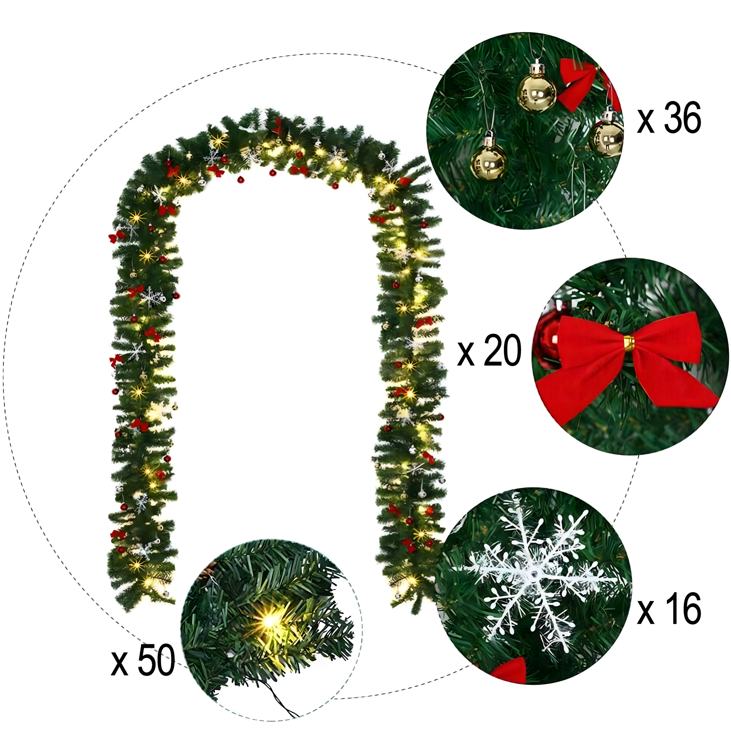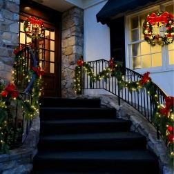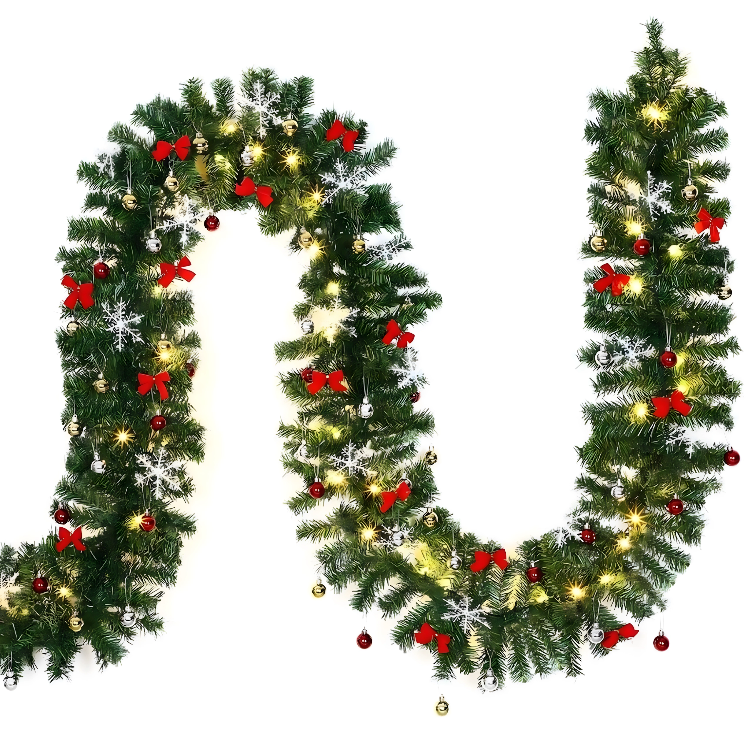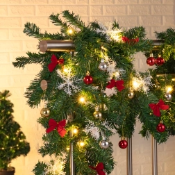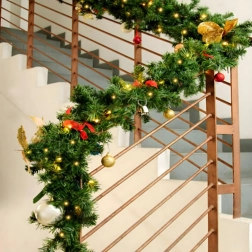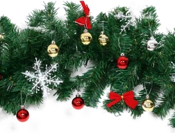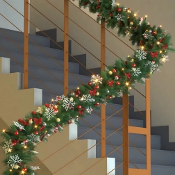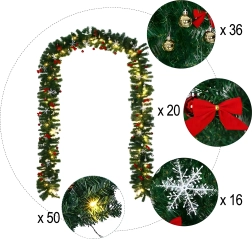 Tato elegantní vánoční girlanda promění každý vstup, zábradlí či krbovou římsu v sváteční dominantní prvek. Integrovaná teplá LED světla dodají příjemné, útulné osvětlení a nadčasové dekorace v podobě baněk, mašlí a sněhových vloček se postarají o slavnostní vzhled bez starostí.
