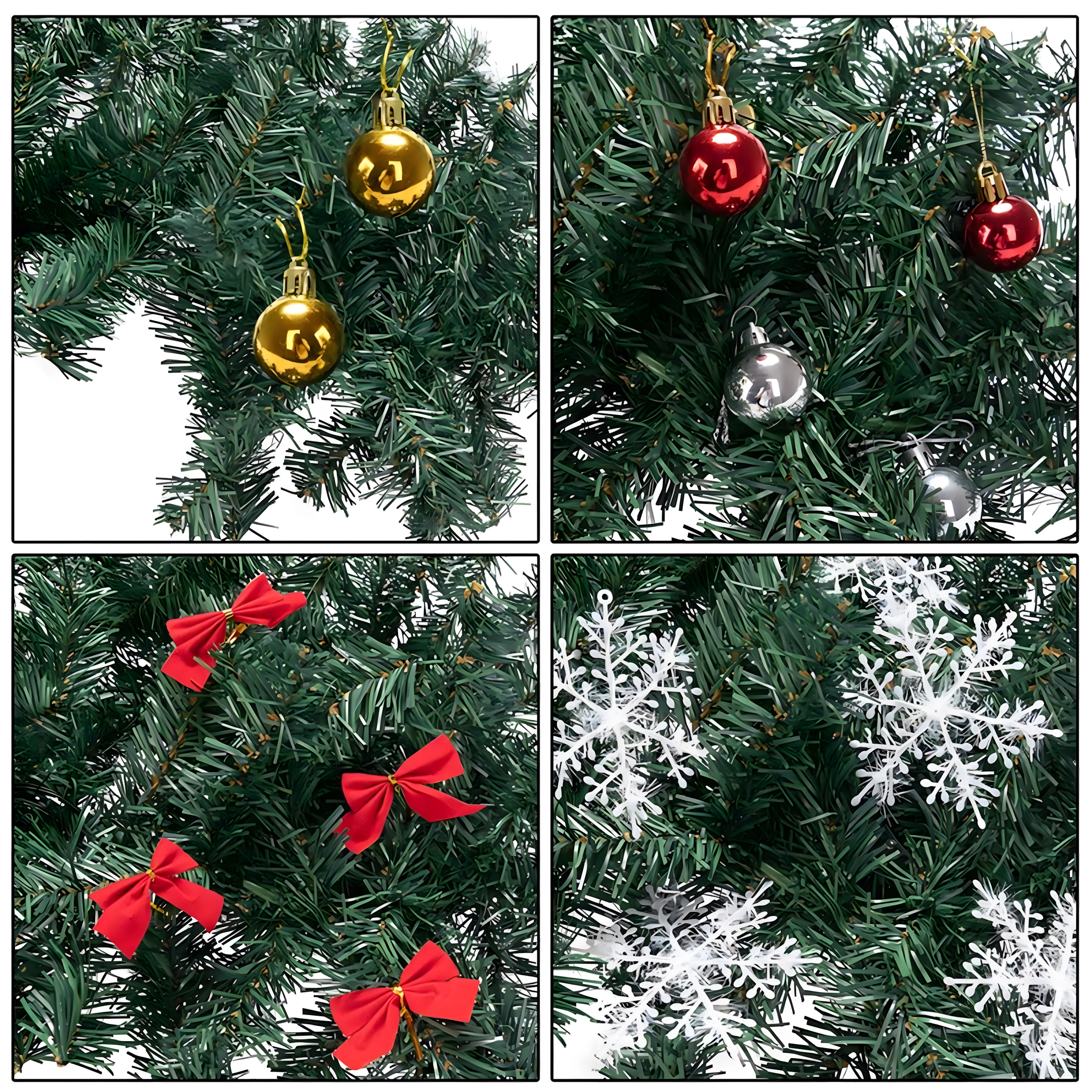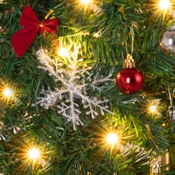 Až 260 větviček s ozdobami – baňky, mašle a sněhové vločky – pro plný a reprezentativní vzhled bez nutnosti dalších doplňků.