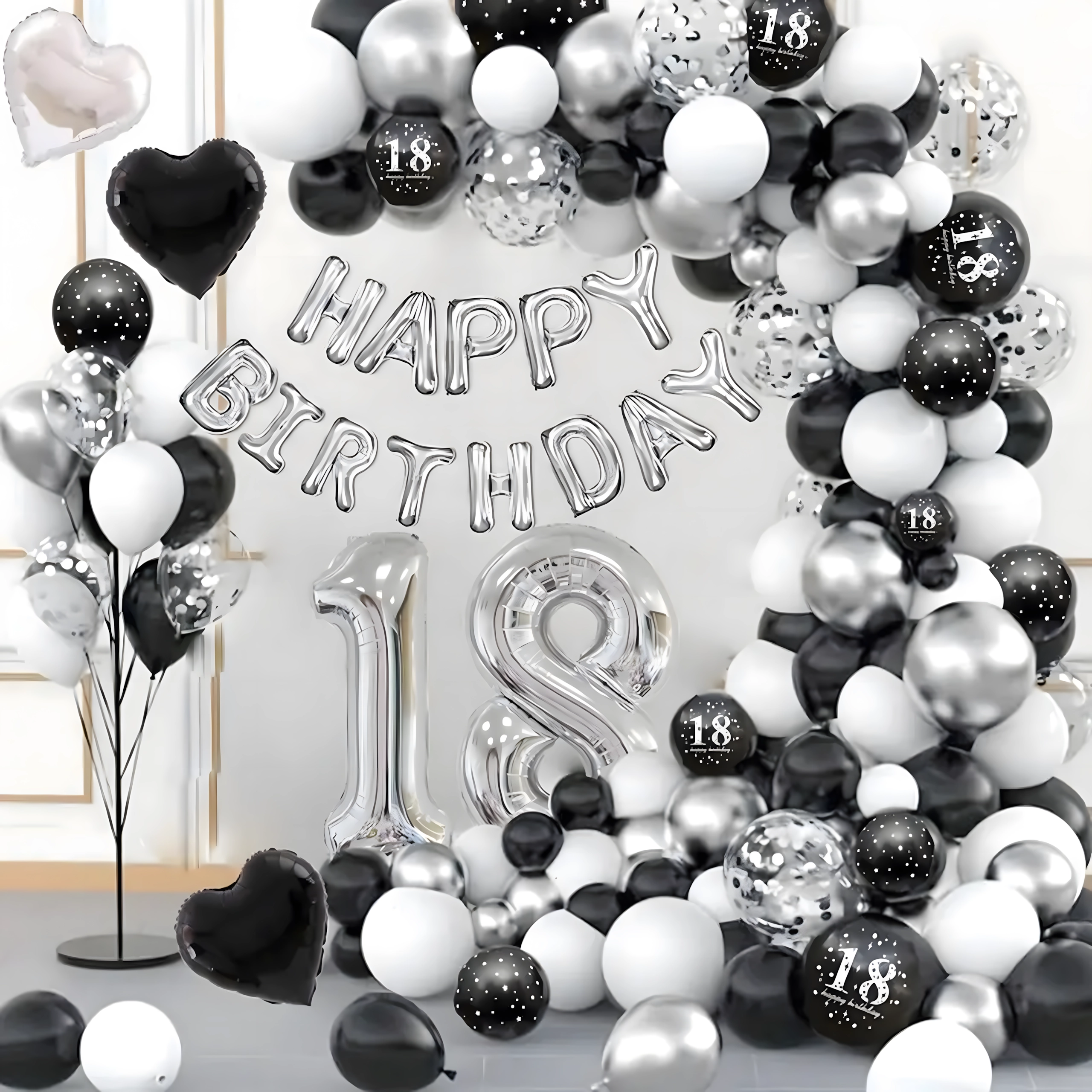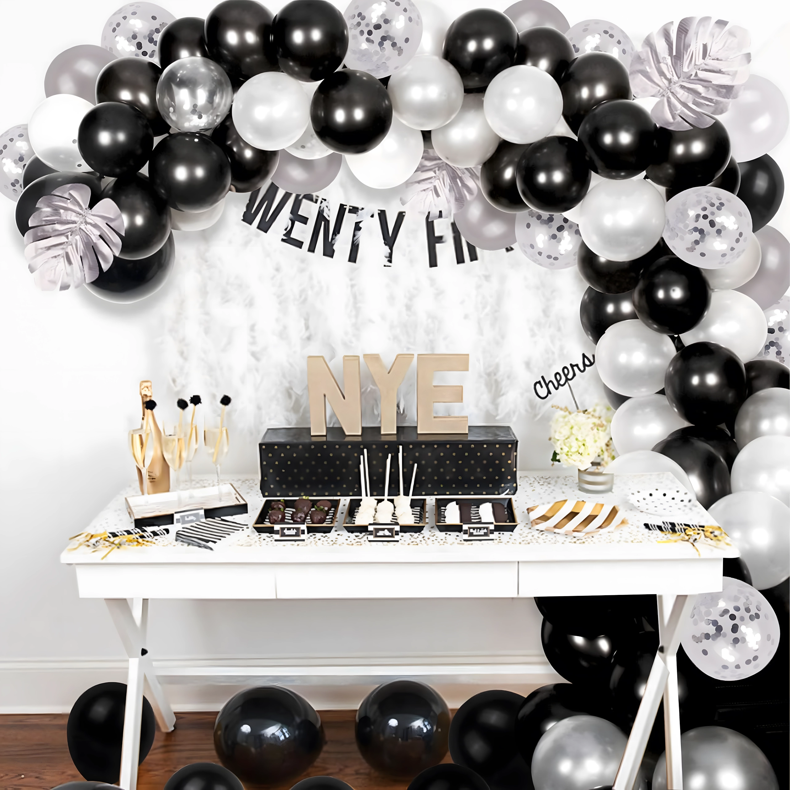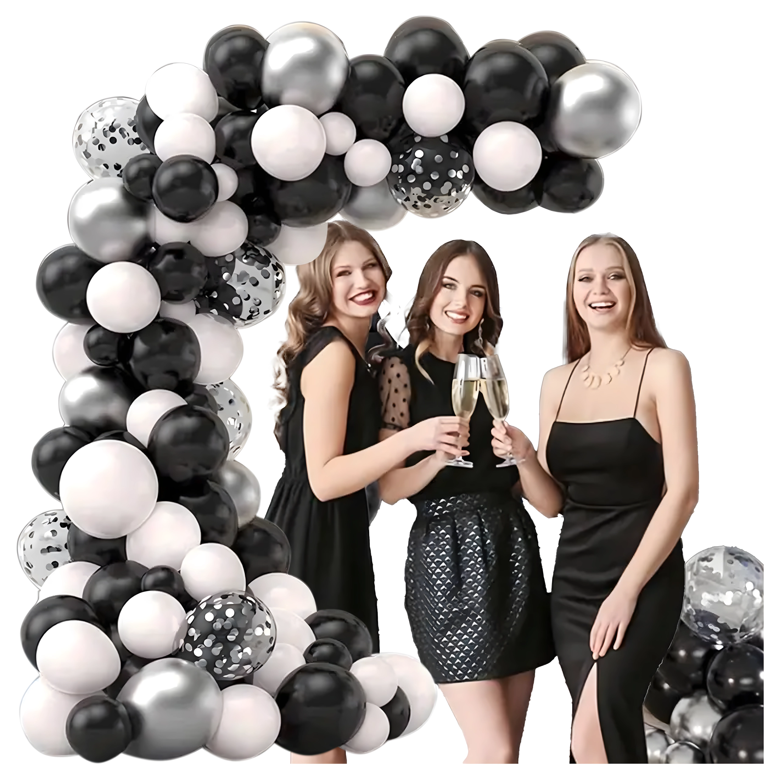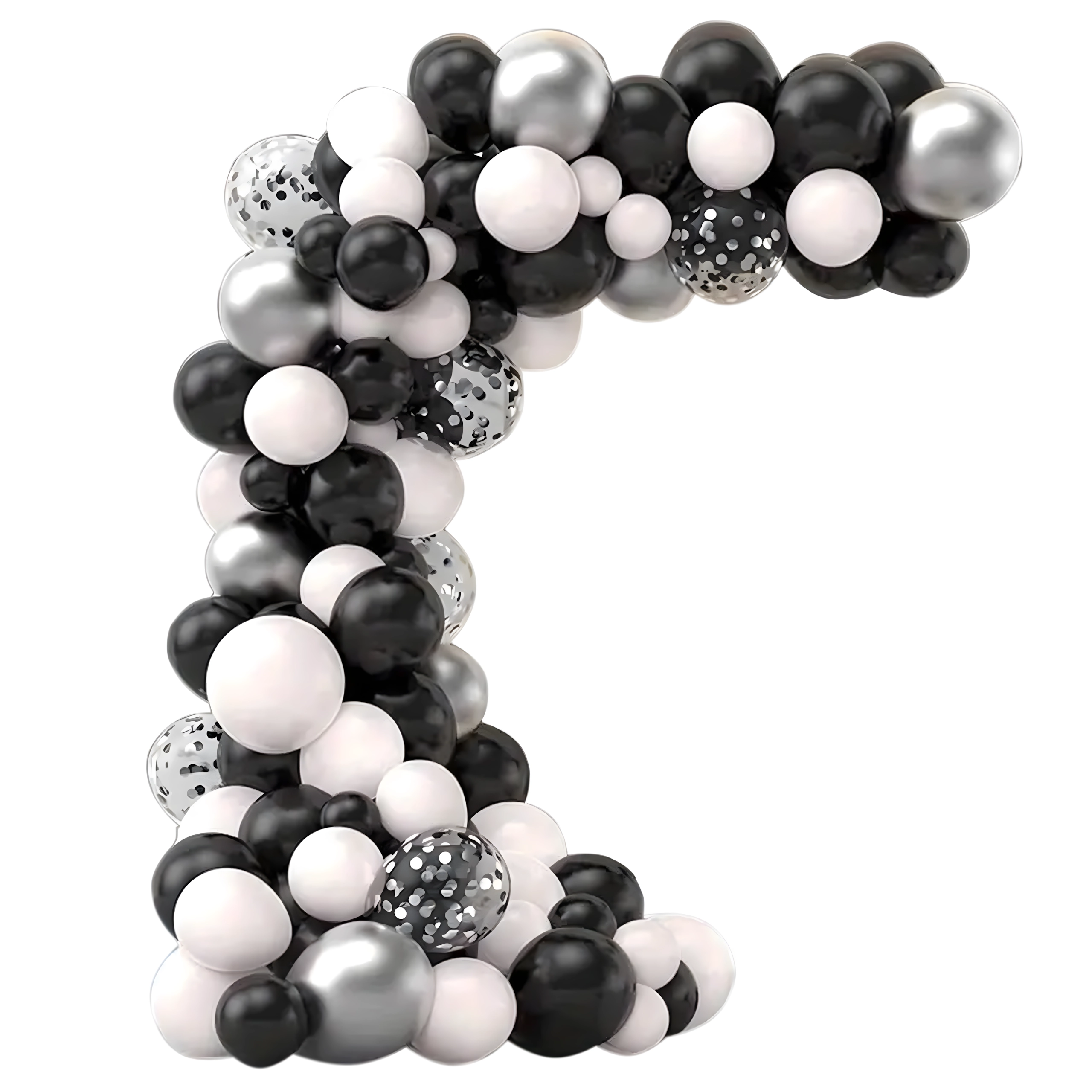 Stylová girlanda z balónků v kombinaci černé, stříbrné a bílé barvy pro narozeniny, svatby, silvestr i eventy. Snadná montáž, efektní barvy a perfektní foto pozadí pro každou oslavu.