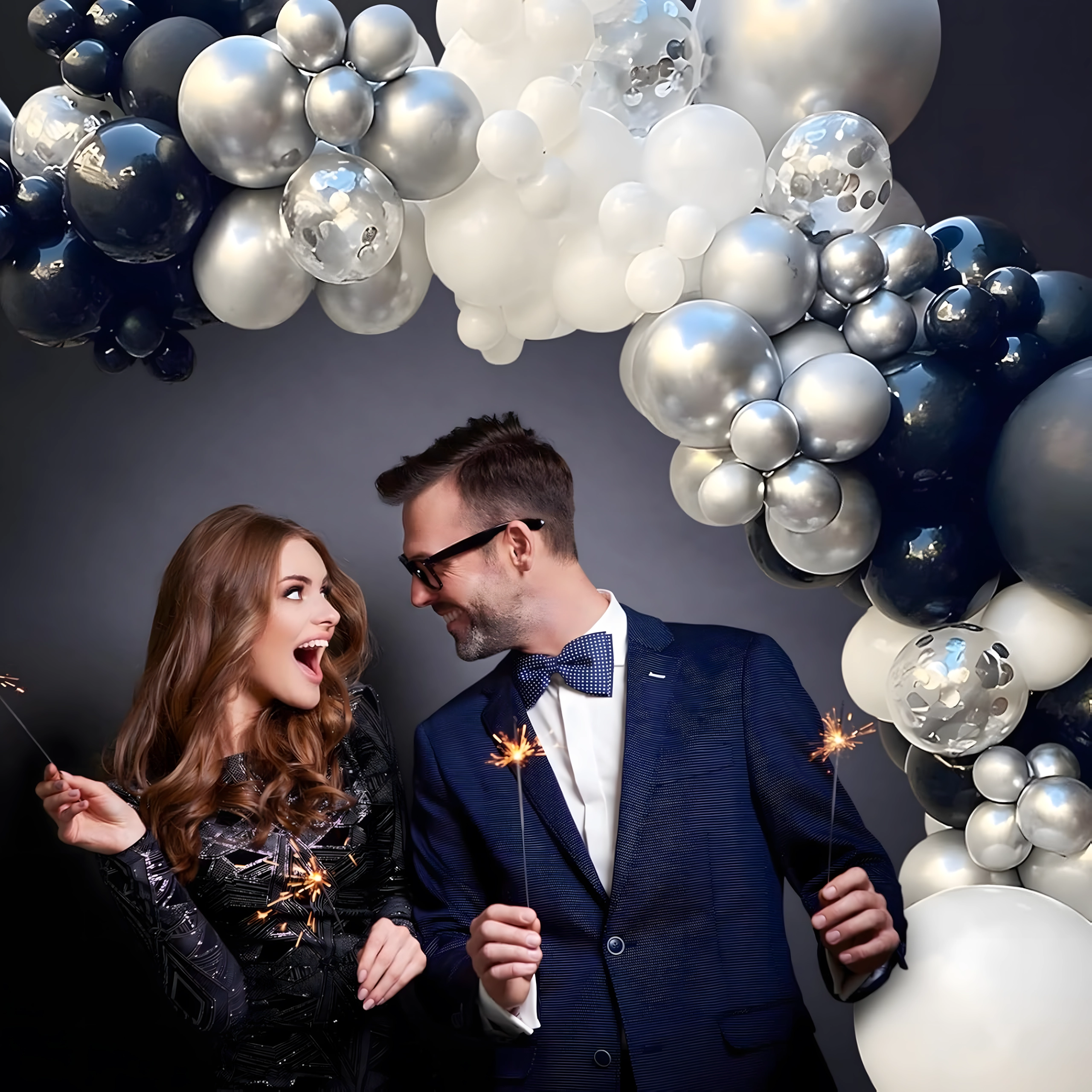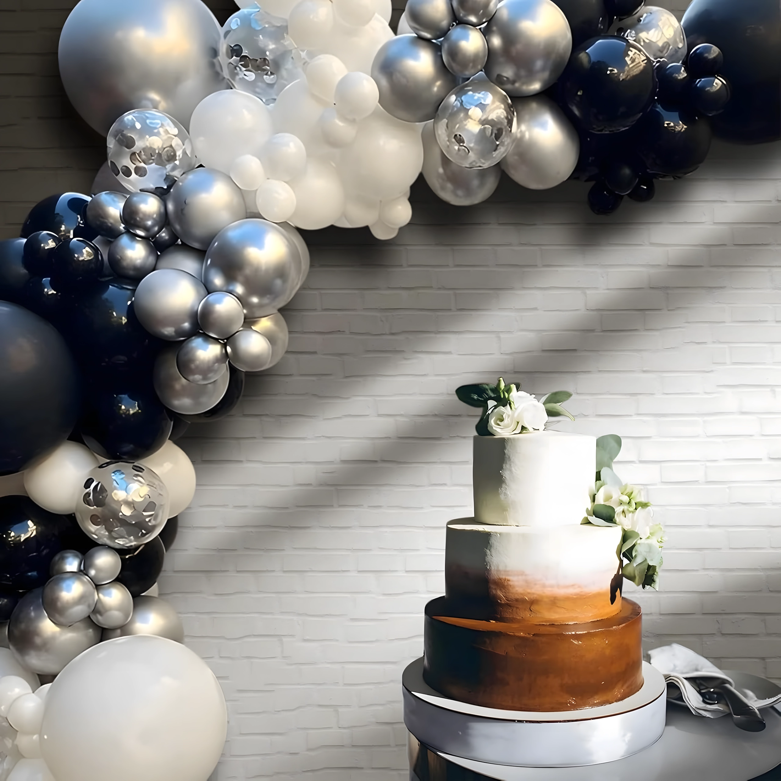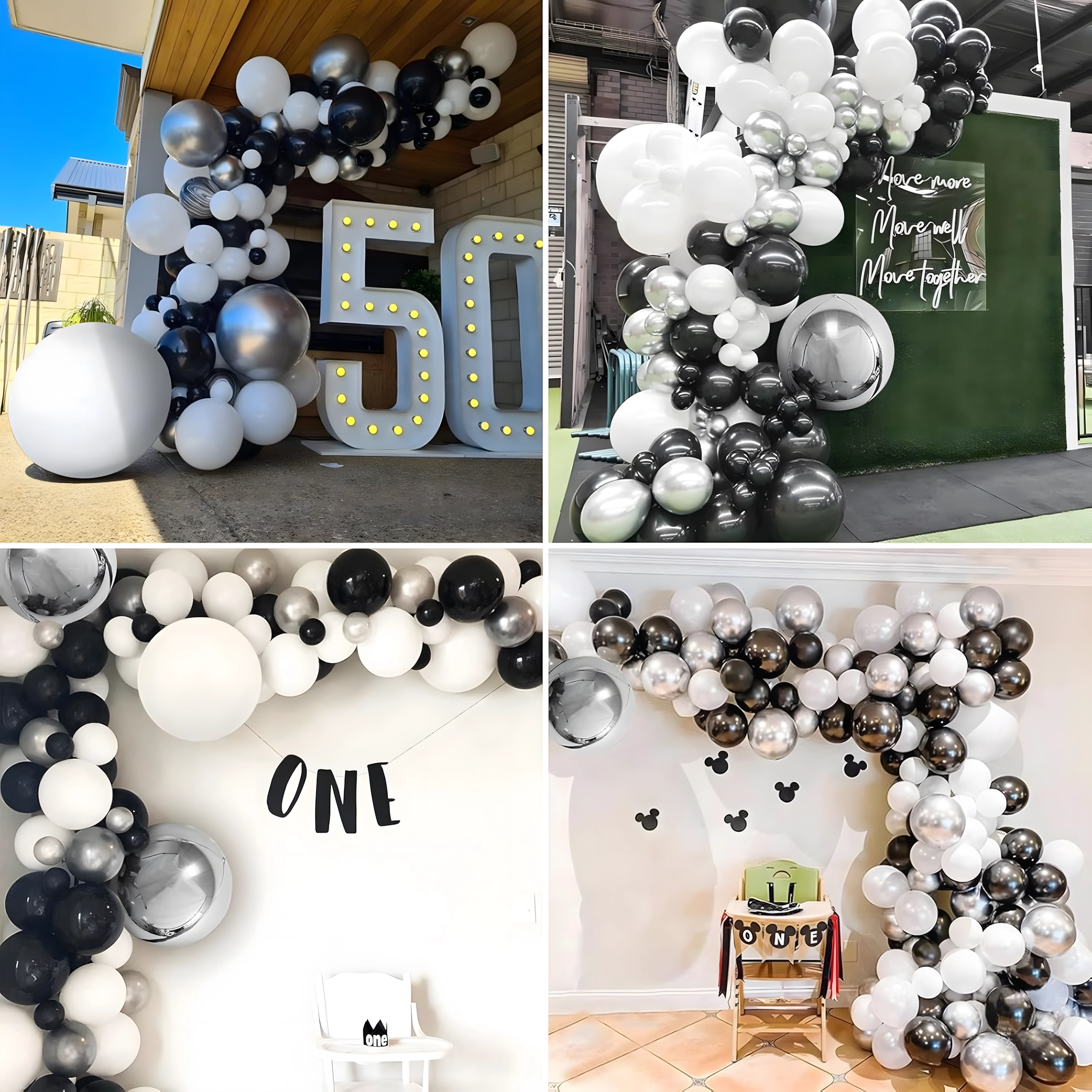 Tato elegantní girlanda z balónků v moderní černo‑stříbrno‑bílé paletě dodá vaší oslavě výjimečný vzhled. Zvládne ji sestavit i začátečník a výsledkem bude výrazná dekorace, která se skvěle hodí jako vstupní oblouk, pozadí za sladký bar nebo fotokoutek.
