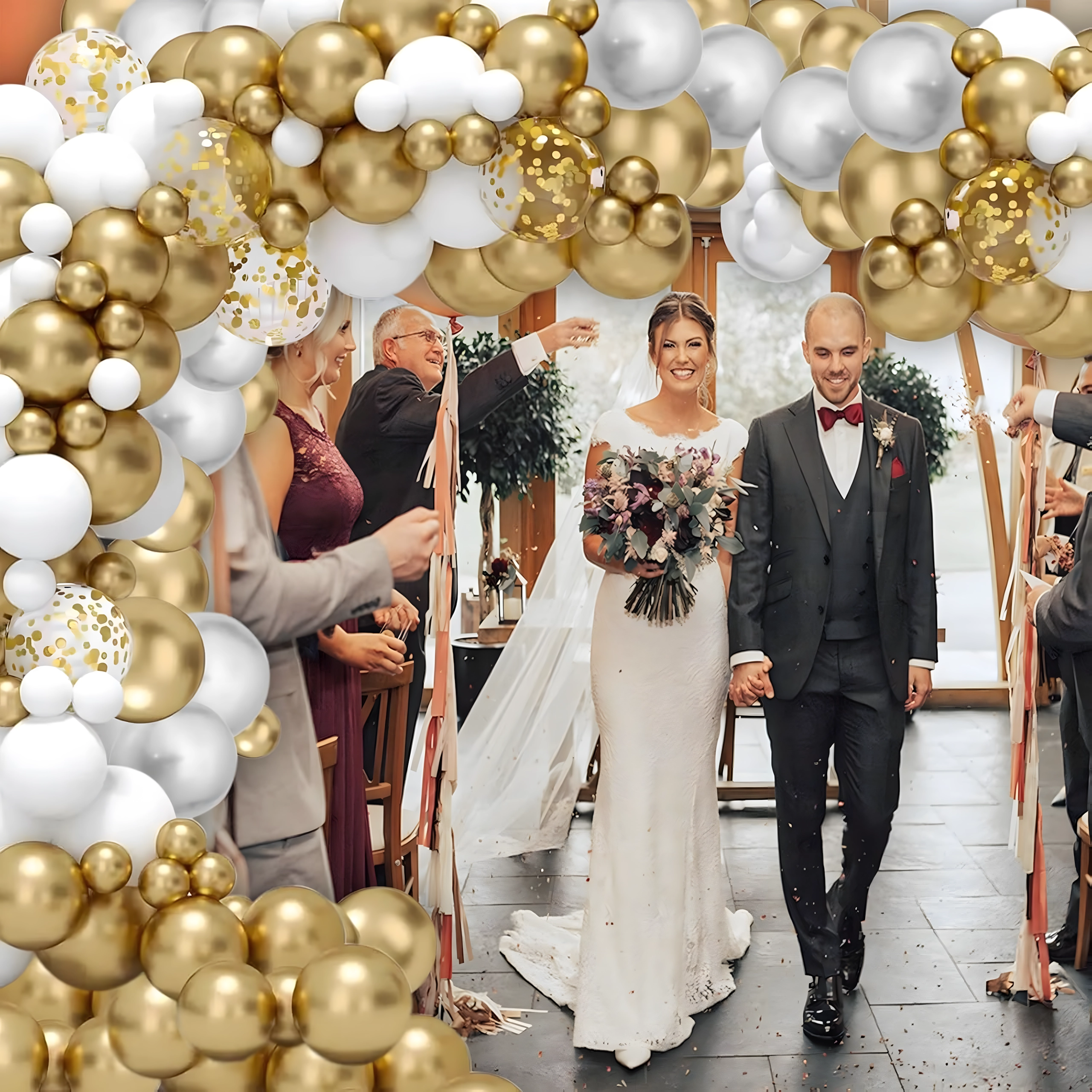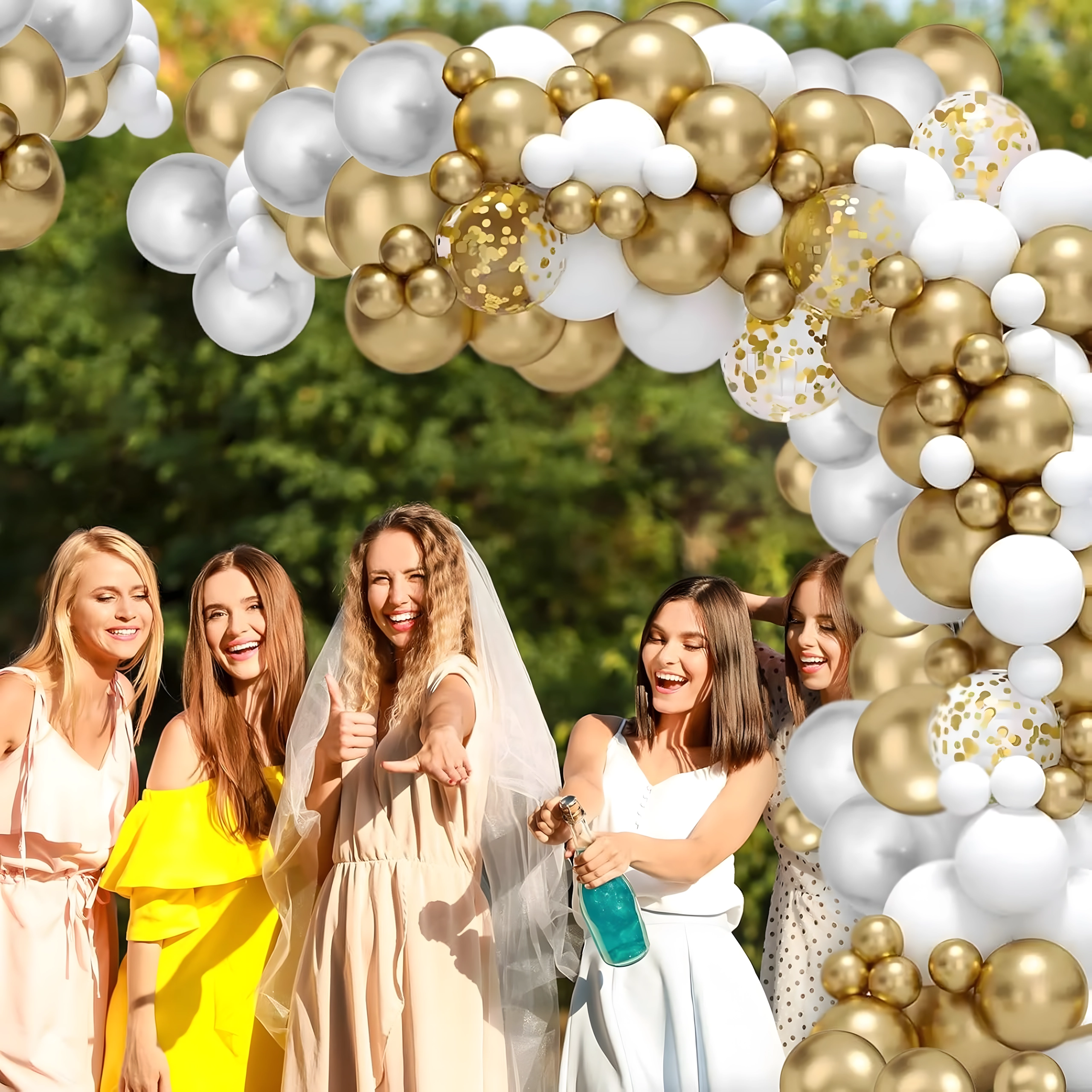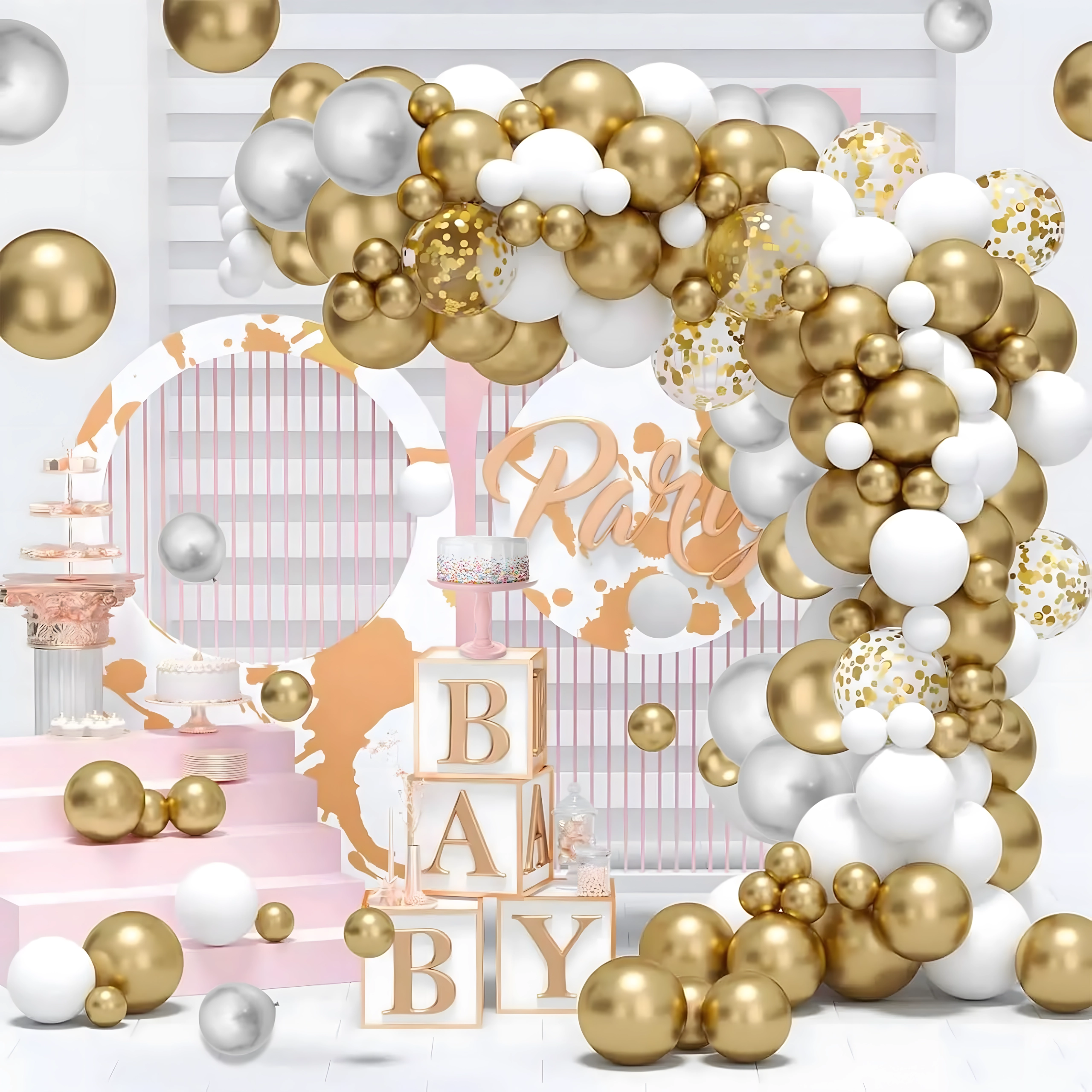 Vytvořte působivou výzdobu s touto bílo‑zlatou balónkovou girlandou o 110 dílech. Ideální na narozeniny, svatby, silvestr i firemní eventy. Snadná montáž, efektní kombinace barev a dokonalé fotografické pozadí pro každou oslavu.