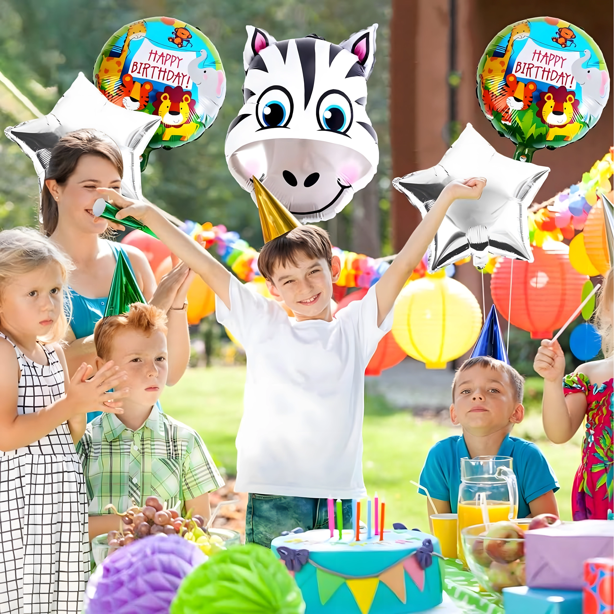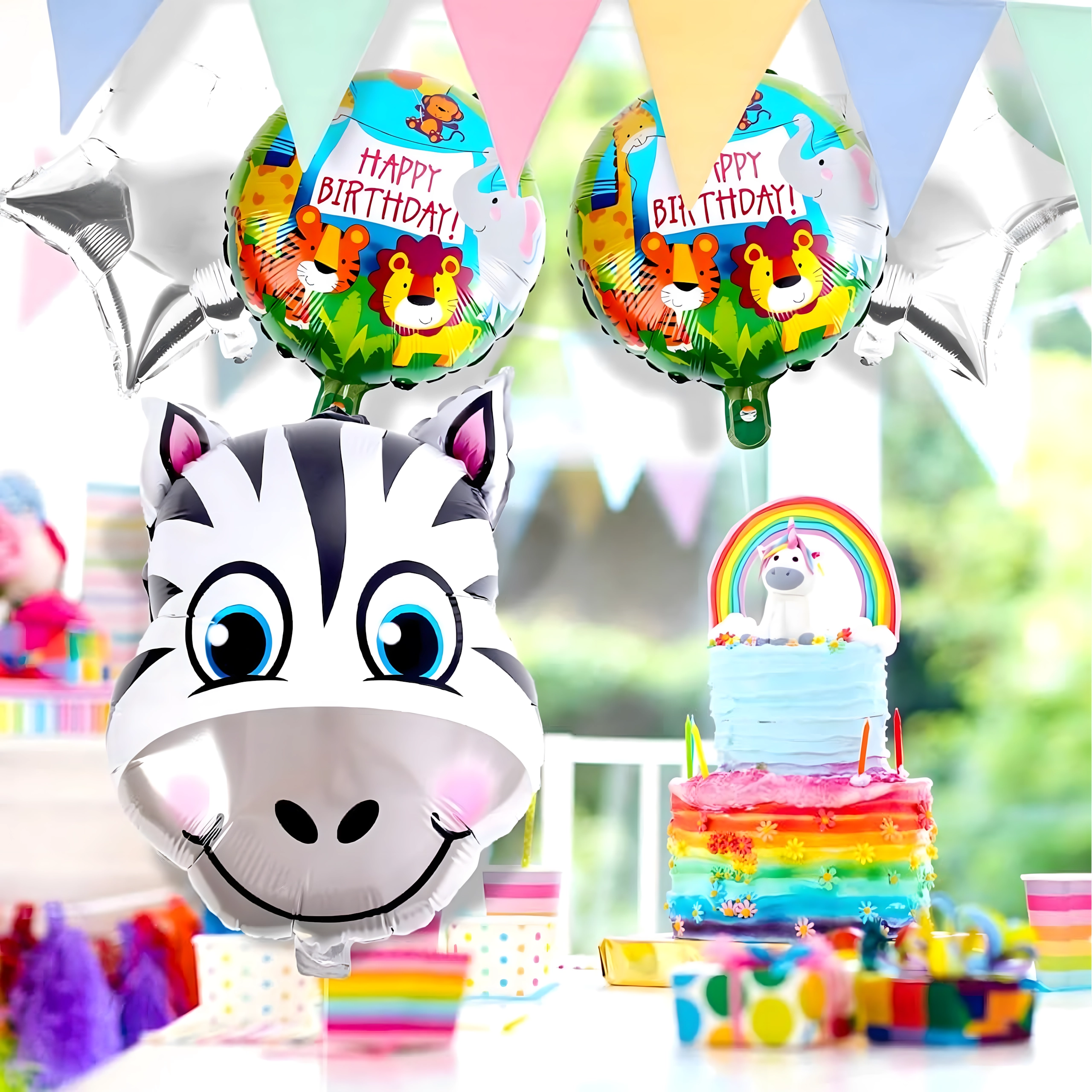 Tip: Slaďte balónky s další výzdobou ve zvířecím stylu a vytvořte nezapomenutelnou narozeninovou scénu.