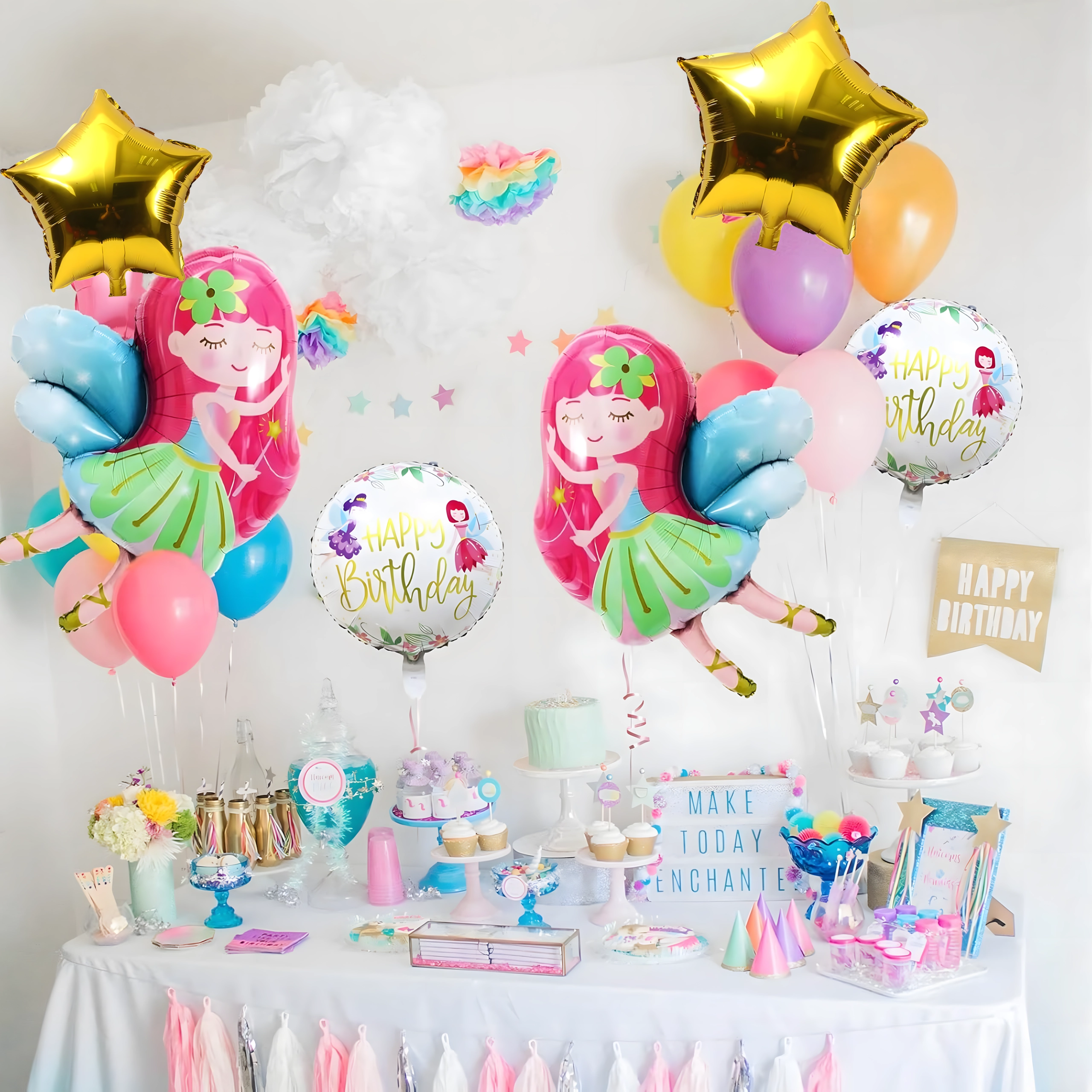 Kouzelné balonky s motivem víly rozzáří každou oslavu! Sada obsahuje velký fóliový balonek víla (69,8 cm), 2 kulaté balonky s potiskem a 2 hvězdy (45,7 cm). Ideální dekorace pro dívčí narozeniny a pohádkové party.