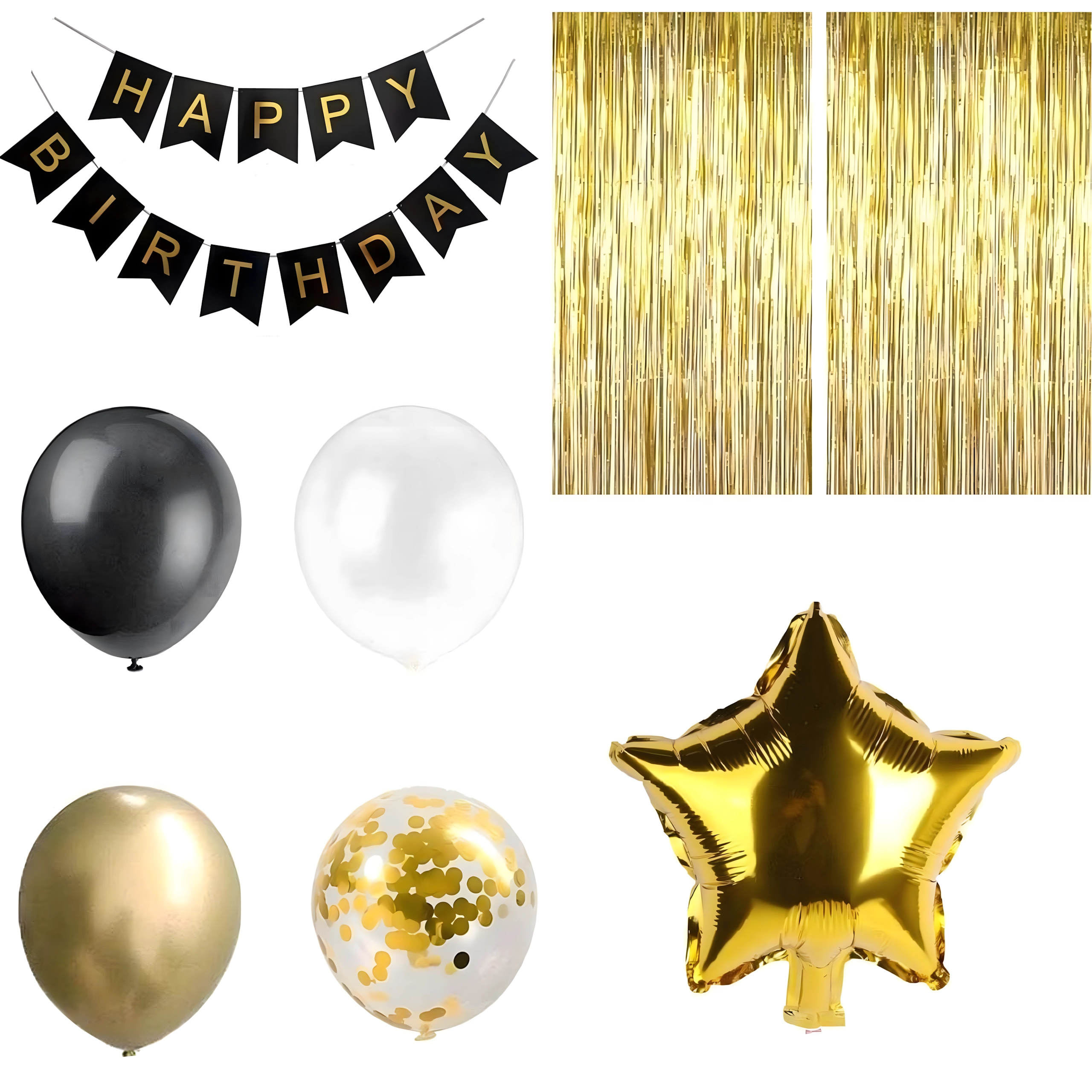 Tato černo‑zlatá dekorativní sada dodá vaší oslavě 30. narozenin luxusní vzhled a sjednocený styl. Kombinace černé a zlaté barvy je nadčasová, skvěle vynikne na fotografiích a snadno se kombinuje s ostatní výzdobou.