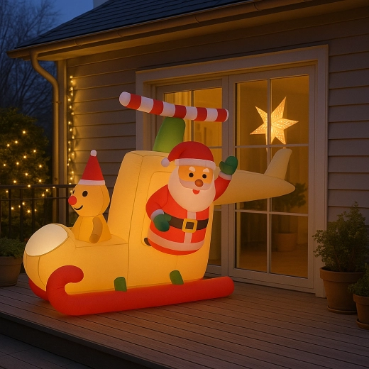 Nafukovací Santa v saních o výšce 160 cm vnese do vaší zahrady kouzelnou atmosféru Vánoc. Díky vestavěným LED diodám září příjemným teplým světlem a automatické nafukování zajistí rychlou a snadnou instalaci. Odolný a voděodolný materiál slibuje dlouhou životnost a radost po mnoho sezón.