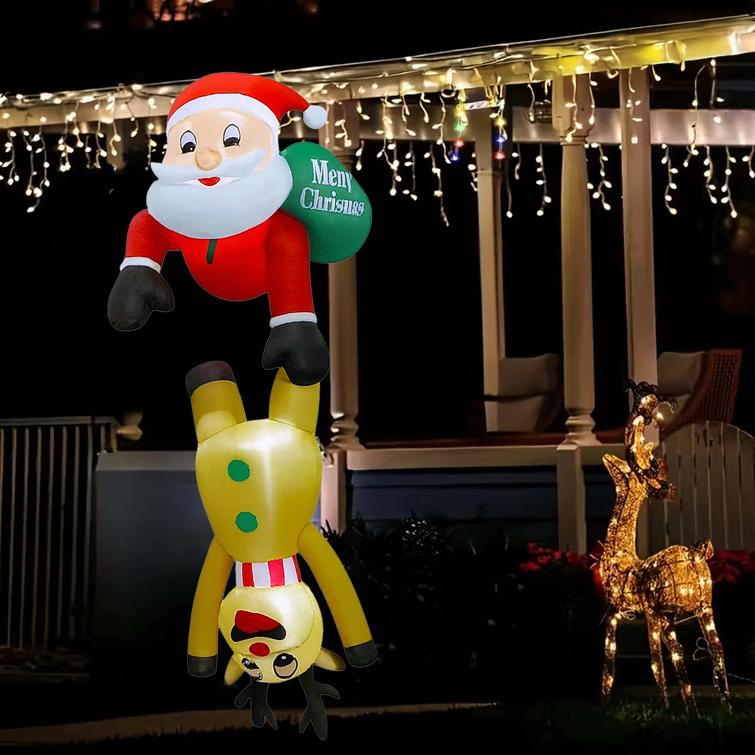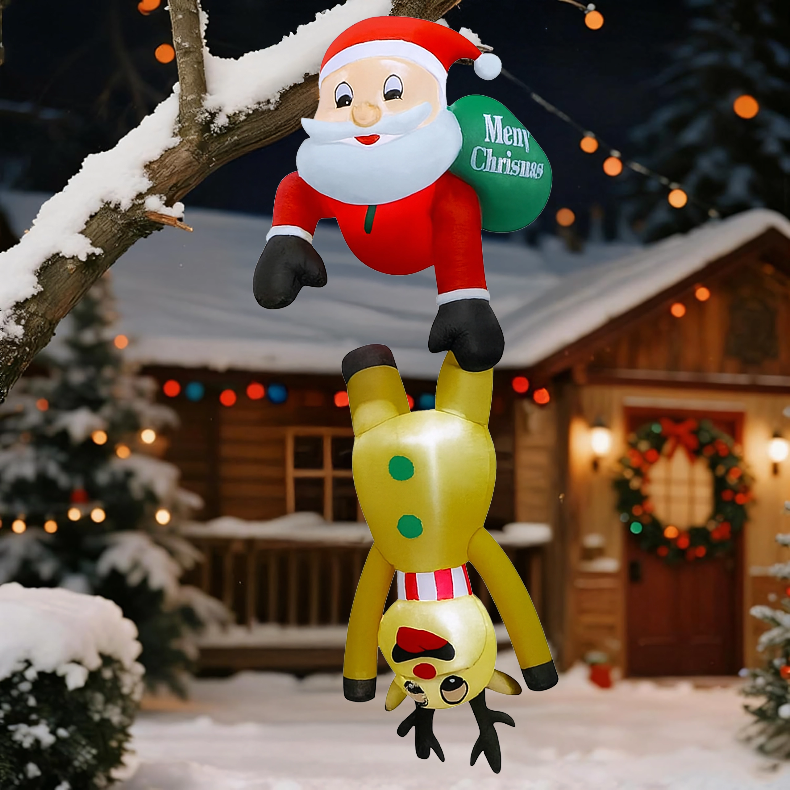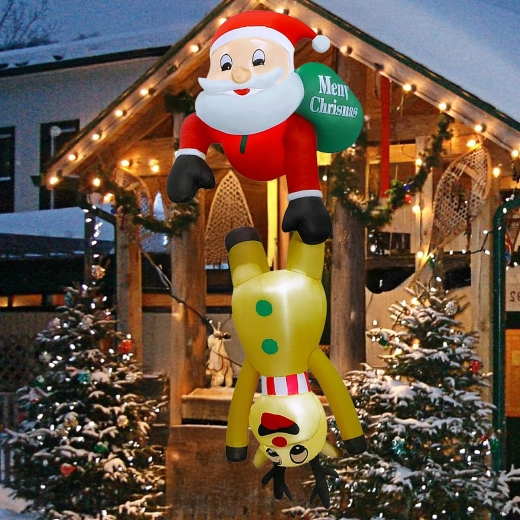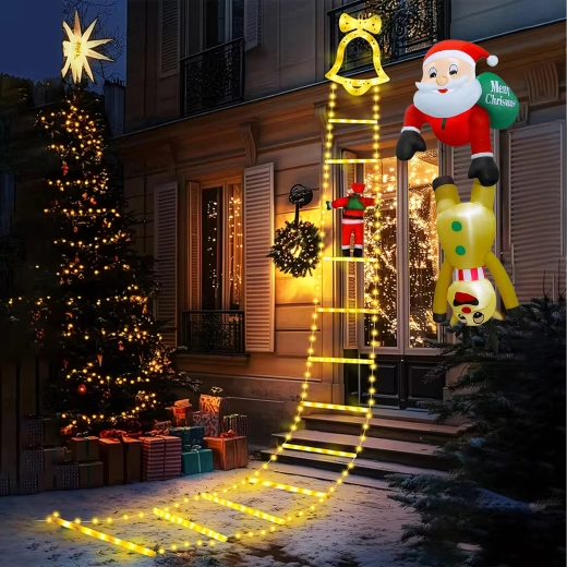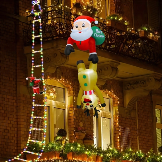 Tato originální vánoční dekorace přitahuje pozornost svým nápaditým motivem Mikuláše „visícího“ ze soba a vytváří příjemnou, sváteční atmosféru. LED osvětlení zajišťuje efektní vzhled i v tmavých zimních večerech, zatímco pevný polyester odolá rozmarům počasí.