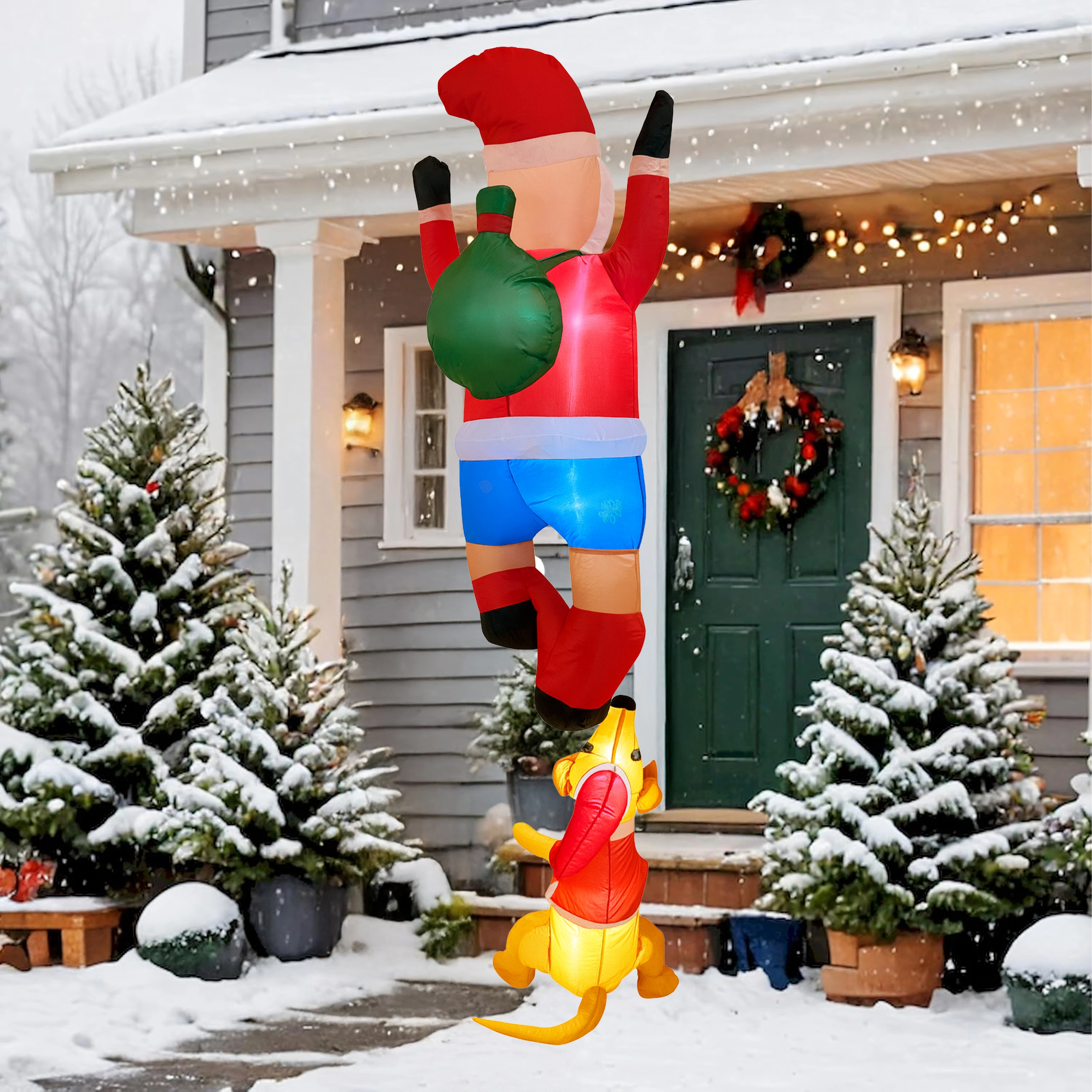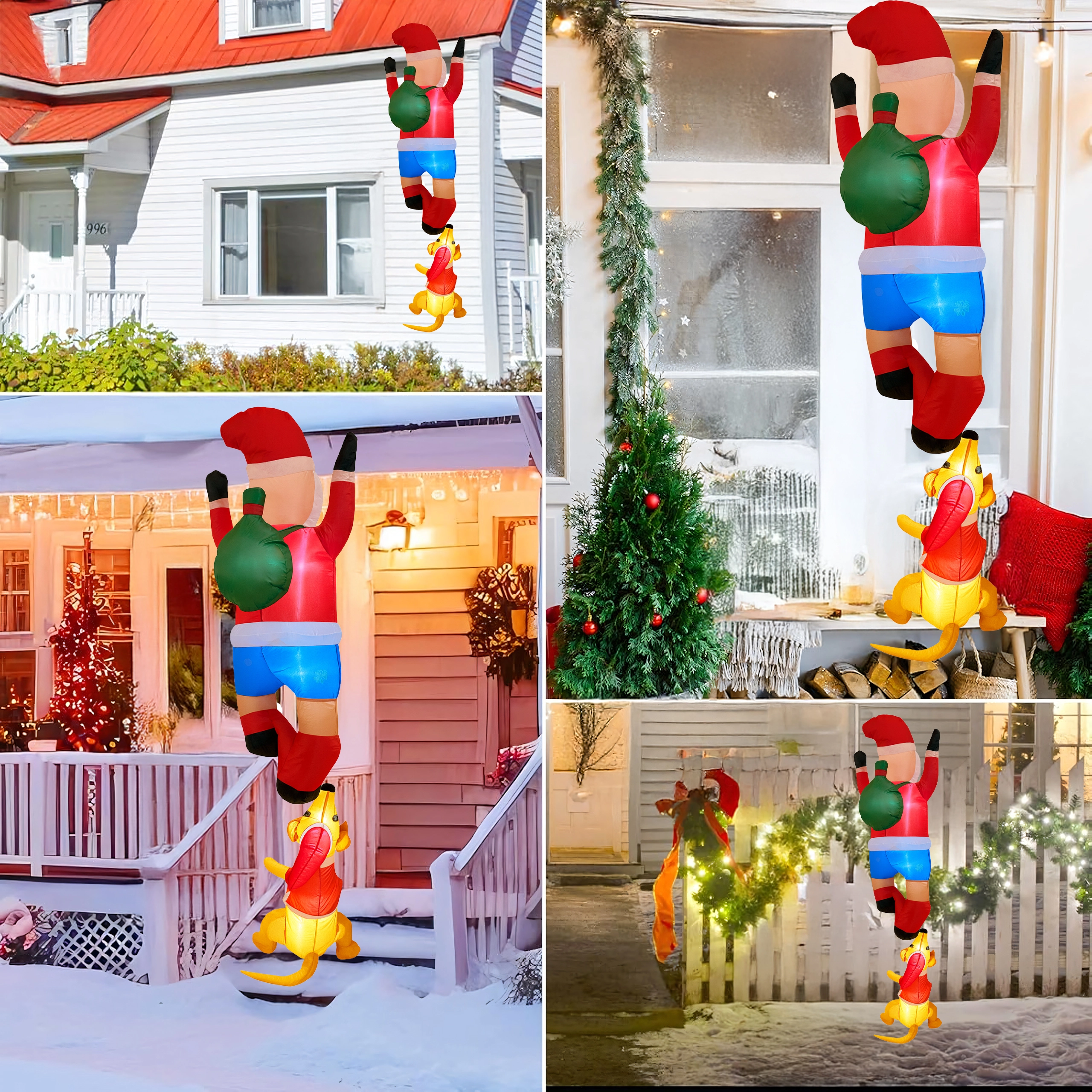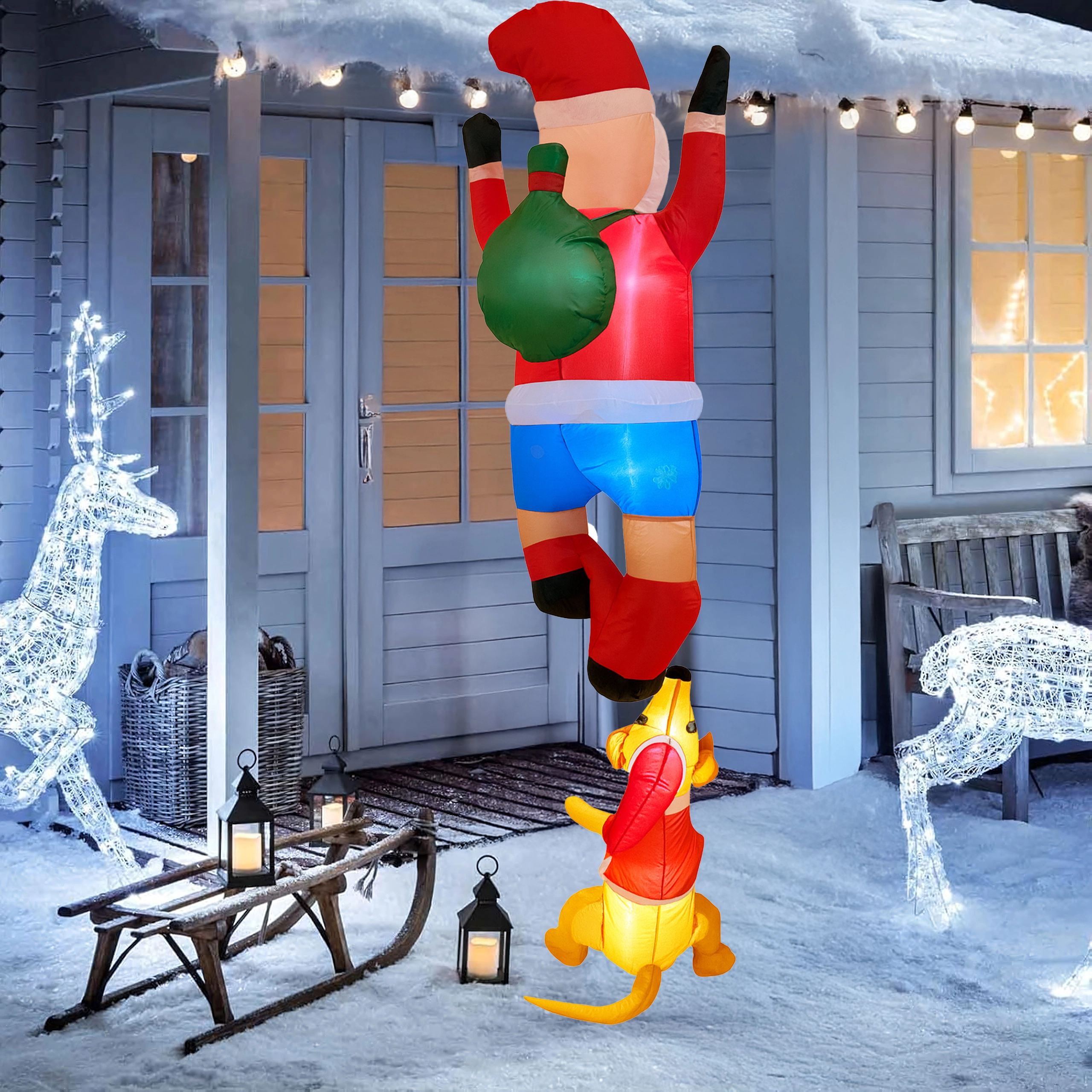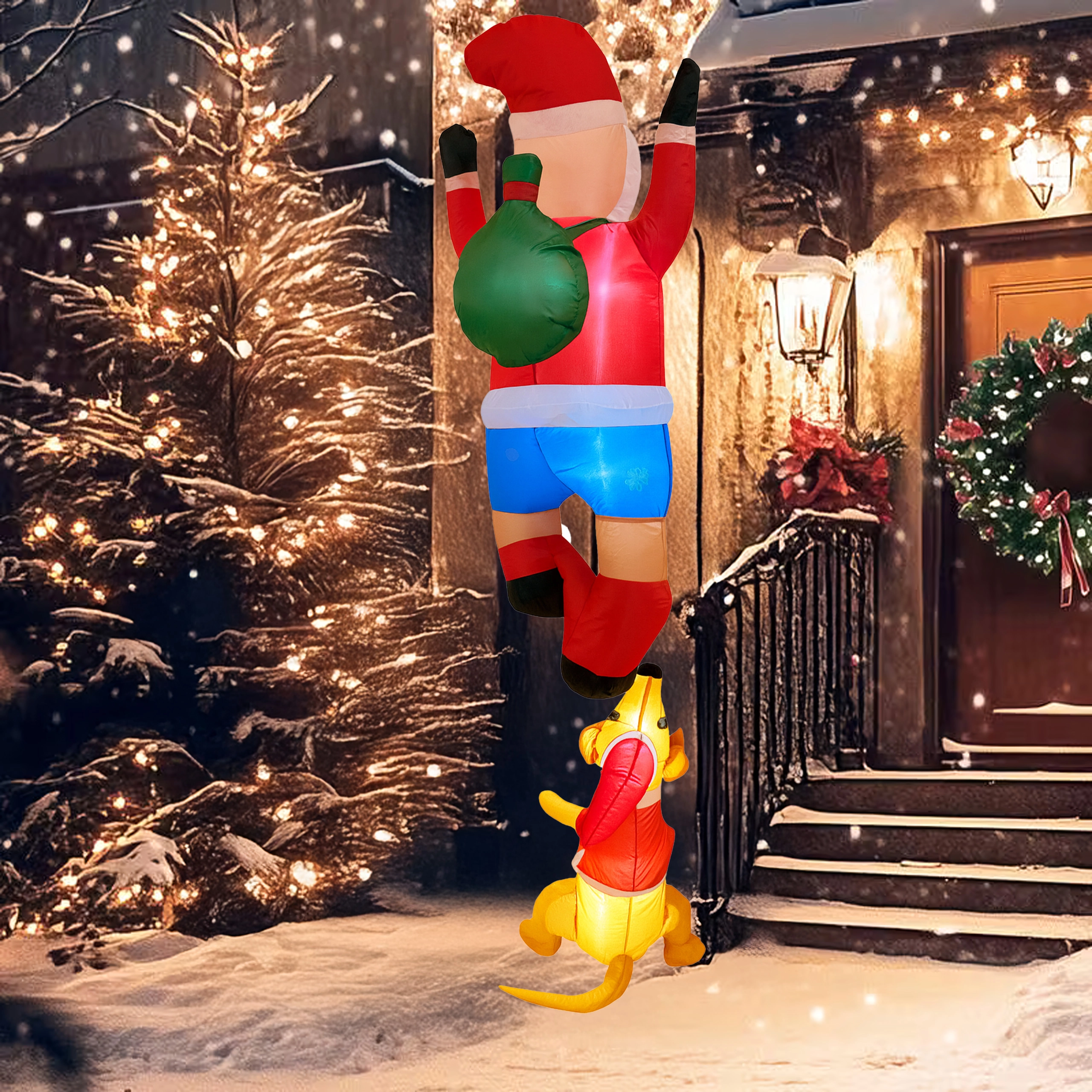 Nafukovací Santa s sobem 1,8 m je originální a zábavná vánoční dekorace, která vytvoří kouzelnou atmosféru doma i na zahradě. Díky integrovanému LED podsvícení a nápaditému designu přitahuje pozornost a vykouzlí úsměv dětem i dospělým. Je vyrobena z odolné polyesterové tkaniny vhodné pro použití v interiéru i exteriéru.