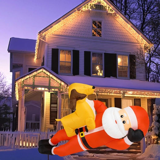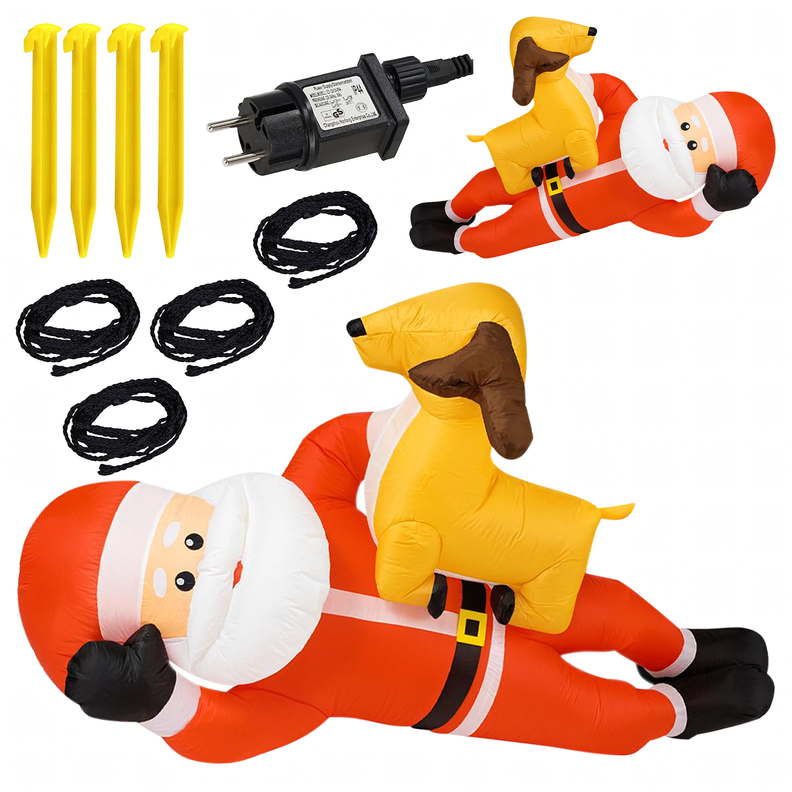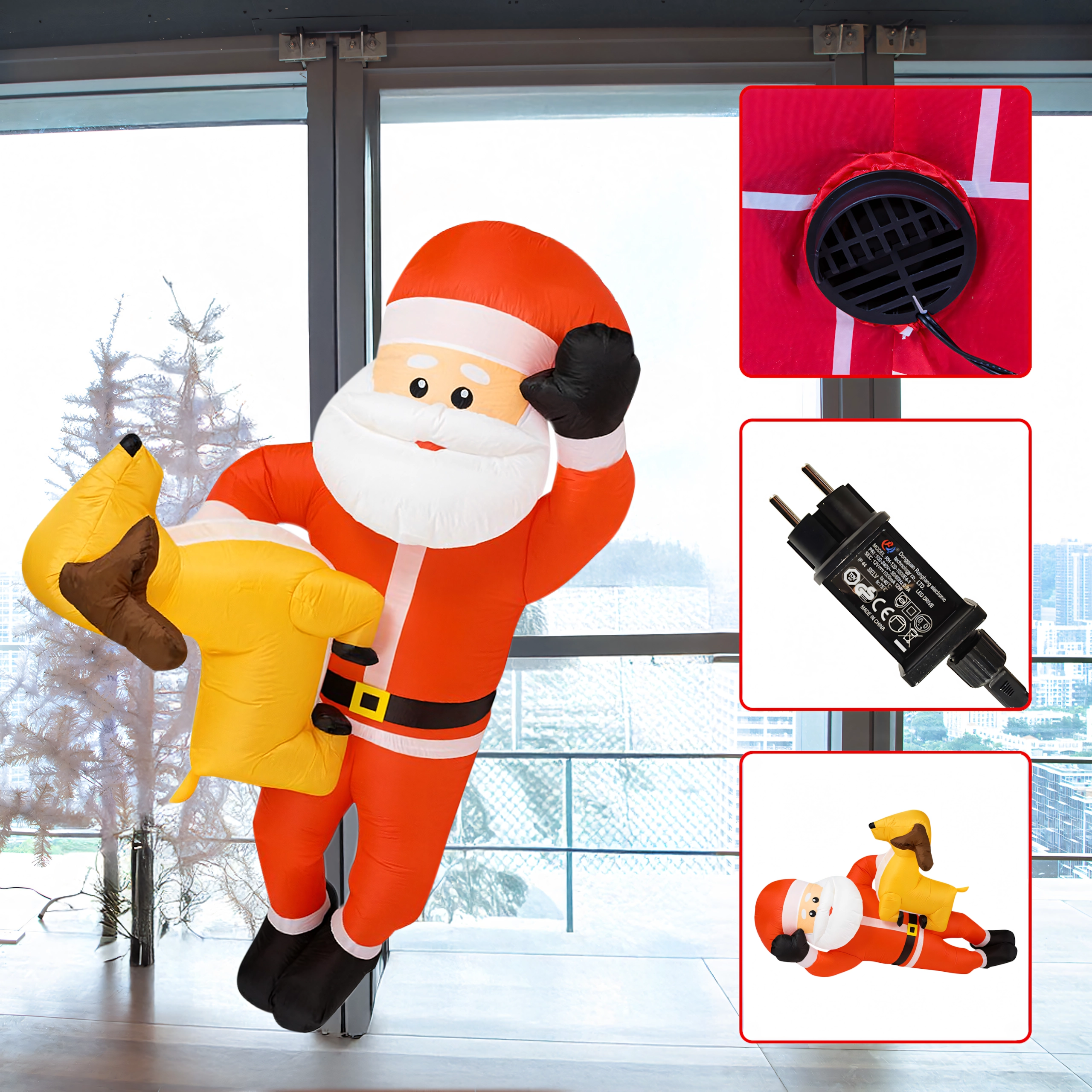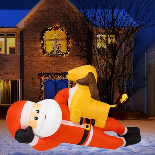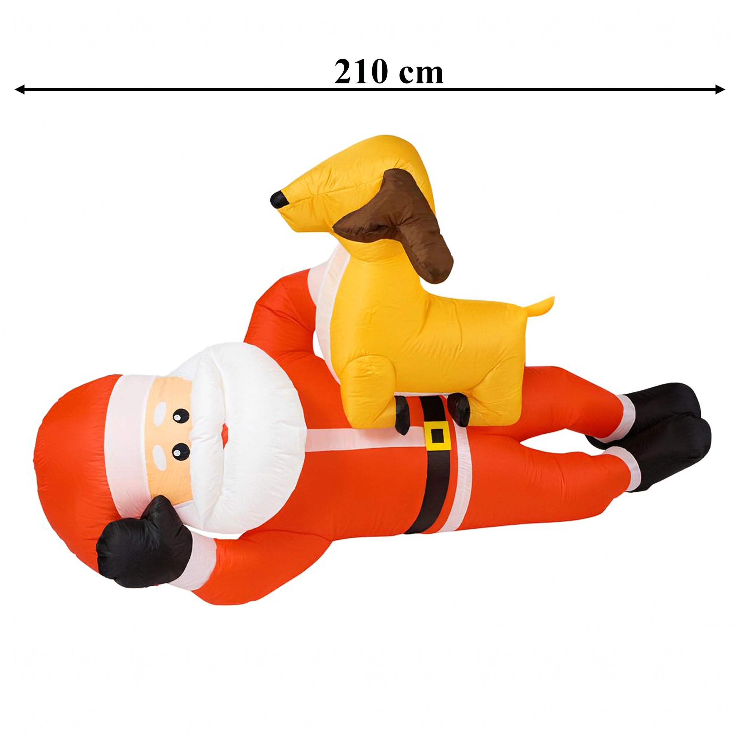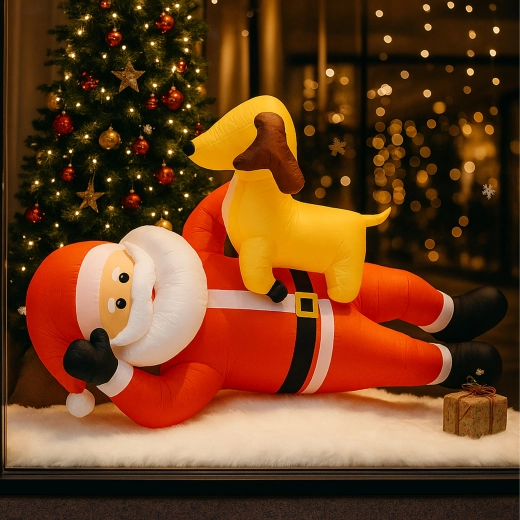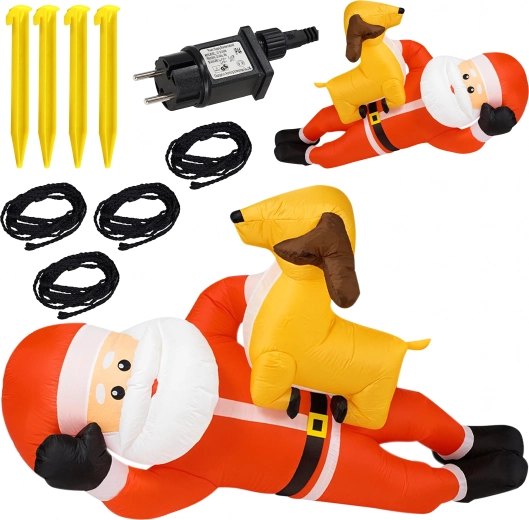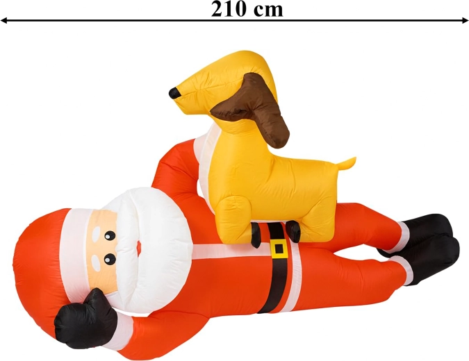 Nafukovací vánoční dekorace v podobě SANTY se sobem ve výšce 2,1 m okamžitě přidá vašemu domovu sváteční kouzlo. Vestavěné LED diody zajišťují působivé osvětlení po setmění a automatická dmuchava zajistí rychlé a pohodlné nafouknutí bez námahy.