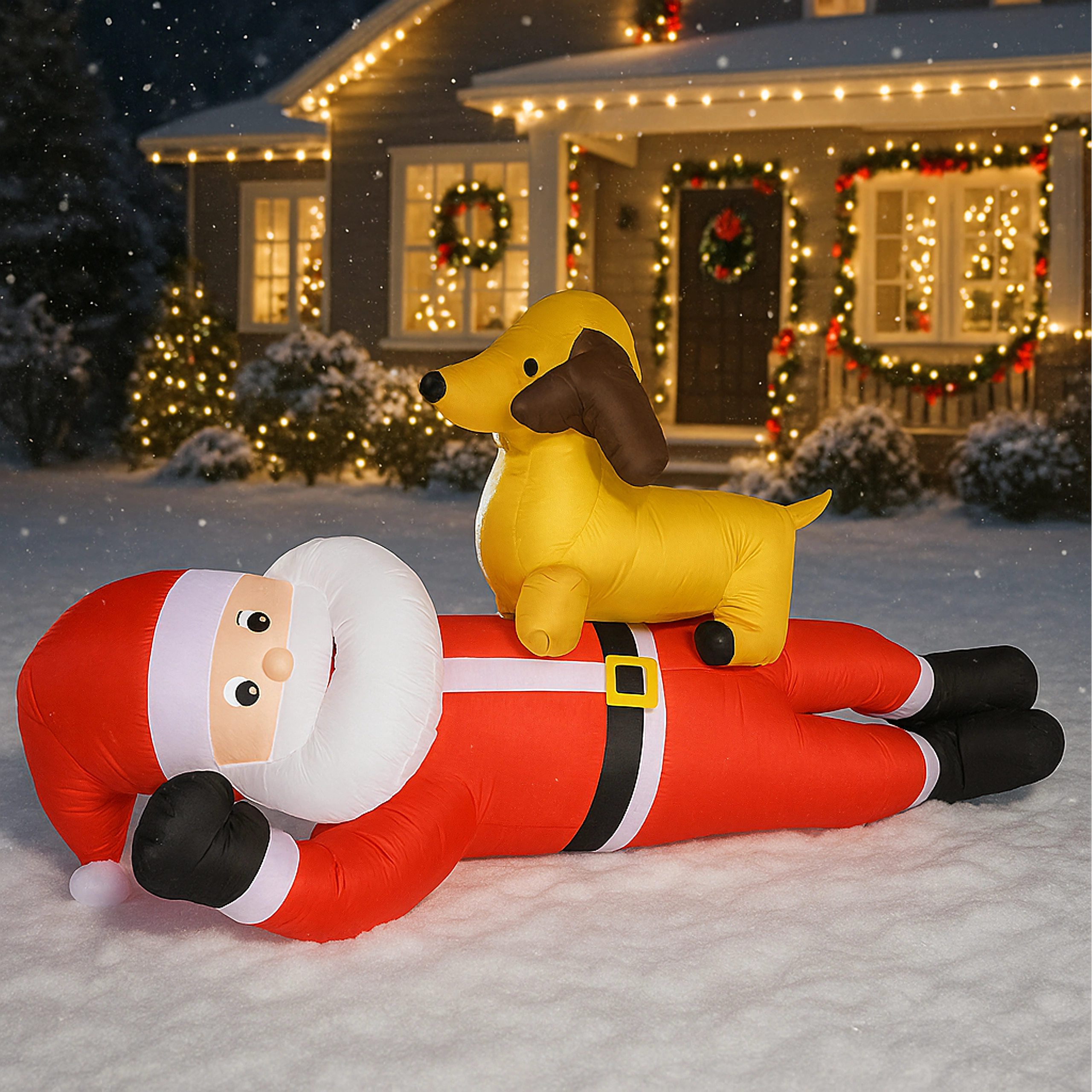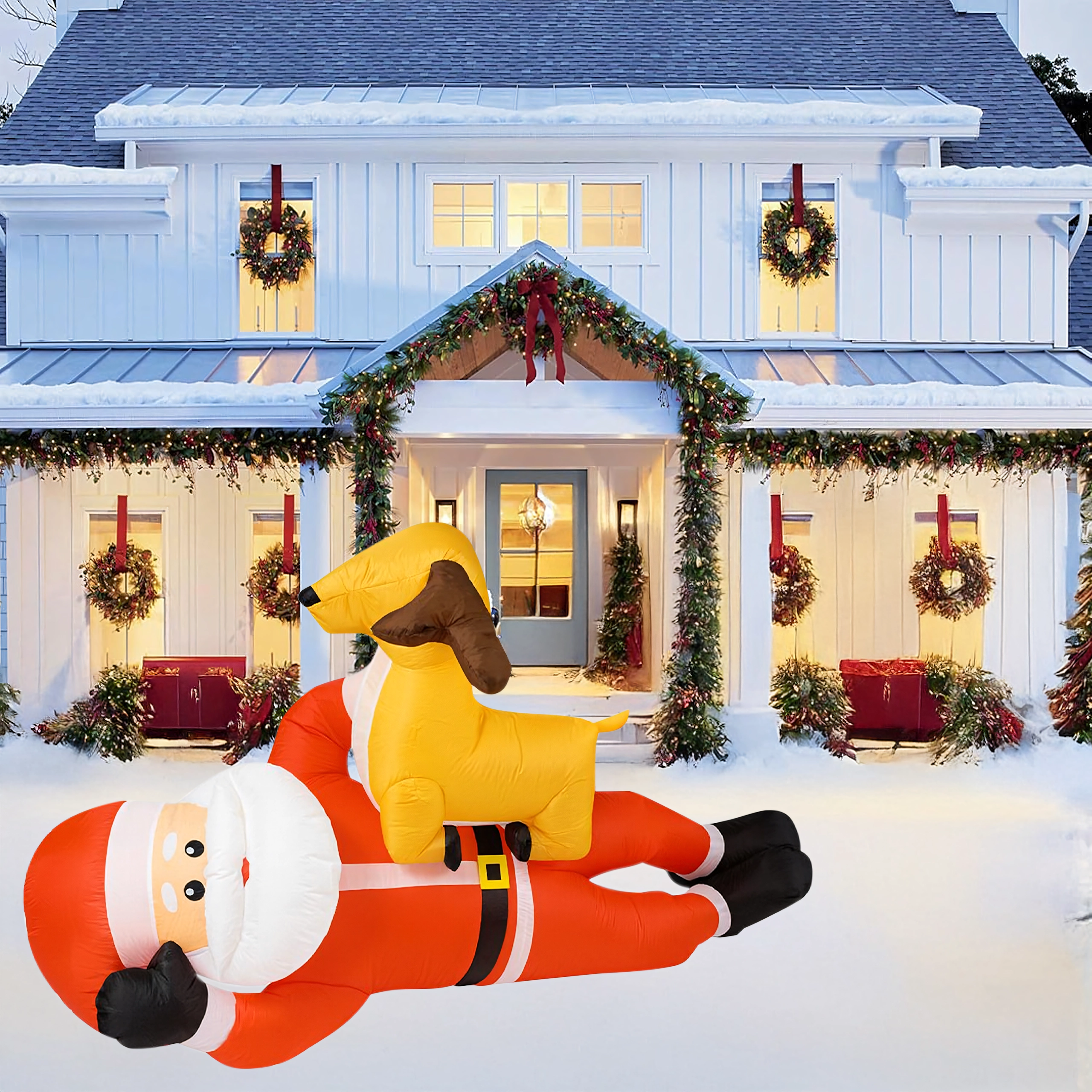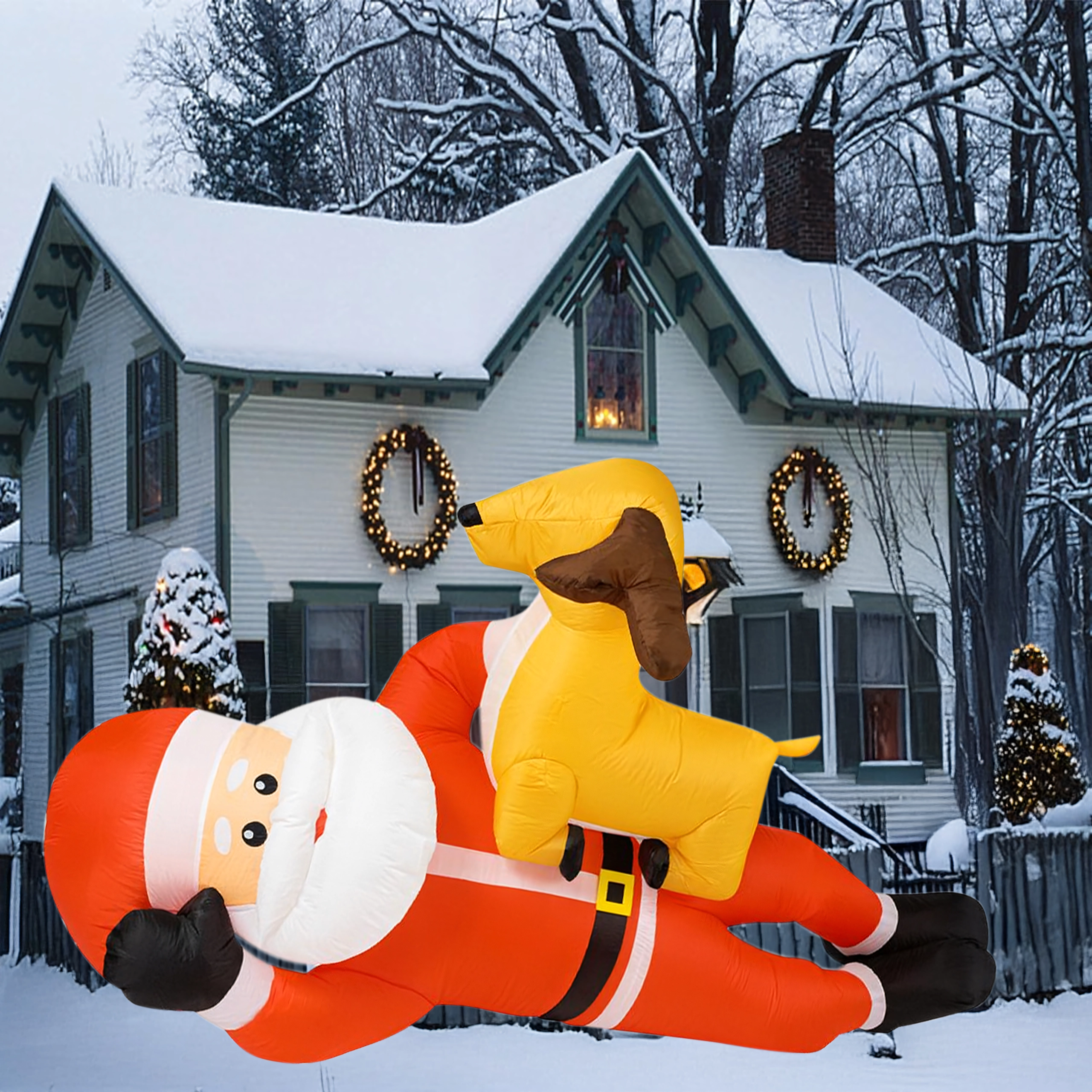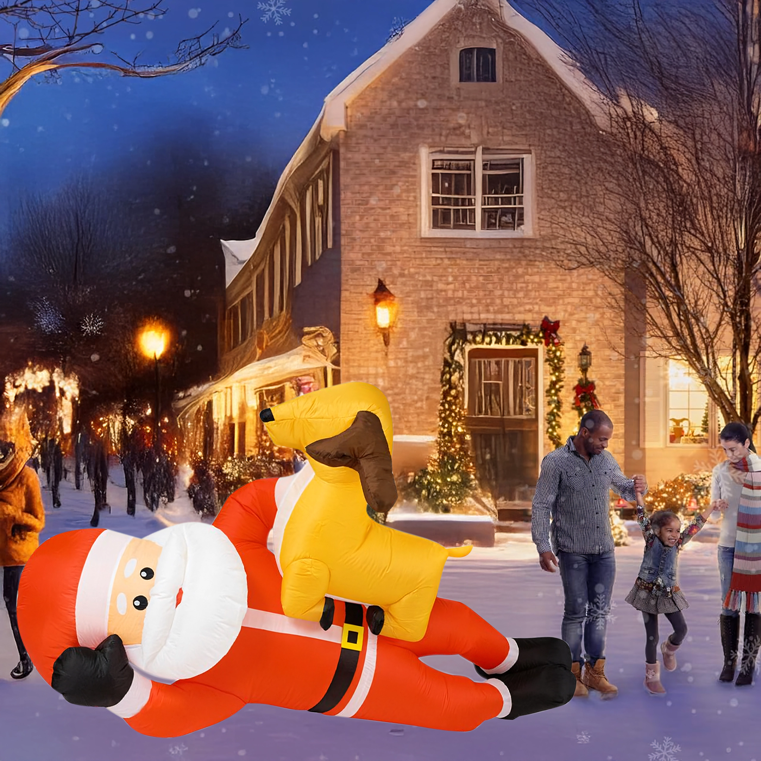 Nafukovací vánoční dekorace v podobě SANTY se sobem ve výšce 2,1 m okamžitě přidá vašemu domovu sváteční kouzlo. Vestavěné LED diody zajišťují působivé osvětlení po setmění a automatická dmuchava zajistí rychlé a pohodlné nafouknutí bez námahy.