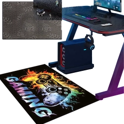Kompaktní ochranná herní podložka pod židli 50 × 80 cm chrání podlahu před poškrábáním a hlukem, zatímco dodá vašemu hernímu či kancelářskému koutku styl. Díky protiskluzové spodní vrstvě drží pevně na místě, odolný povrch zajišťuje plynulý pohyb kolečkové židle a zesílené okraje prodlužují životnost. Vhodná pro tvrdé povrchy jako vinyl, kámen, dlažba, dřevo, laminát i beton.