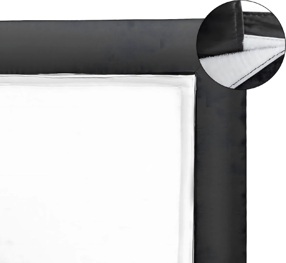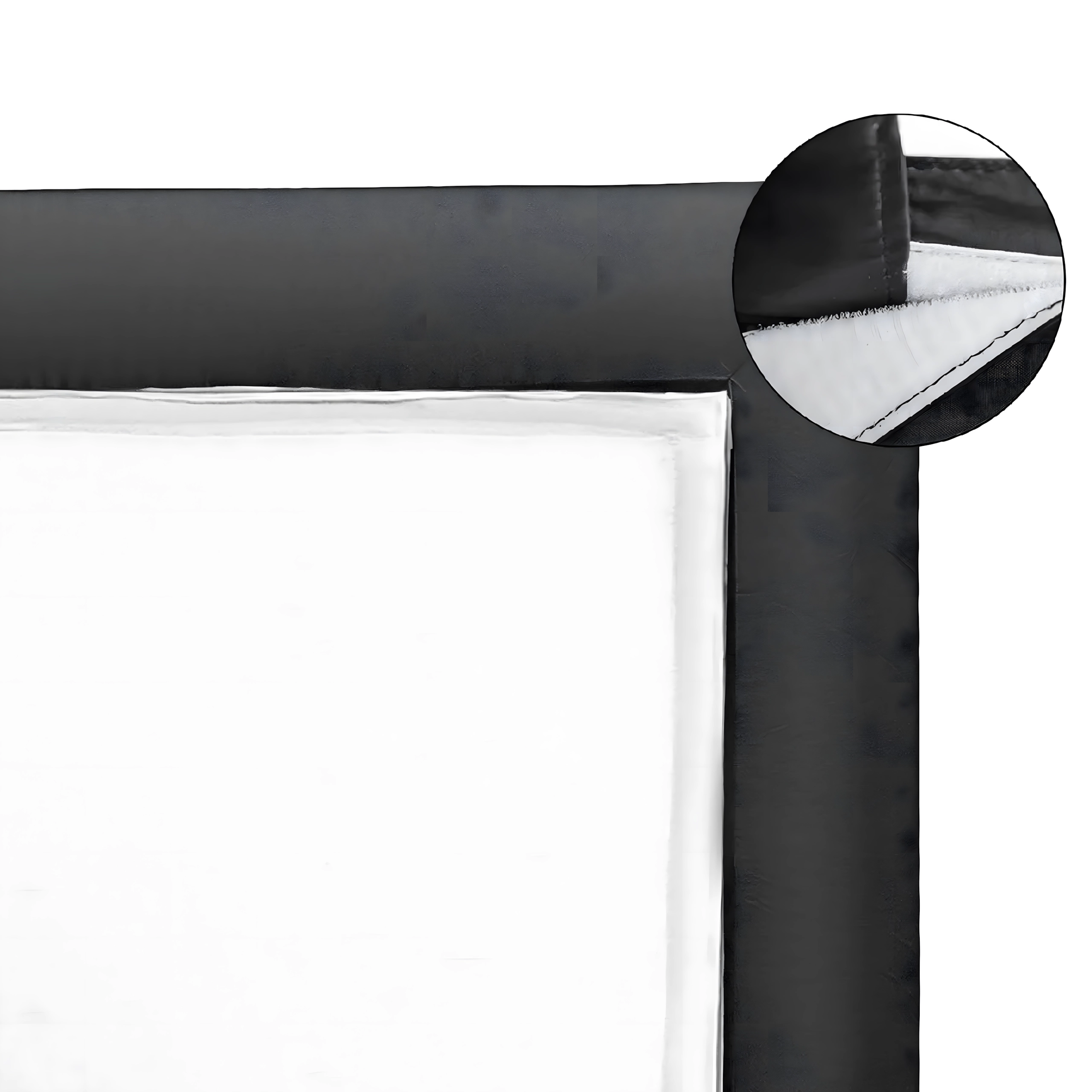 Plátno je vyrobeno z pevného a odolného materiálu, který lépe odolává venkovním podmínkám. Snadno se skládá a převáží, takže je ideální pro mobilní akce a sezónní provoz.