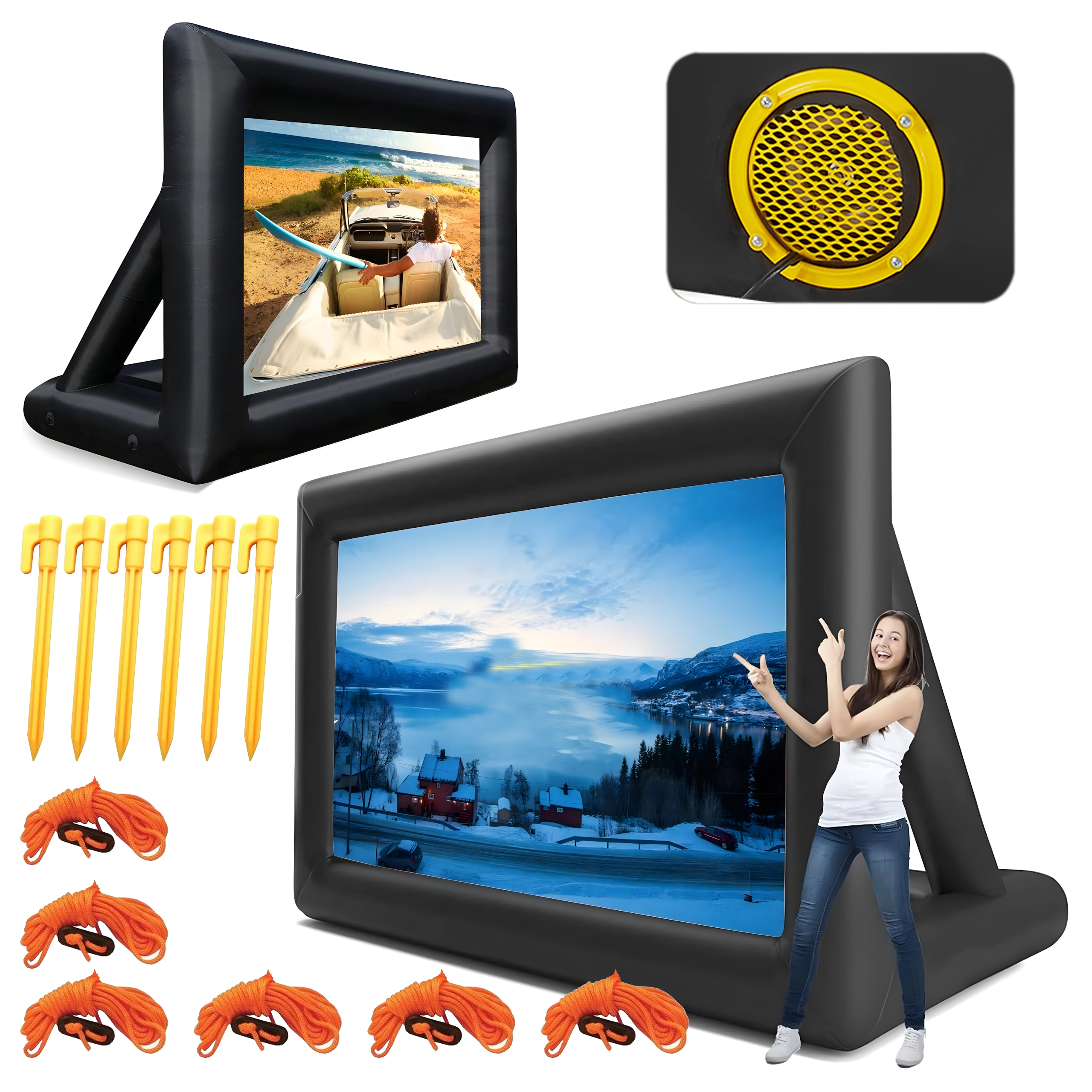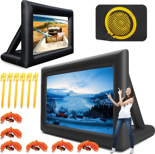 Užijte si filmové večery pod širým nebem s tímto velkým nafukovacím projekčním plátnem. Ideální pro venkovní kino, oslavy, prezentace i veřejné akce. Nabízí přední i zadní projekci, rychlou a snadnou instalaci a je vyrobeno z odolných materiálů pro dlouhou životnost a pohodlný transport.