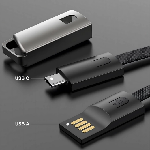 Praktický kabel ve tvaru přívěsku kombinuje mobilitu, funkčnost a moderní design. Připojíte jím zařízení s USB‑C k portu USB‑A a zajistíte rychlé dobití i stabilní synchronizaci souborů. Díky provedení jako šňůrka je vhodný na klíče, tašku nebo batoh – máte jej neustále po ruce.