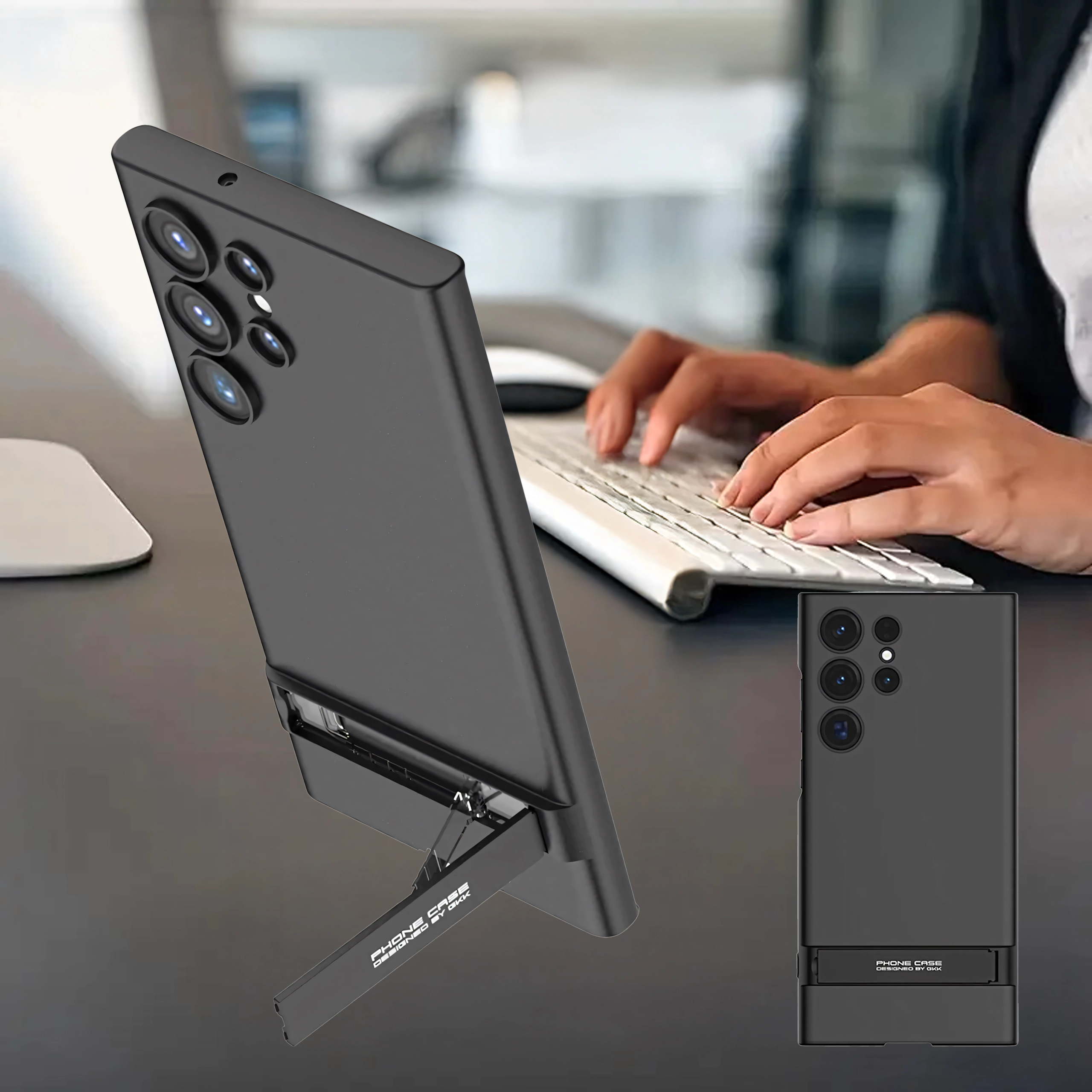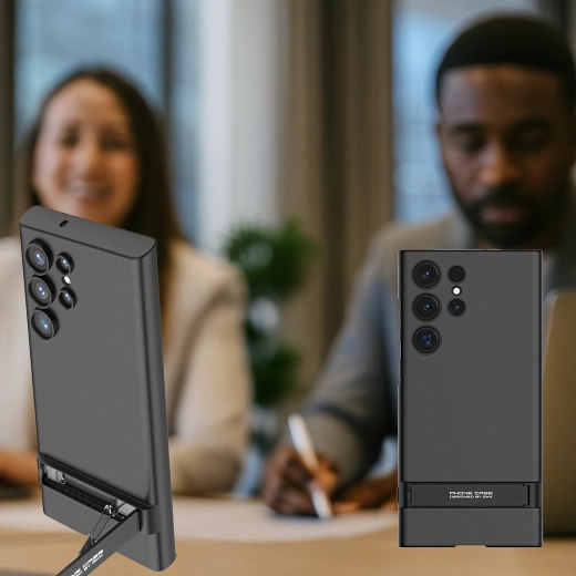 Integrovaný stojánek umožňuje pohodlné sledování obsahu na šířku i na výšku, ideální pro filmy, hry nebo videohovory. Přesné výřezy zajišťují snadný přístup ke všem portům a tlačítkům, takže telefon můžete používat bez omezení.