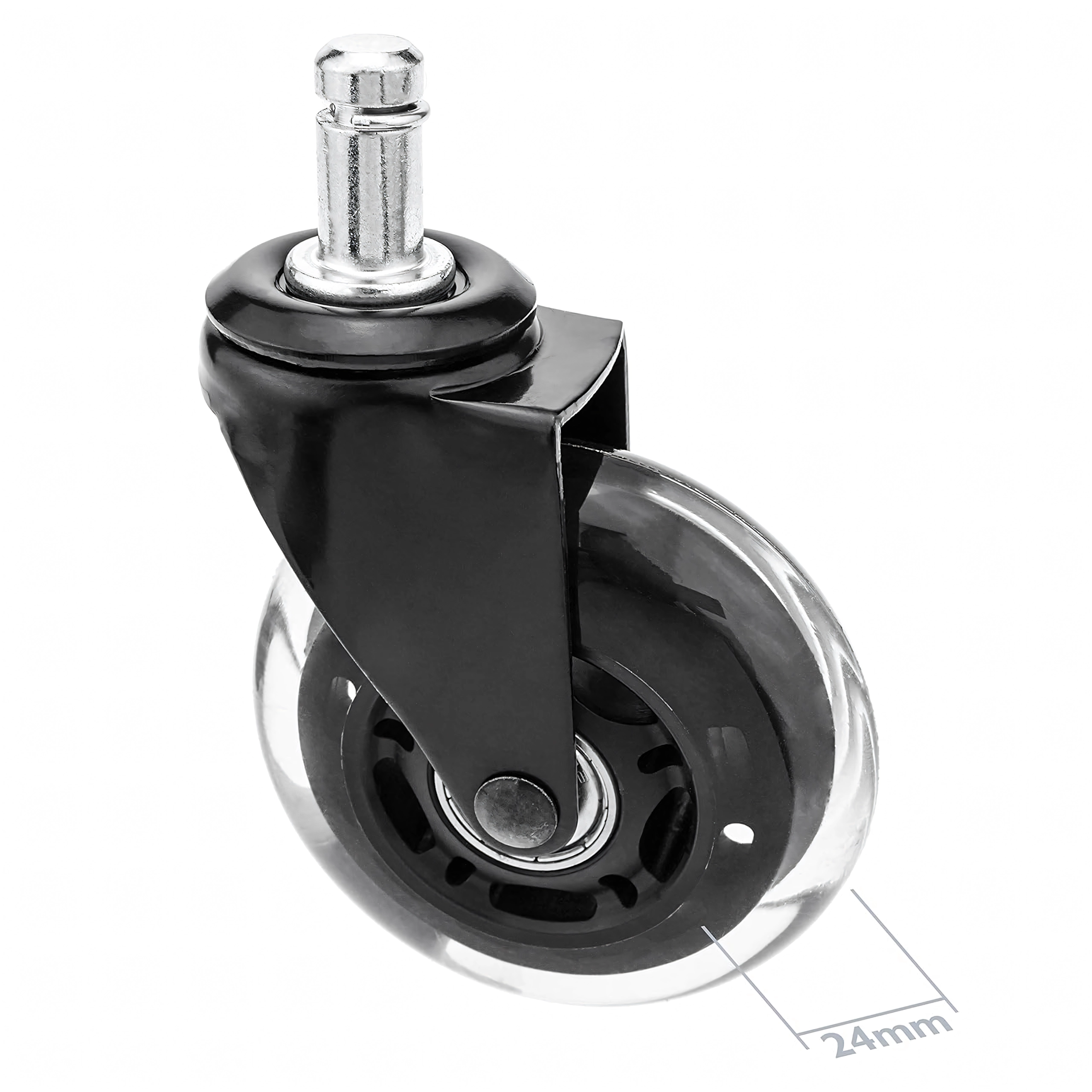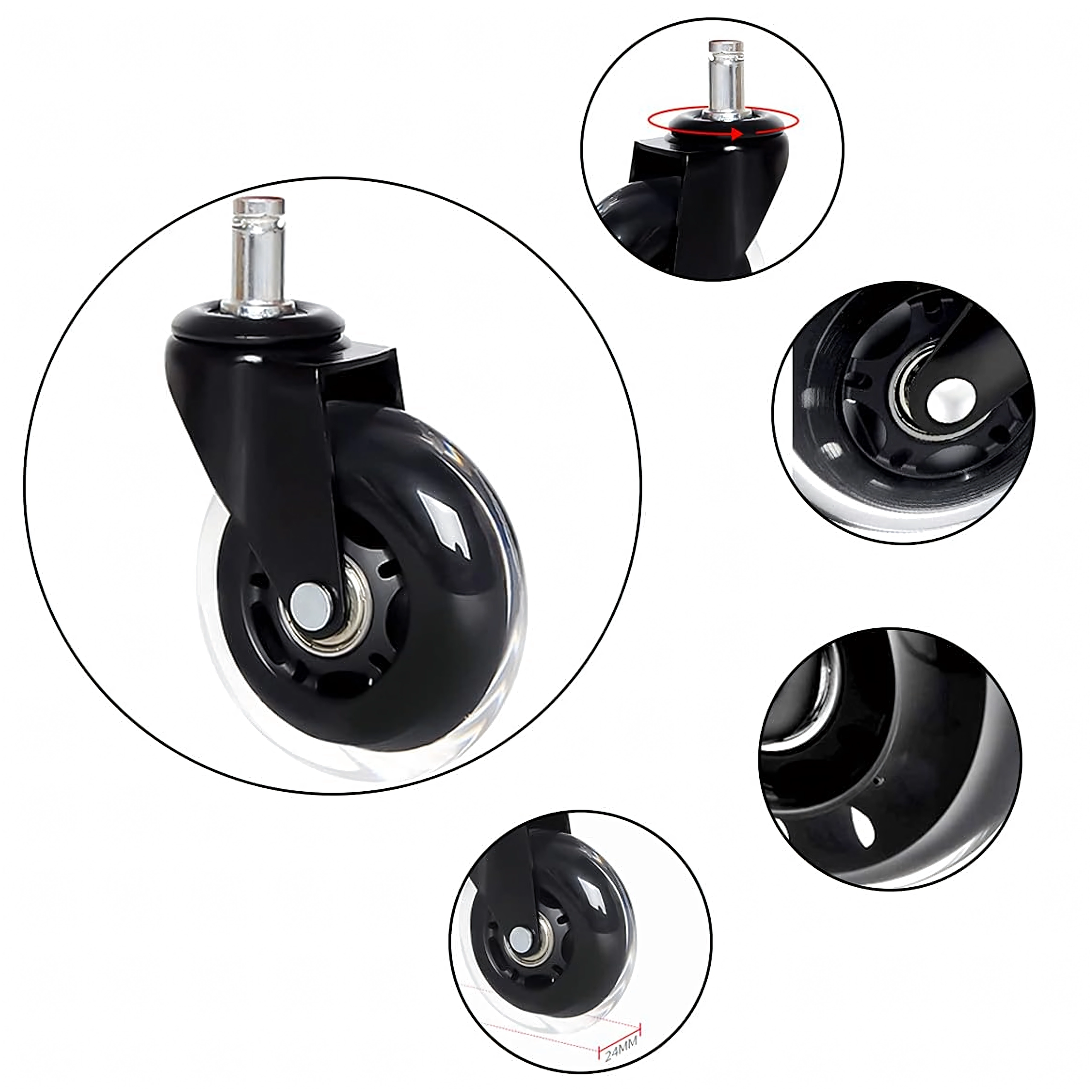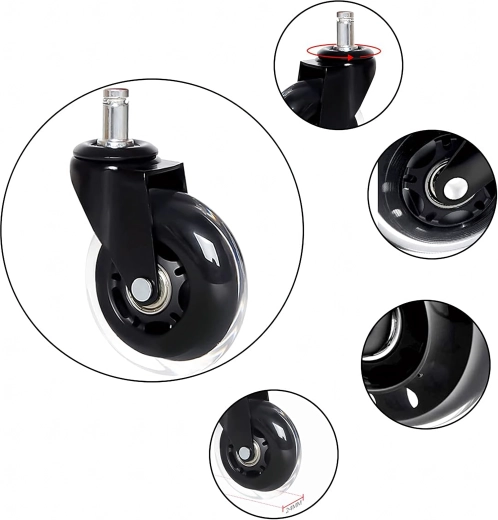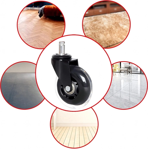 Univerzální gumové kolečko s přesným ložiskem pro kancelářské i herní židle zajišťuje tichý a plynulý pohyb, dlouhou životnost a ochranu podlah před poškrábáním. Kompatibilní s většinou židlí s trnem 12 mm. K dispozici i jako balení 100 ks.