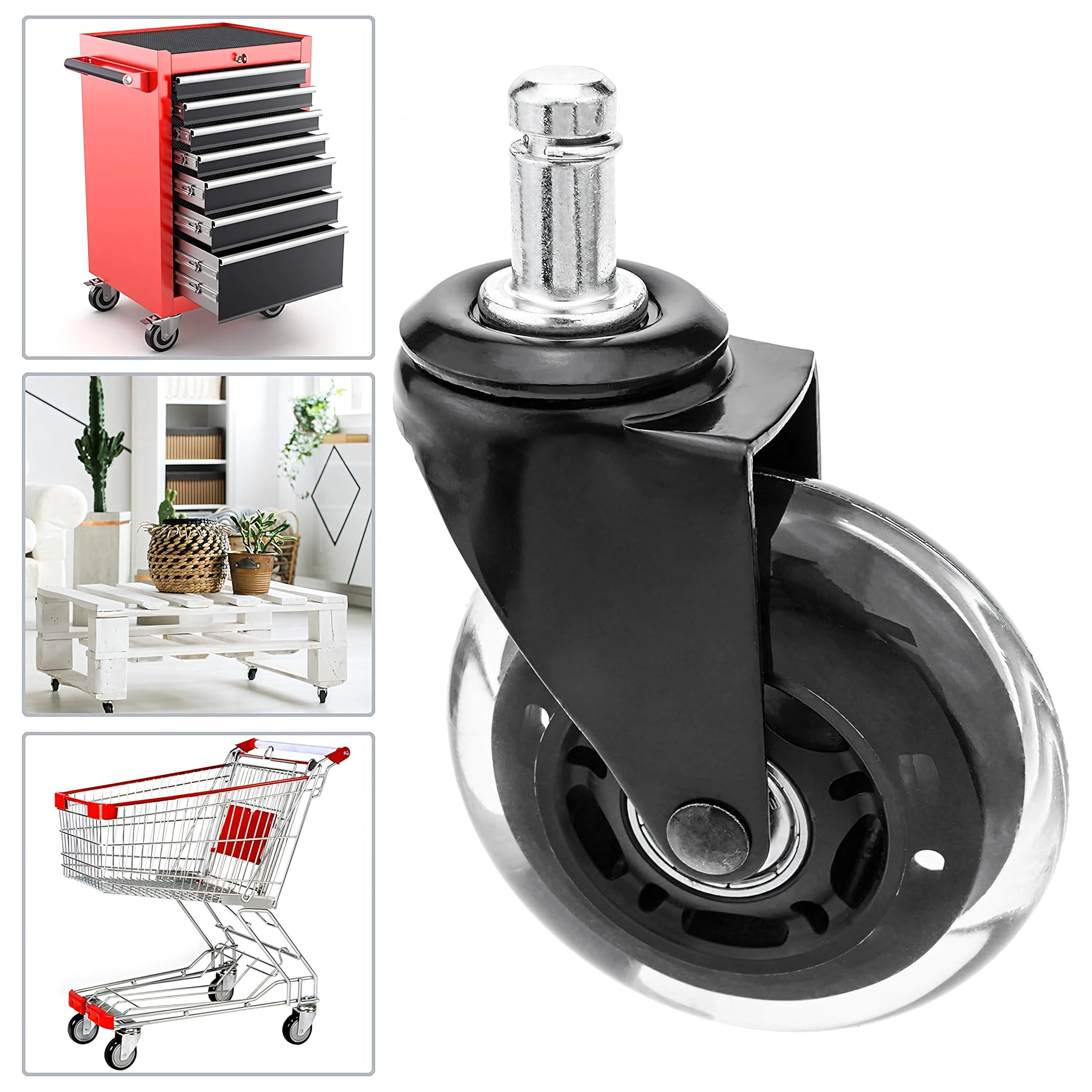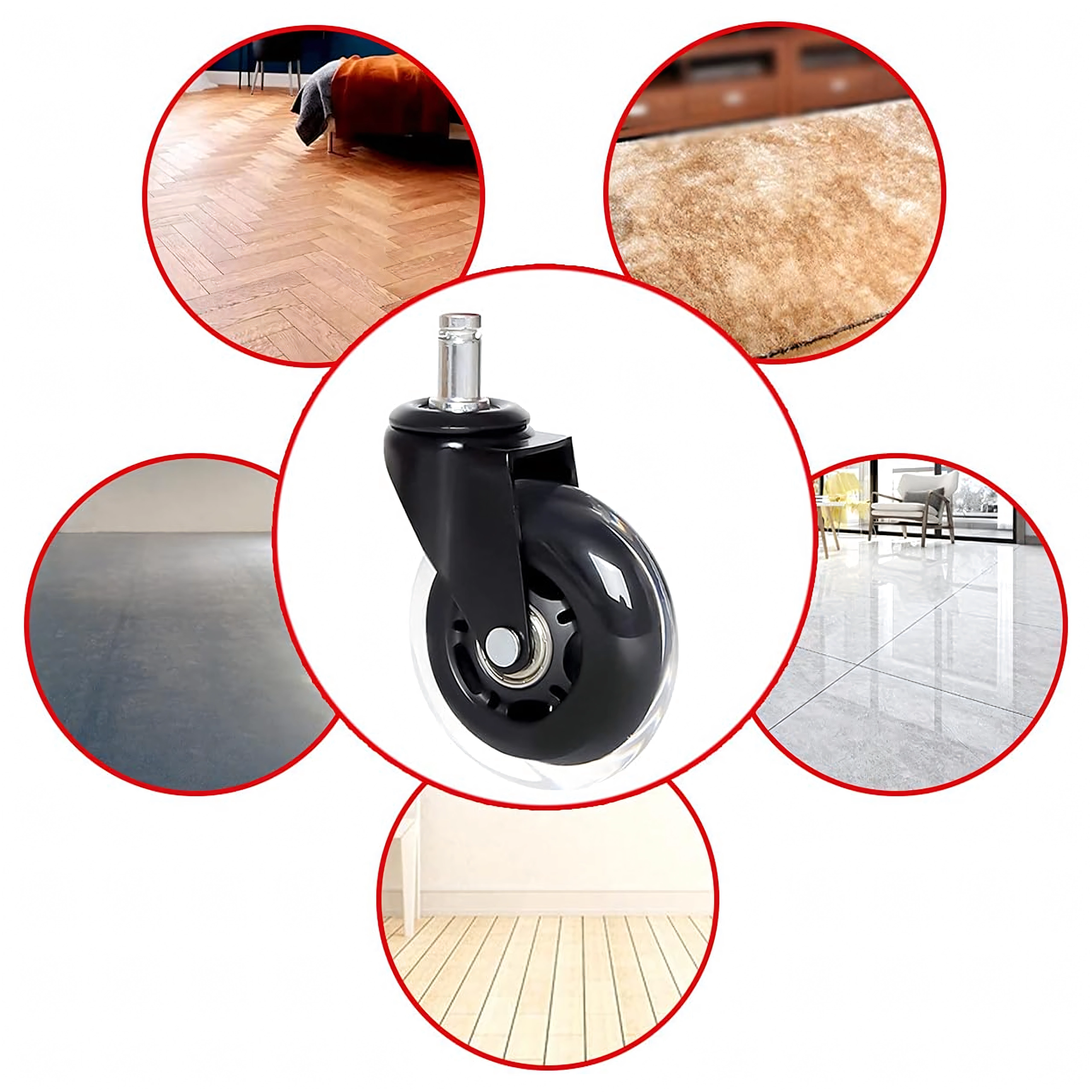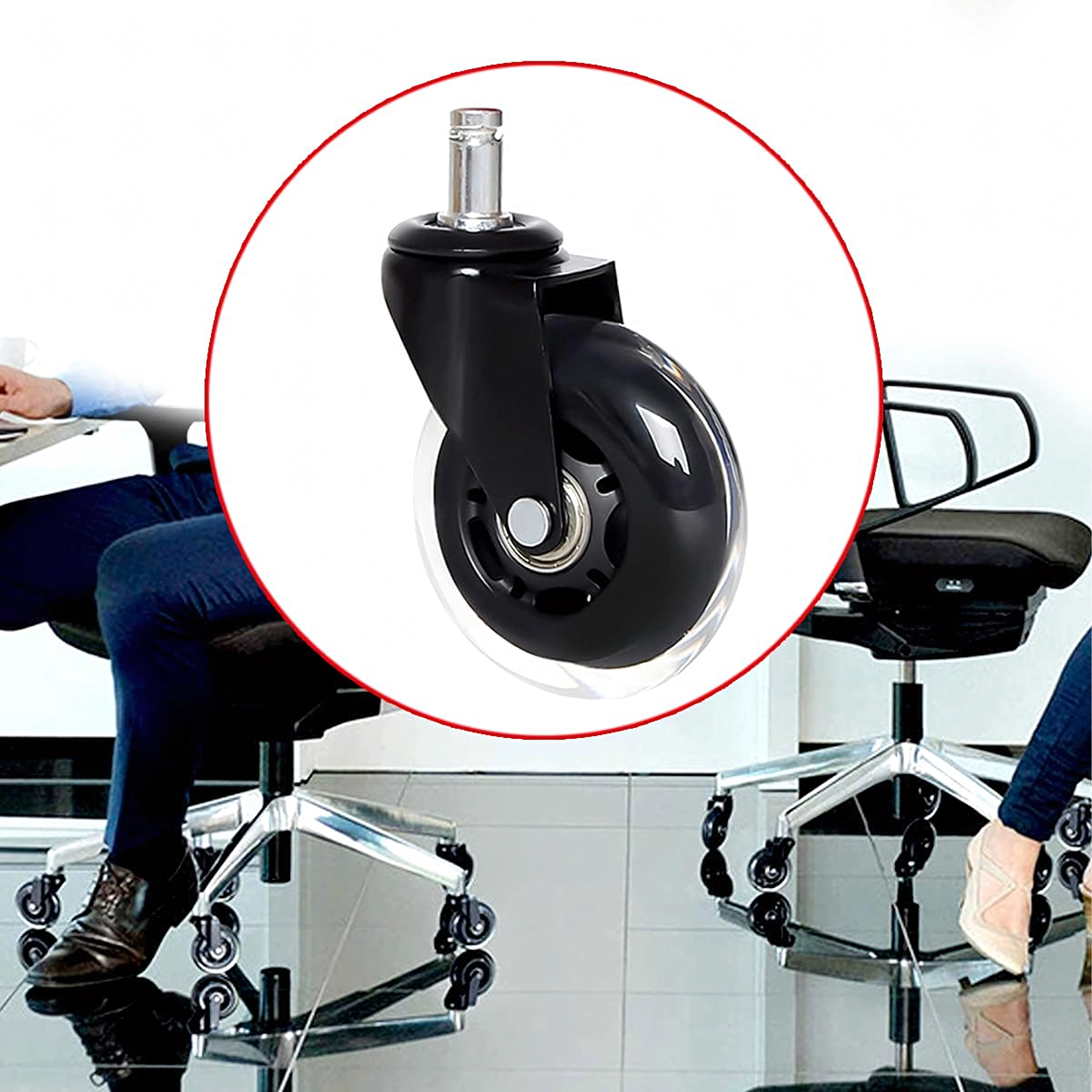 Univerzální gumové kolečko s přesným ložiskem pro kancelářské i herní židle zajišťuje tichý a plynulý pohyb, dlouhou životnost a ochranu podlah před poškrábáním. Kompatibilní s většinou židlí s trnem 12 mm. K dispozici i jako balení 100 ks.