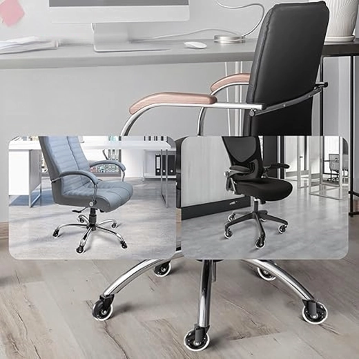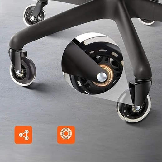 Vyměňte stará kolečka za moderní gumové provedení, které kombinuje tichý chod, stabilitu a šetrnost k podlahovým krytinám. Díky ložiskům se křeslo pohybuje hladce bez zasekávání a snižuje opotřebení jak na kolečku, tak na podlaze.