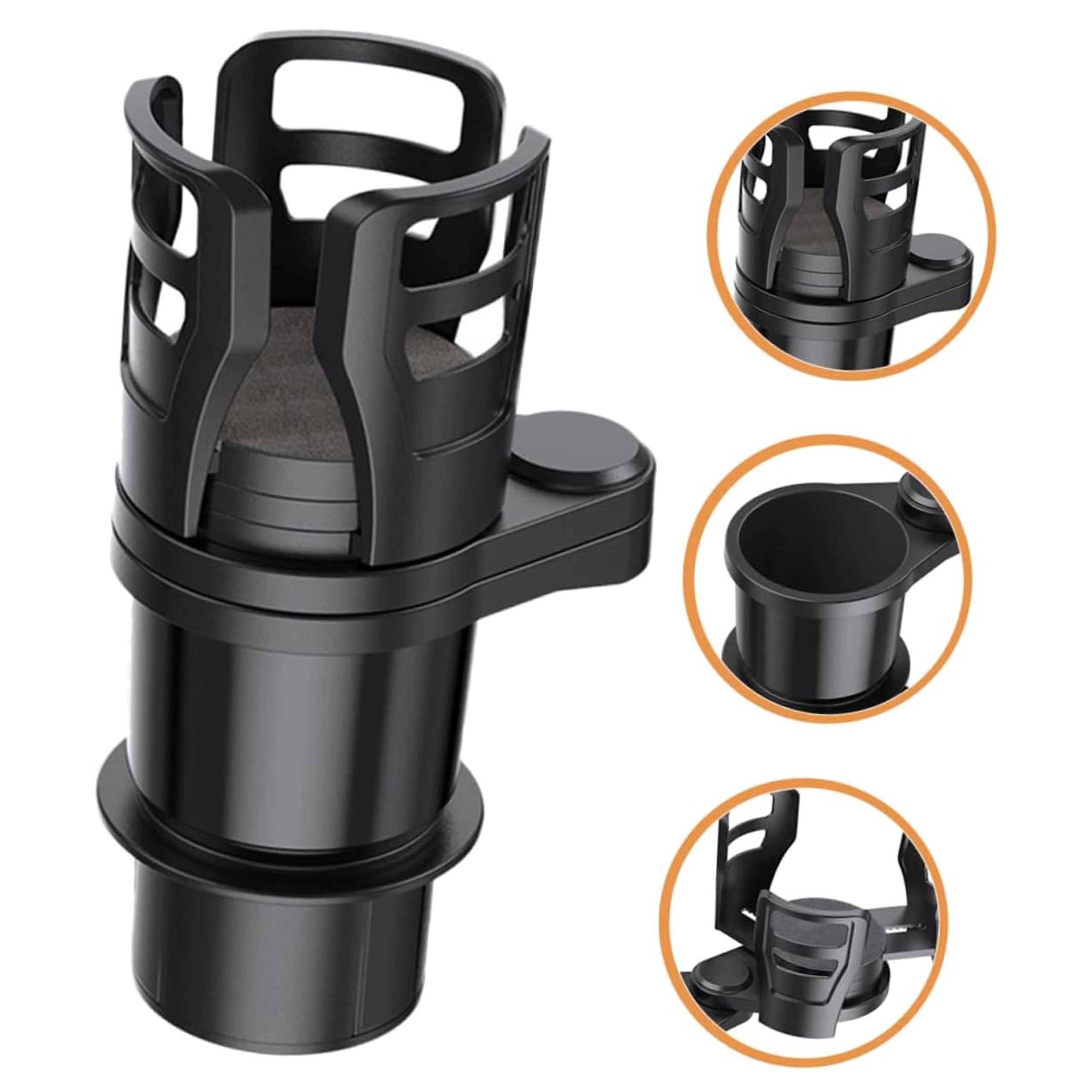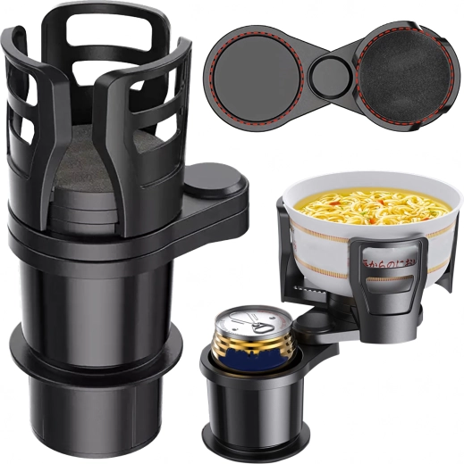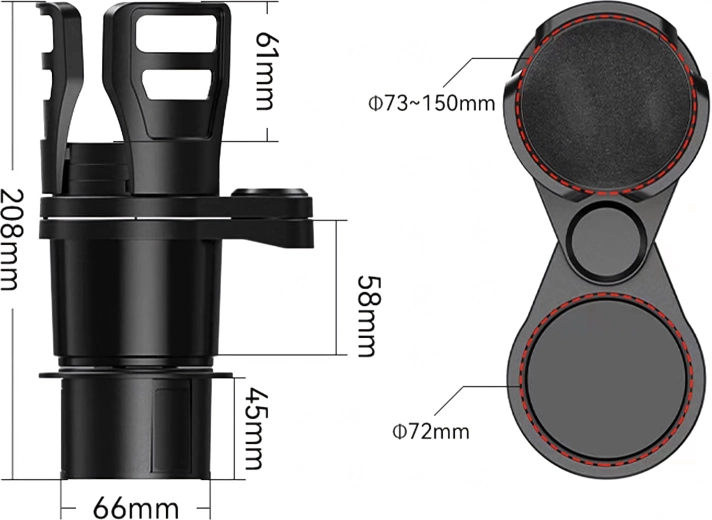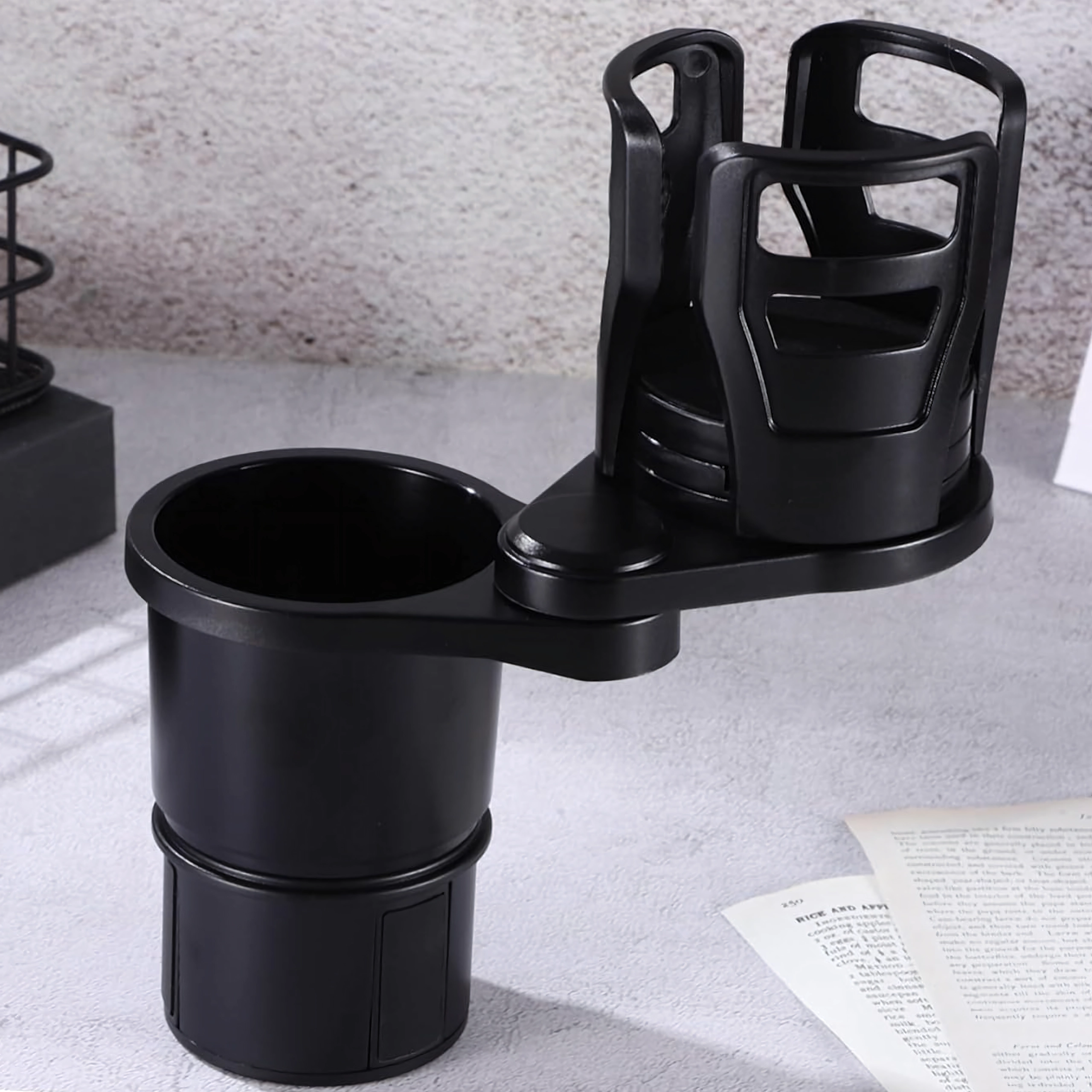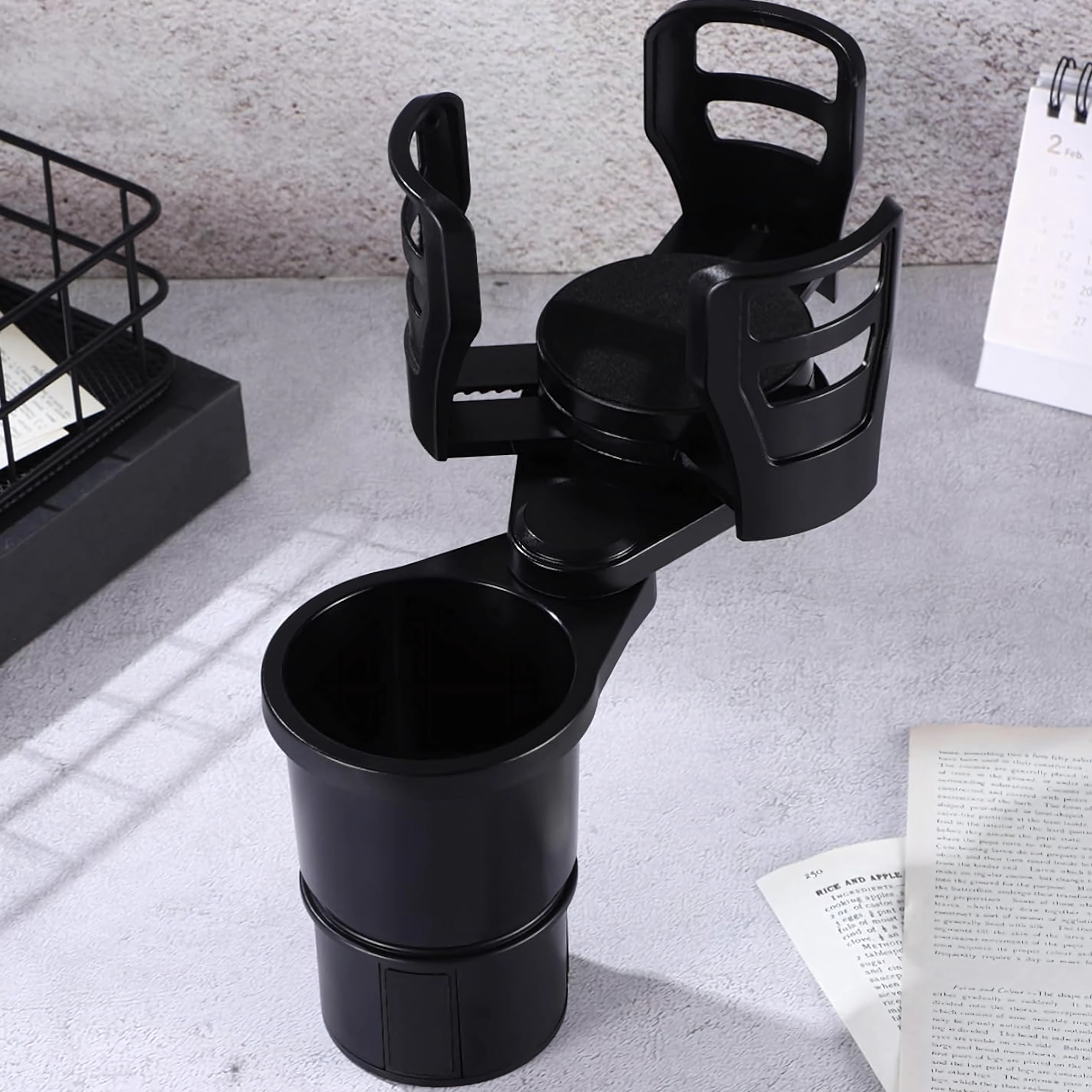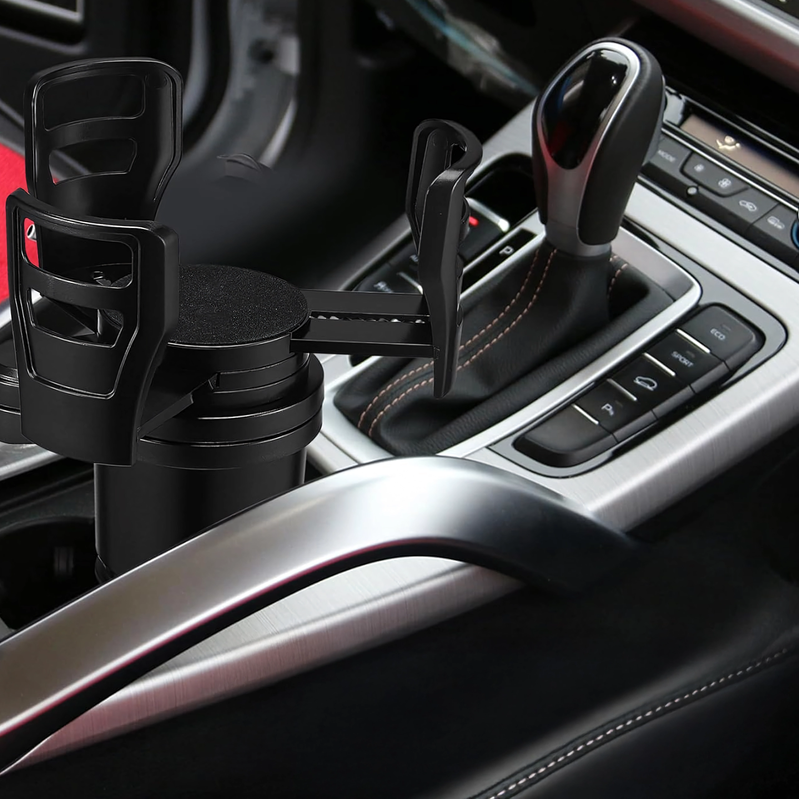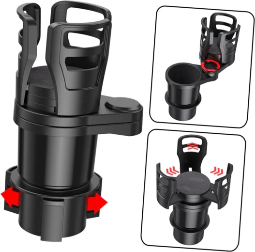 Udržte pořádek a pohodlí ve svém voze díky chytrému držáku 2v1. Hlavní přihrádka s regulací průměru pojme různé typy kelímků a lahví, zatímco menší přídavný držák je ideální pro plechovky, kávu nebo menší lahvičky. Otočný mechanismus 360° umožní snadné natočení pro řidiče i spolujezdce.