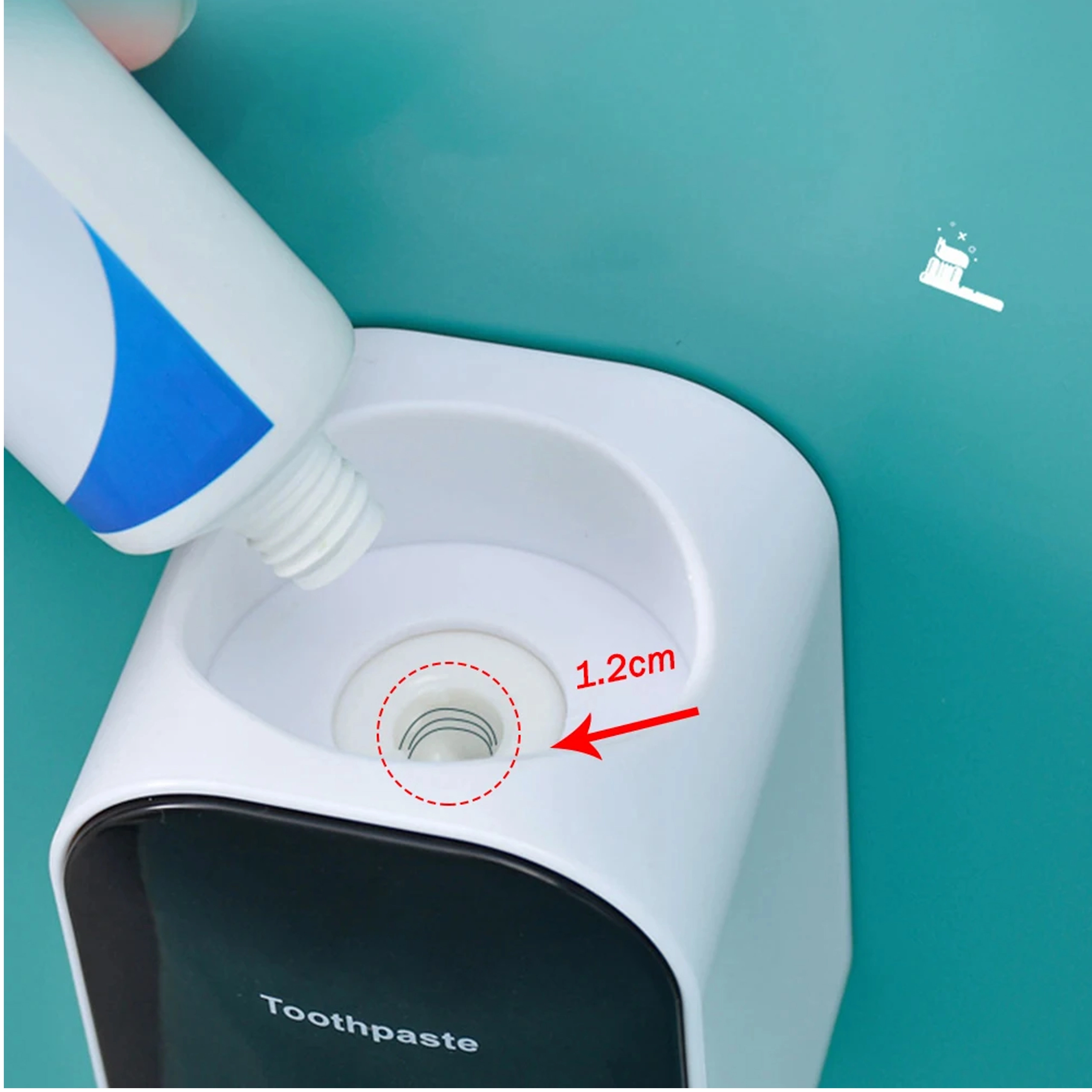 Praktický a hygienický pomocník do každé koupelny. Bezdotykový mechanismus eliminuje zbytečný kontakt s tubou, čímž pomáhá omezit přenos bakterií. Díky dvojité poloze dávkování je horní nastavení ideální pro děti (menší dávka) a spodní pro dospělé (větší dávka). Dávkovač je kompatibilní s většinou běžných tub zubních past.