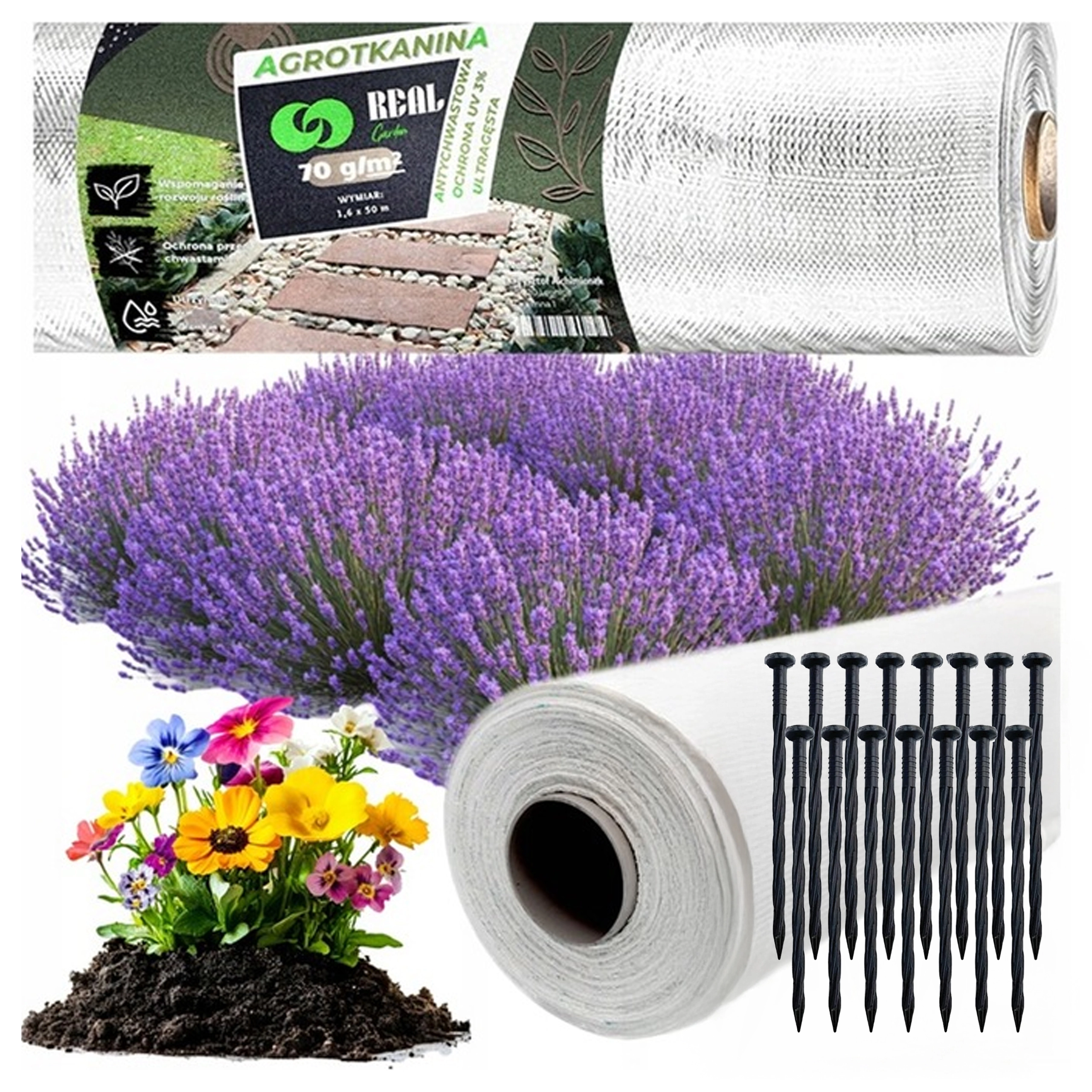 - Agrotextilie + kotvy pro upevnění