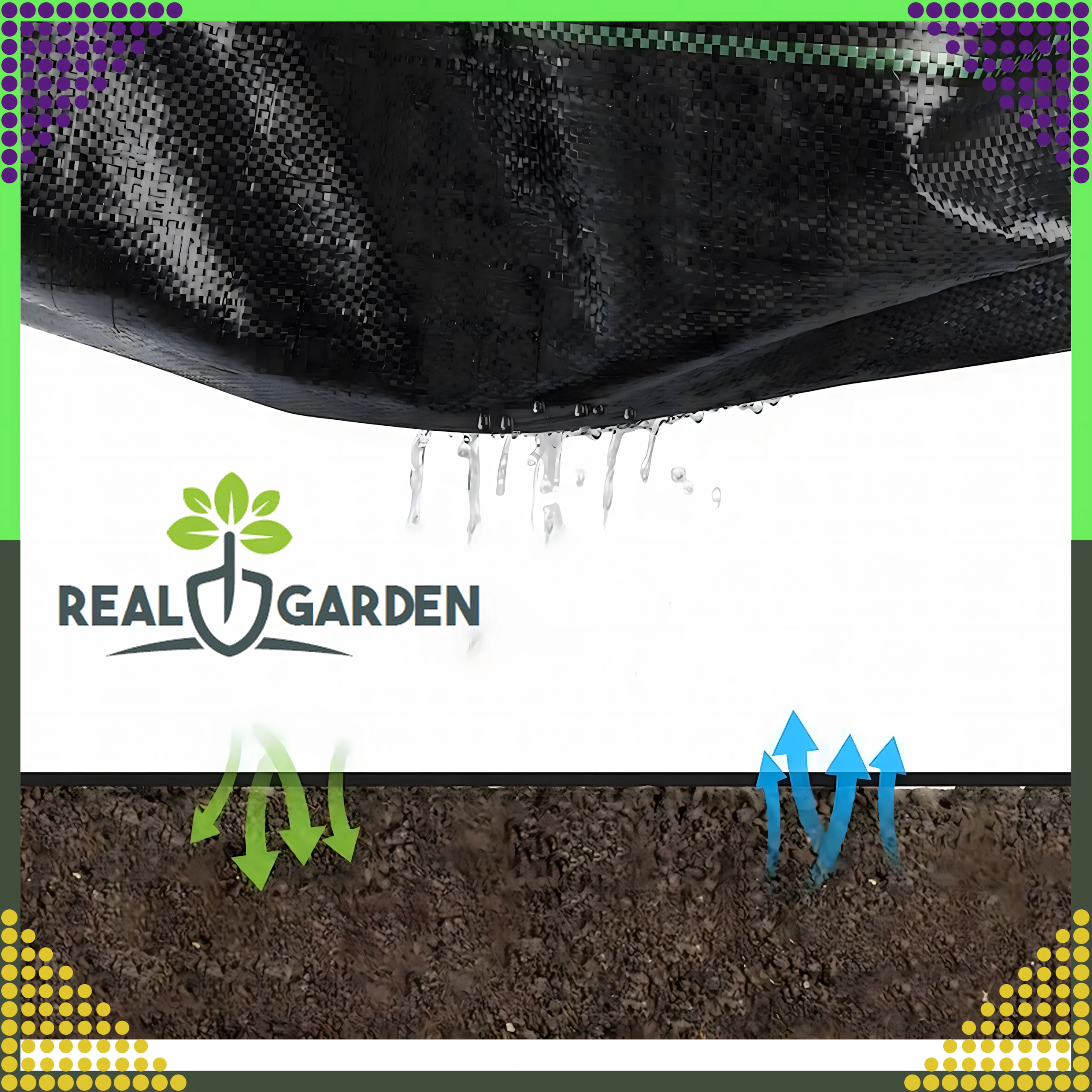 - Vhodná pod kůru i okrasný kámen pro estetické řešení záhonů.