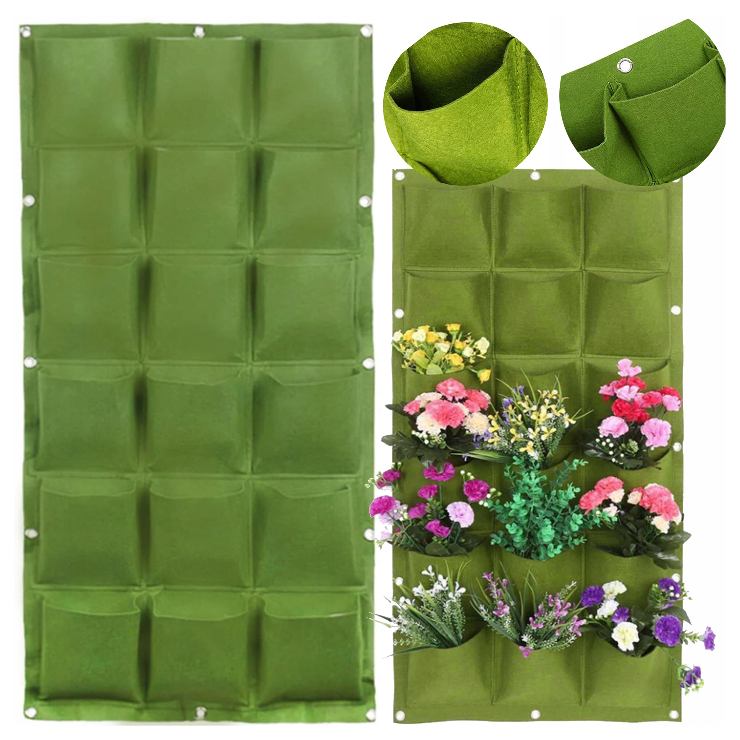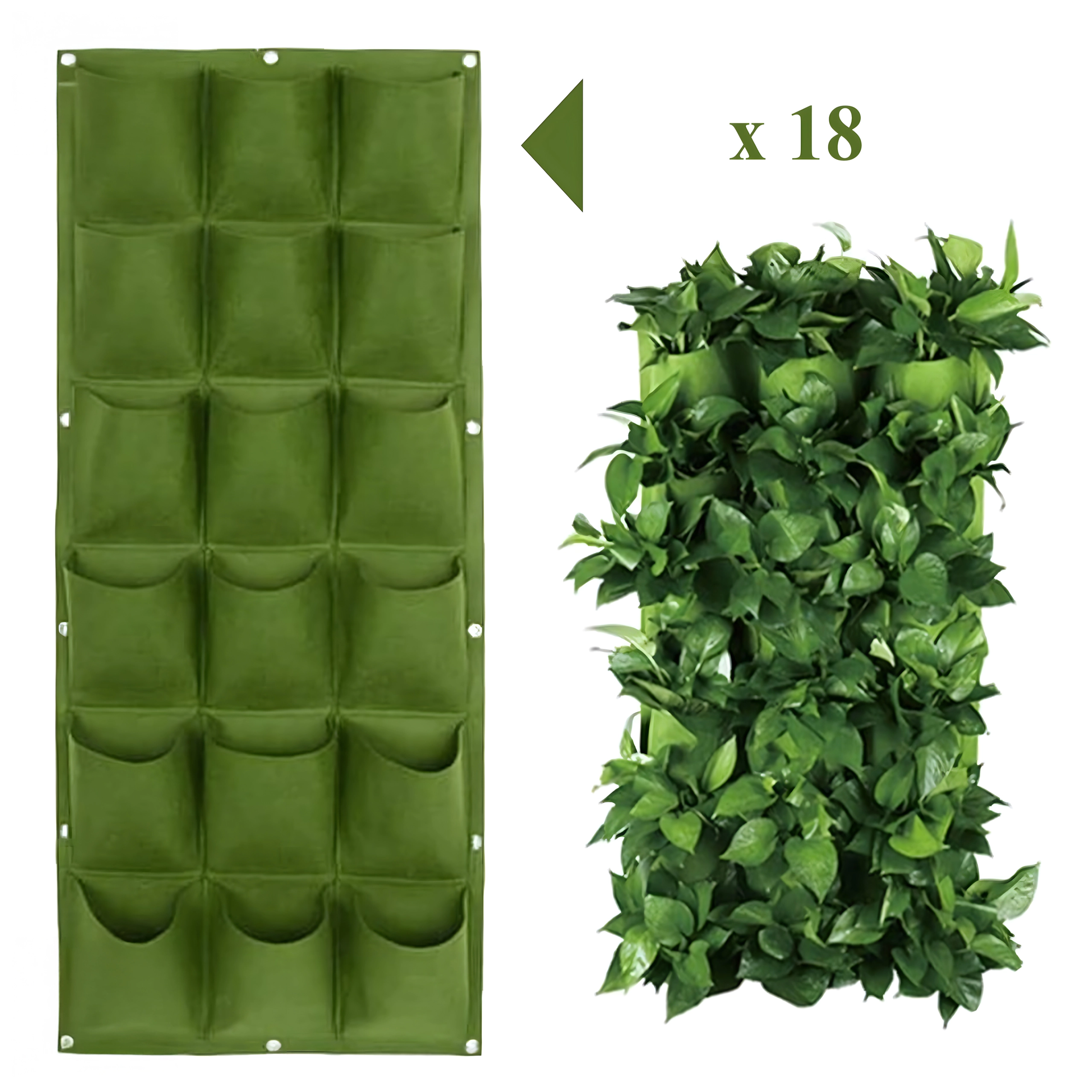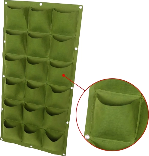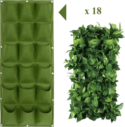 Praktický a stylový závěsný květináč pro vertikální pěstování bylinek, květin a zeleniny ušetří místo a promění váš domov, balkon či zahradu v zelenou oázu. Nabízí 18 kapes, snadnou instalaci pomocí úchytů na zeď či plot a chytré zavlažování pro zdravý růst rostlin. Ideální pro ty, kdo oceňují estetiku, originalitu a pohodlí při pěstování.