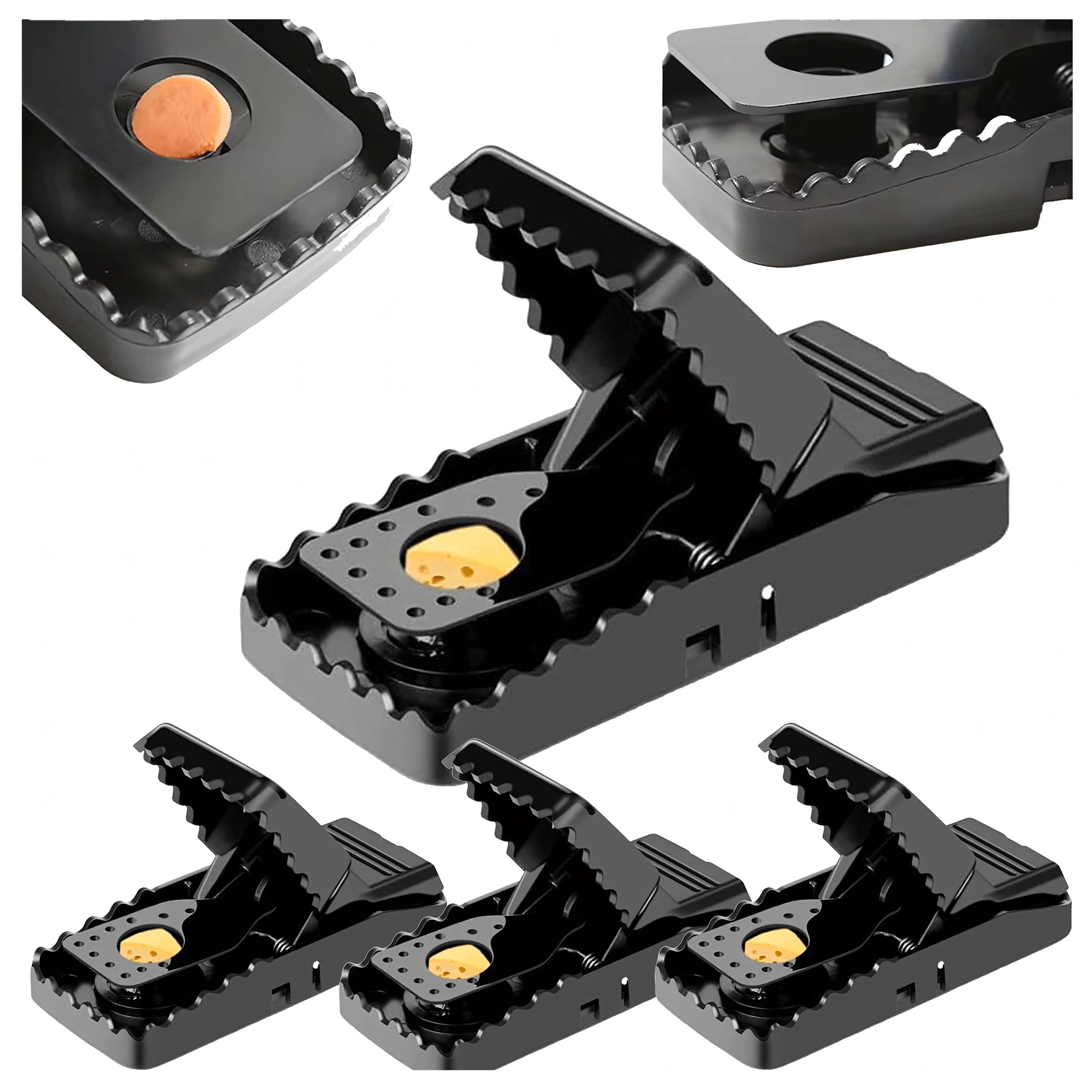 Praktická sada 4 pastí na myši a potkany z odolného plastu pro rychlé a hygienické hubení hlodavců v domácnosti. Past má silnou pružinu, snadné nastavení pomocí páčky a integrovaný zásobník na návnadu pro bezpečné a efektivní použití v kuchyni, spíži, garáži či sklepě.